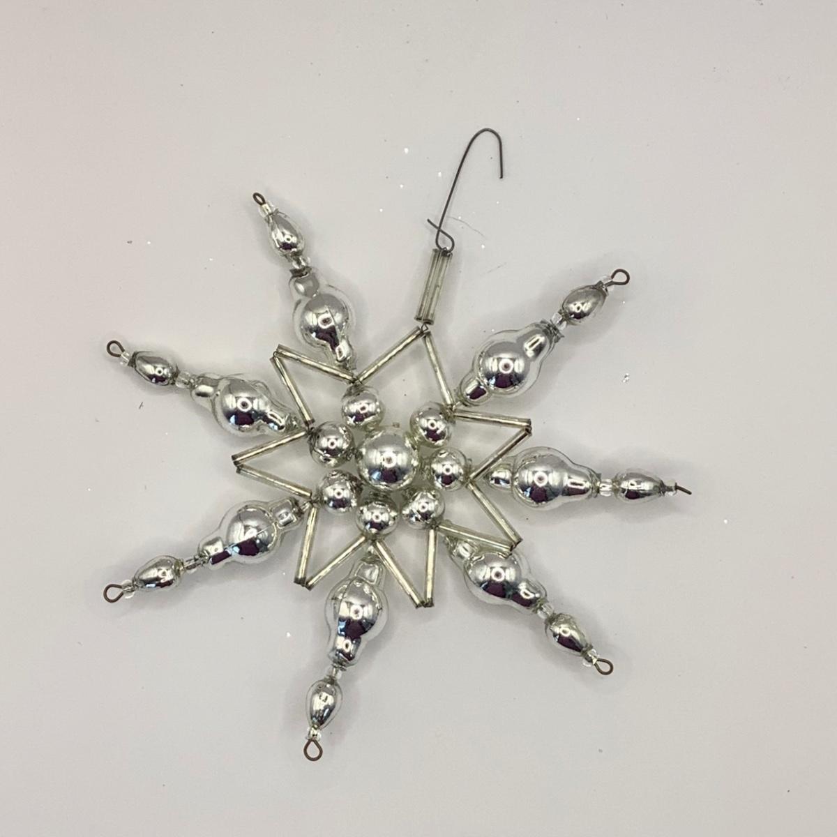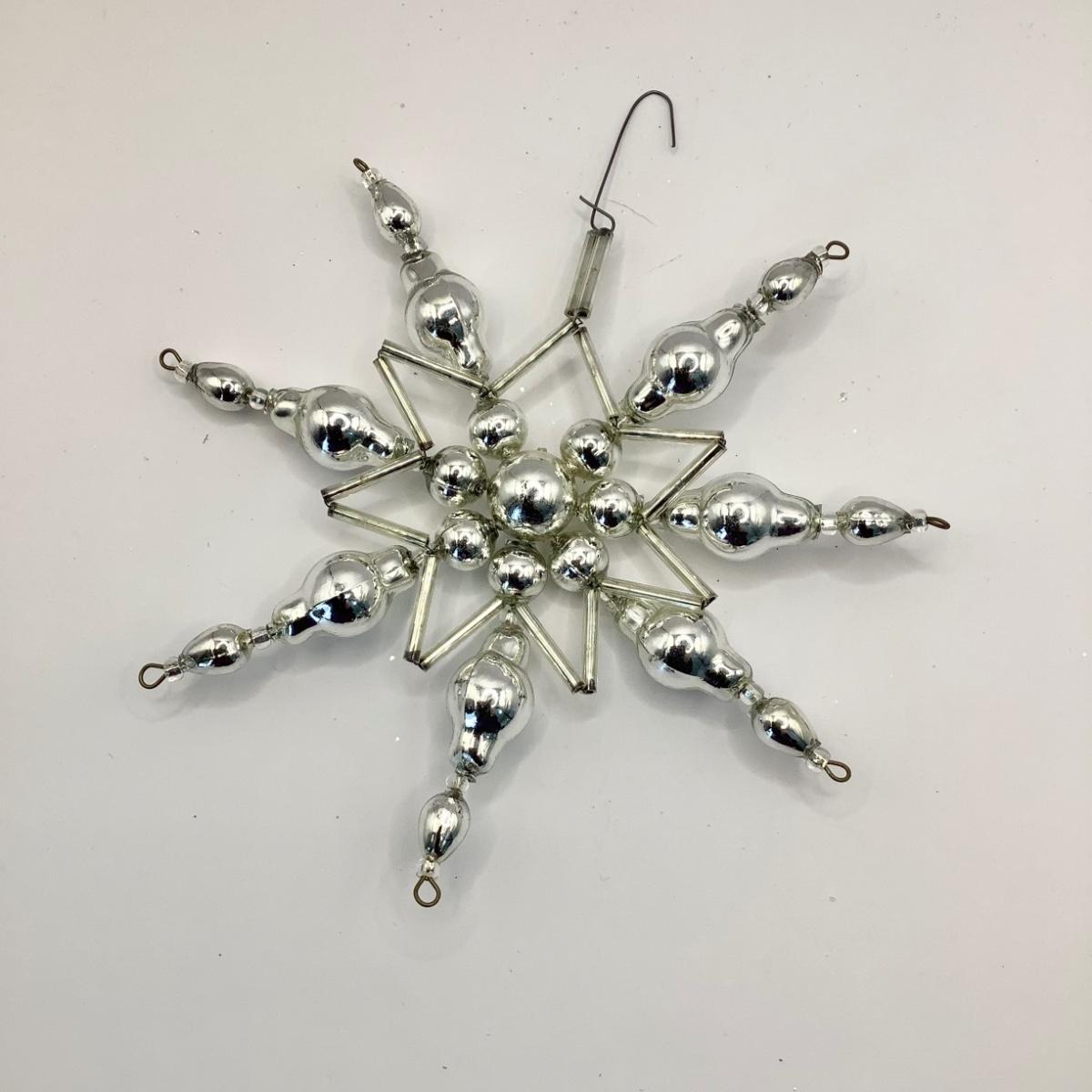 1542 Vintage Mercury Glass Beaded Star Ornament