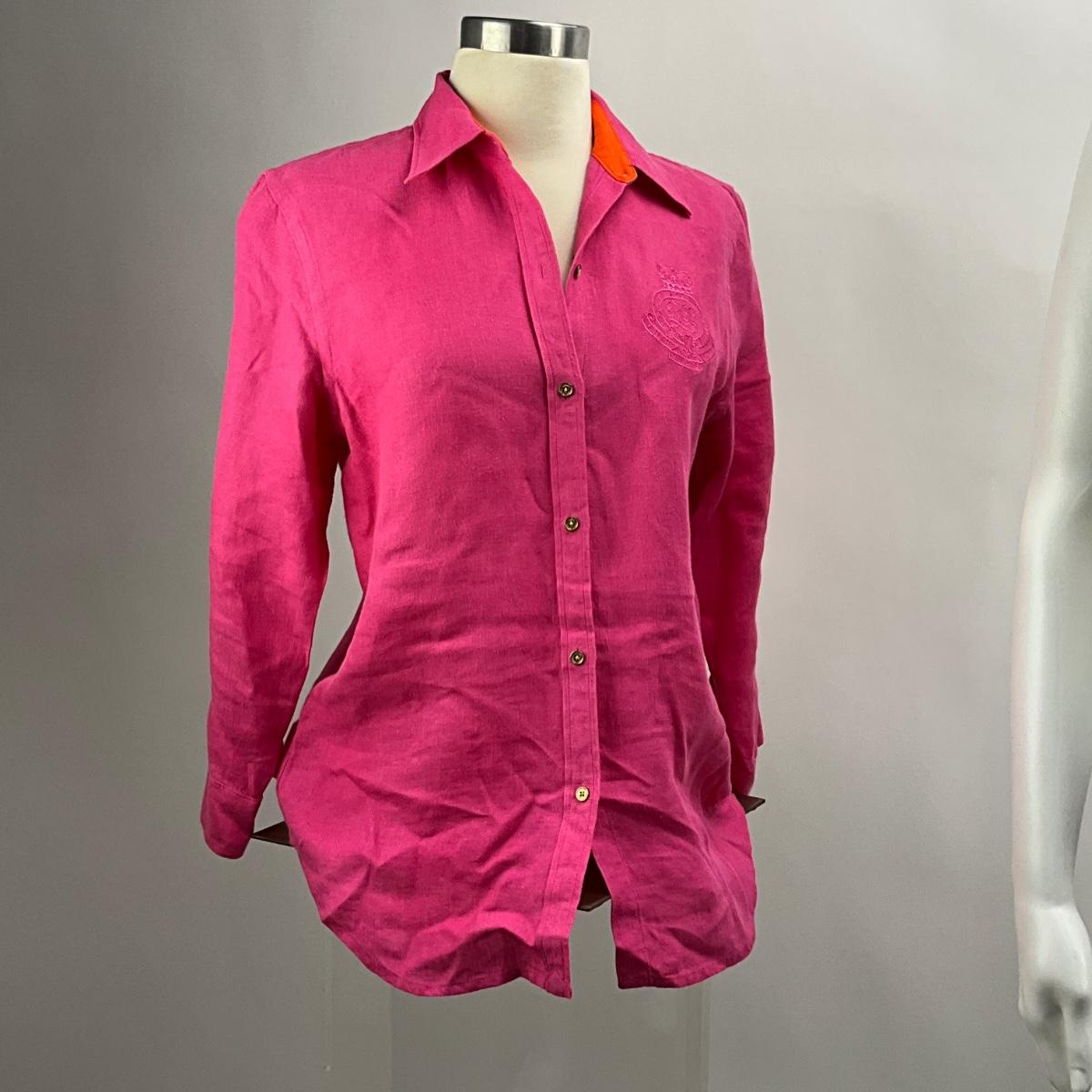 1546 Lauren By Ralph Lauren Linen Hot Pink Crest Top