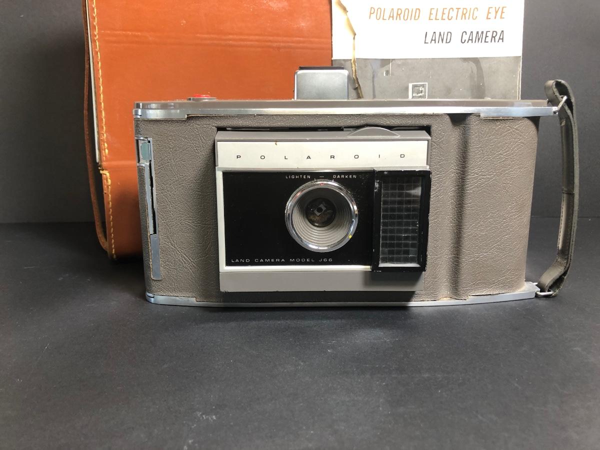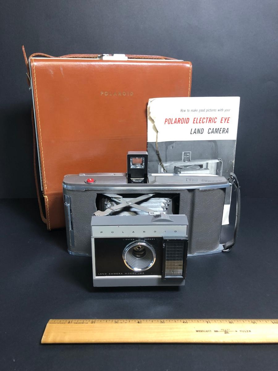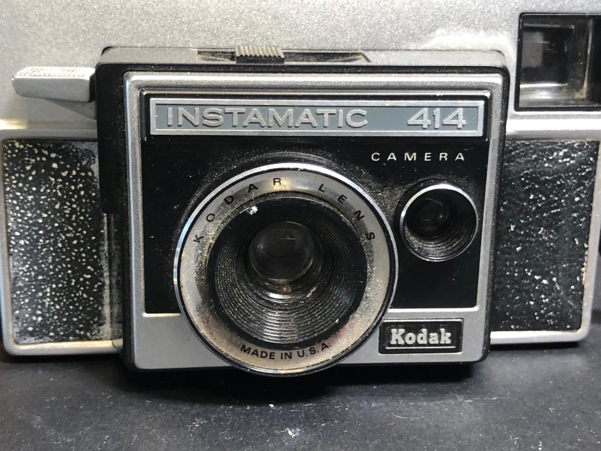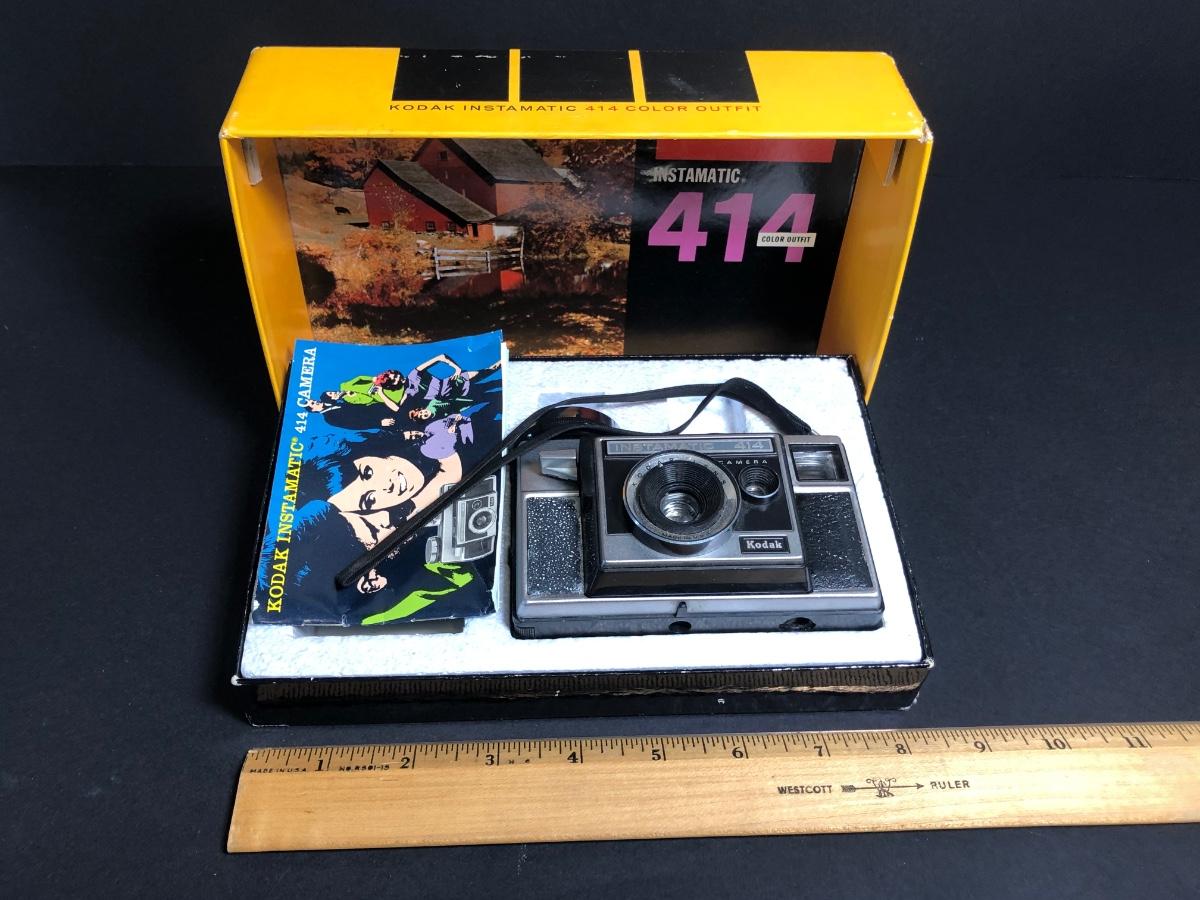 Includes the Kodak Instamatic 414 with its original box and the Polaroid Electric Eye Land Camera with its original case and instruction manual.