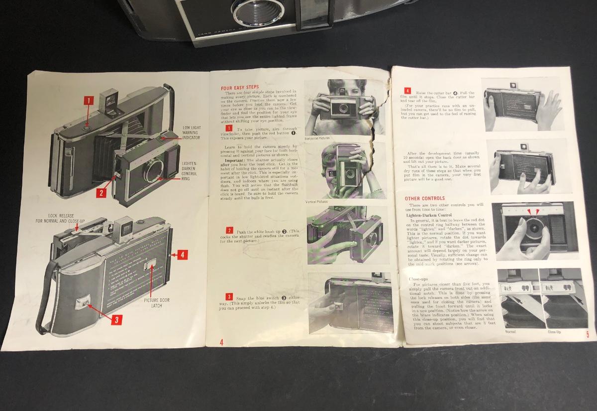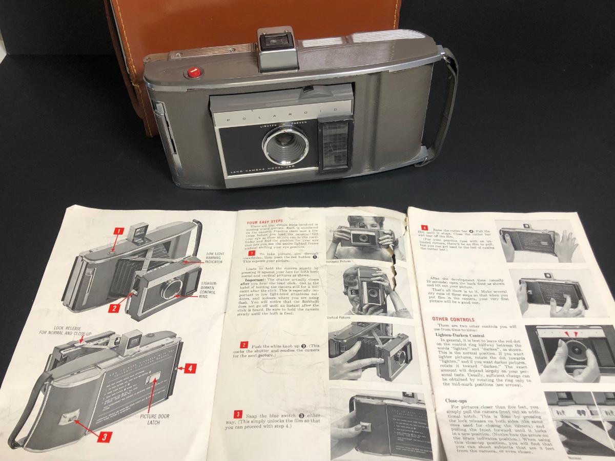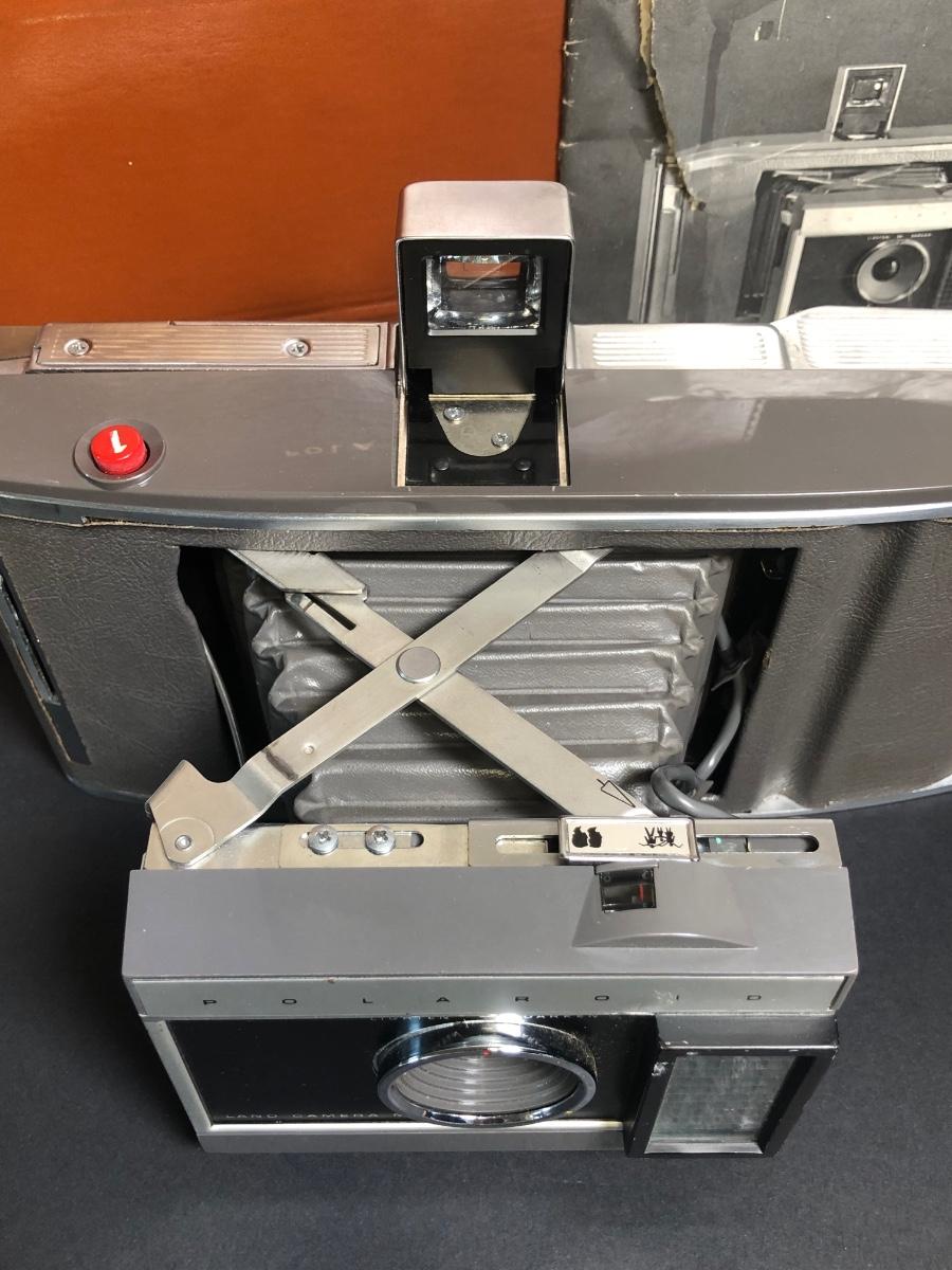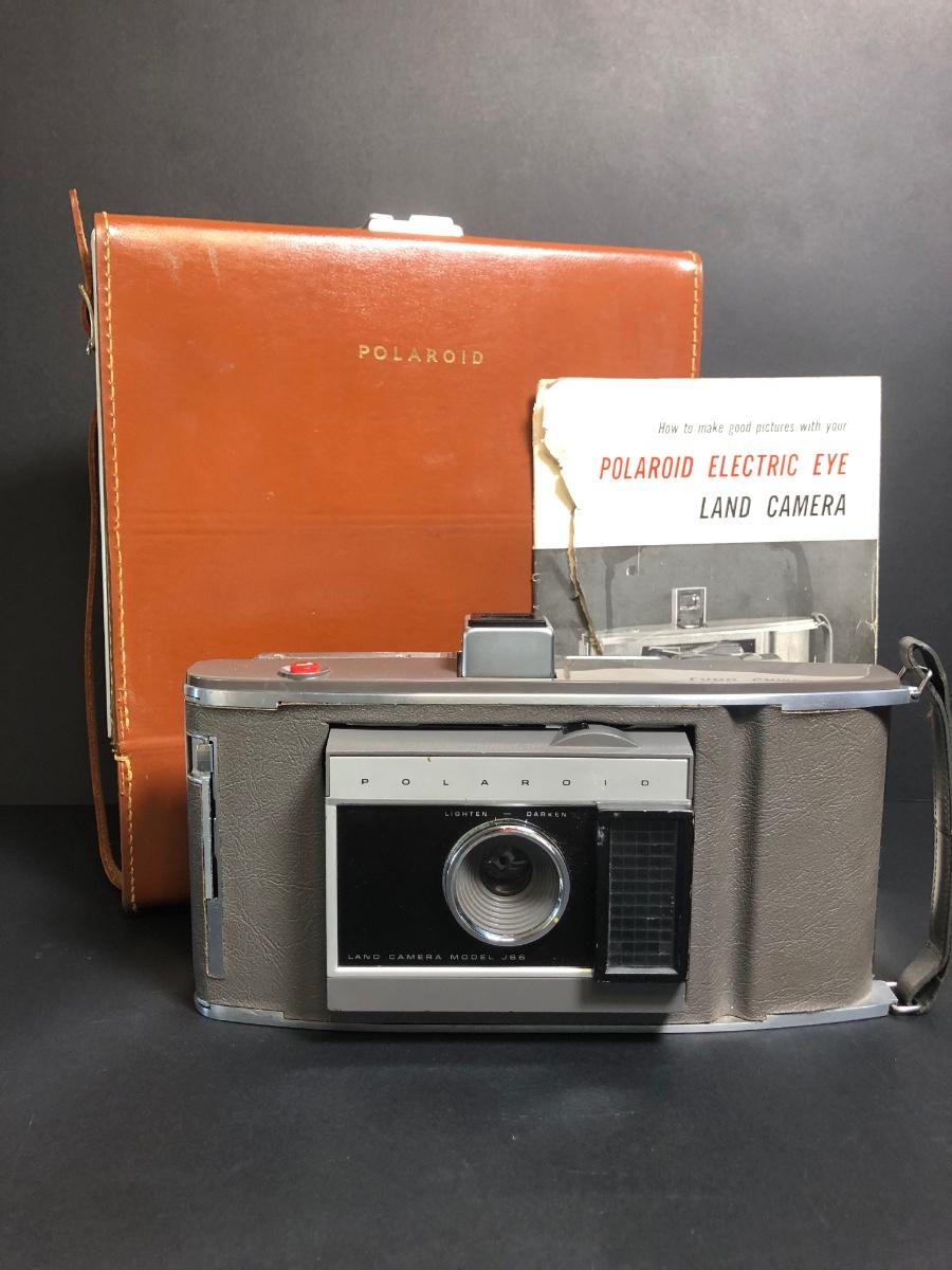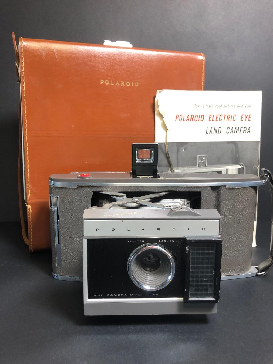 Includes the Kodak Instamatic 414 with its original box and the Polaroid Electric Eye Land Camera with its original case and instruction manual.