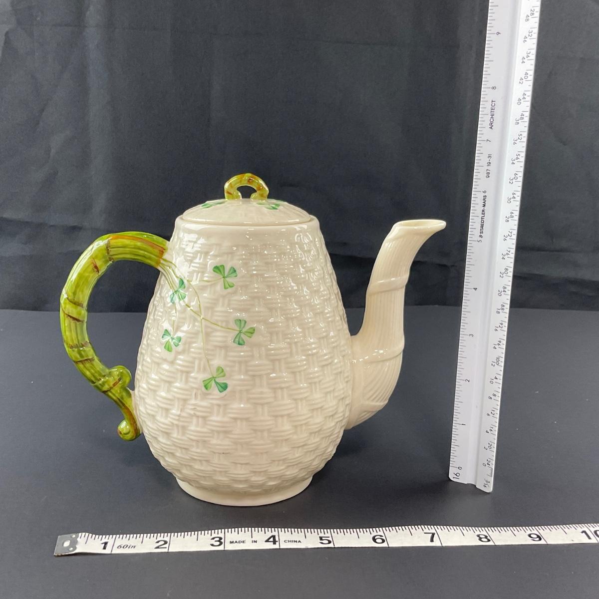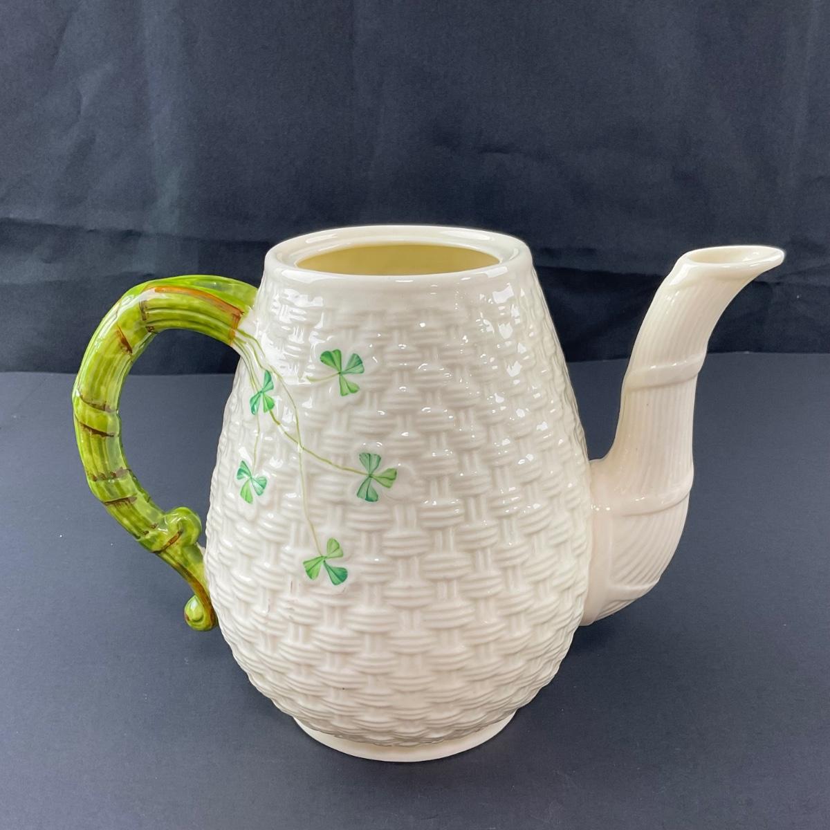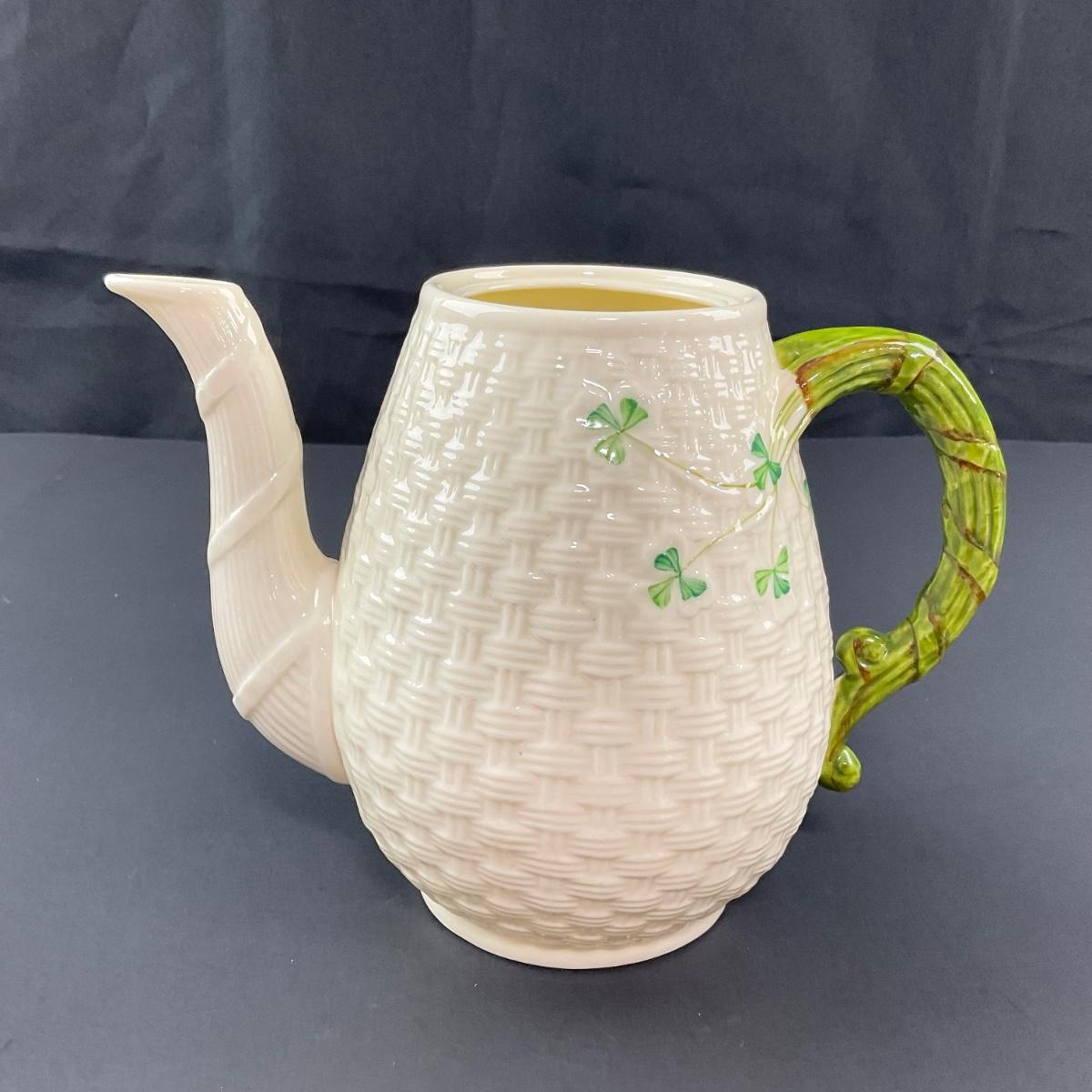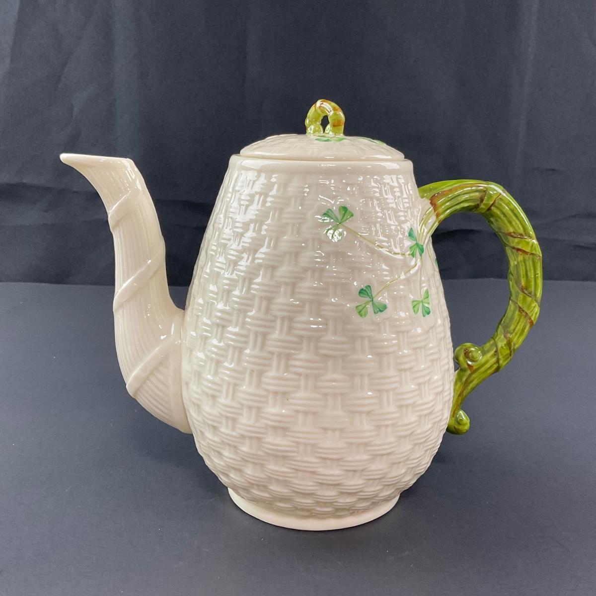 -155- BELLEEK | Shamrock Basketweave Coffee/Teapot | 6th Mark