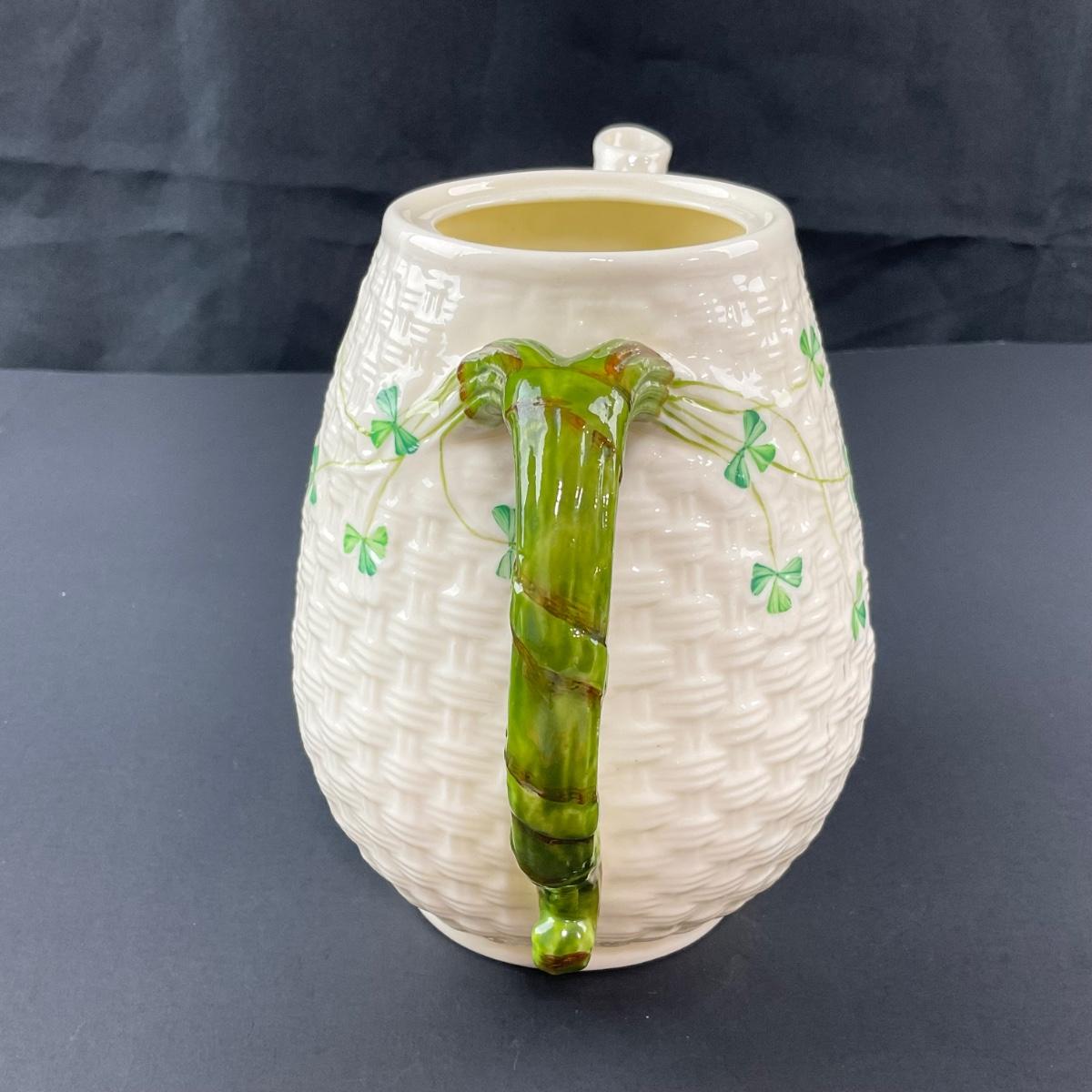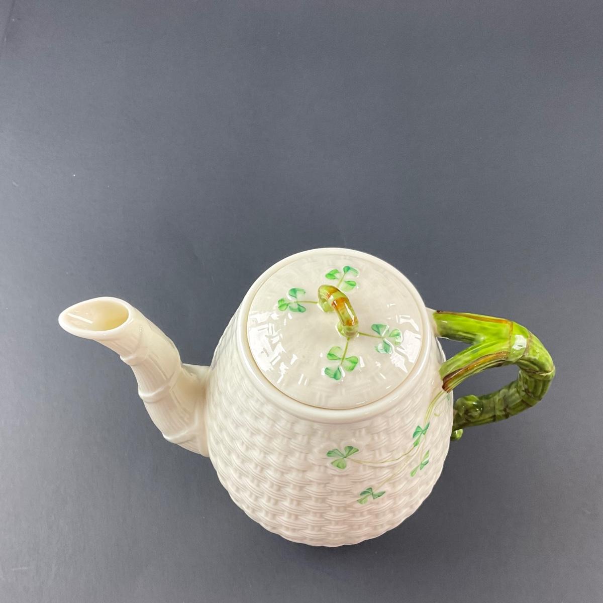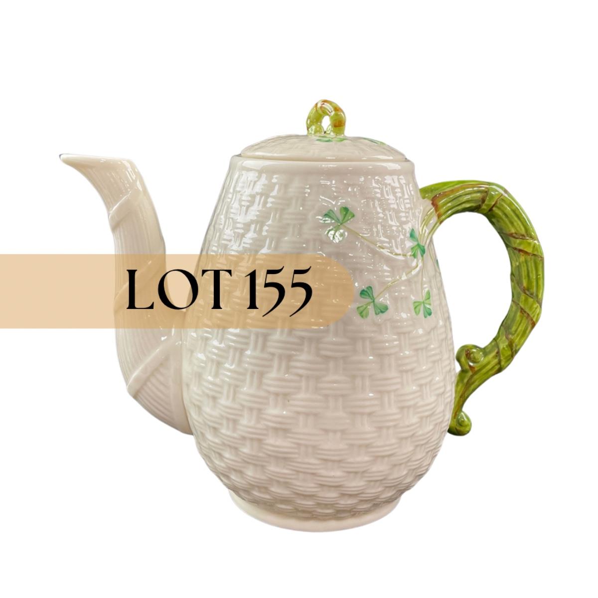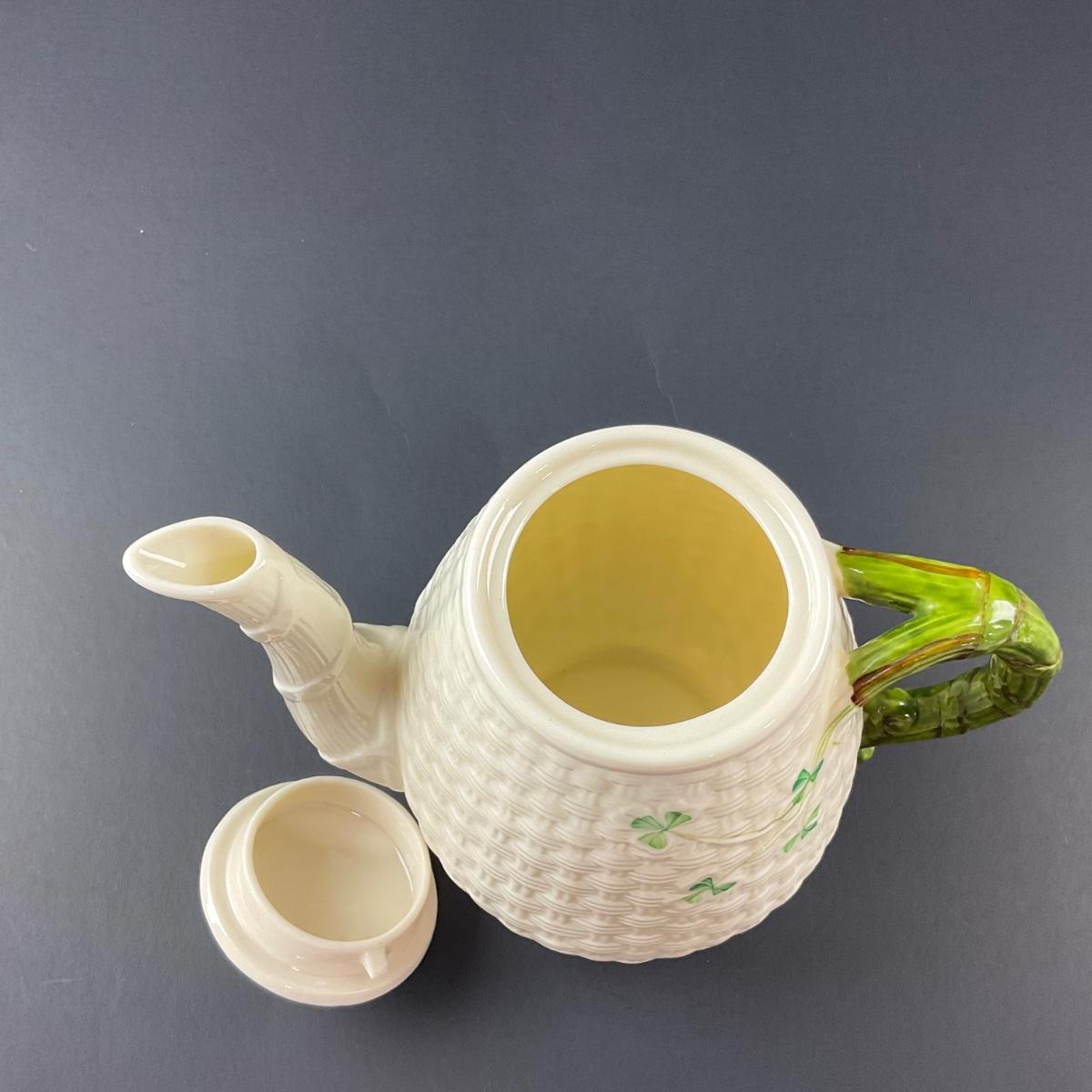 -155- BELLEEK | Shamrock Basketweave Coffee/Teapot | 6th Mark