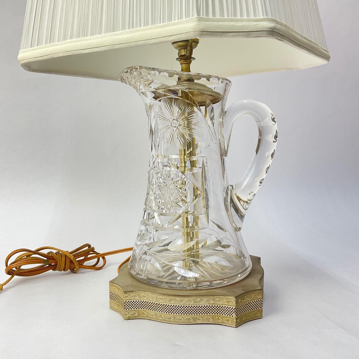 057 Clear Cut Crystal Pitcher Lamp With Shade