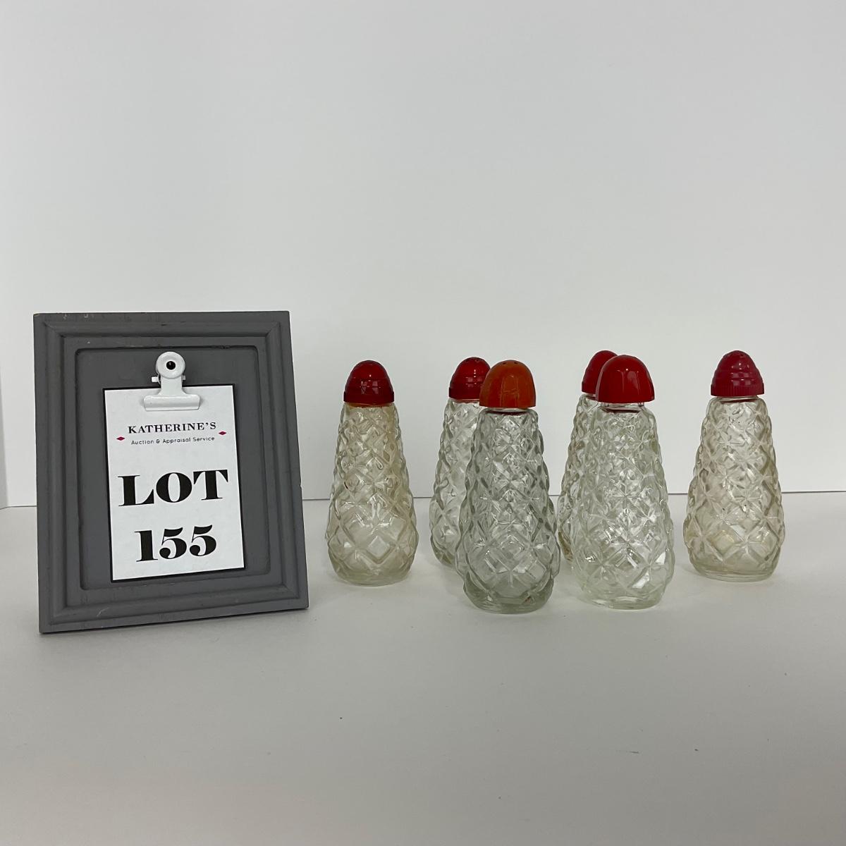 Six Anchor Hocking Glass Co. salt & pepper shakers, these pieces are in rough shape. Please see photos for details and condition. ::: Shipping is available on this lot. If you require shipping you must let us know at the close of the auction. We will coordinate with you after the item has been won. Shipping fees will include insurance up to or exceeding the value of all items being mailed. If you have any questions regarding this lot please contact the auctioneer either via this website, by direct email or by phone. PICK UP TIMES and other important information can be found in the TERMS and DESCRIPTION of the auction. Please take a look for pertinent information. Thanks!
