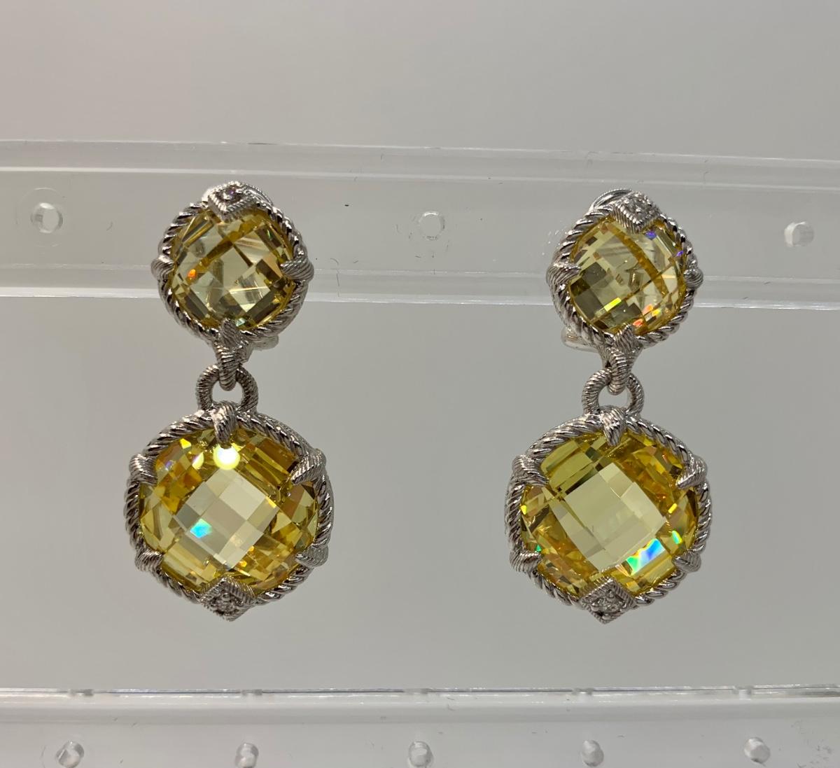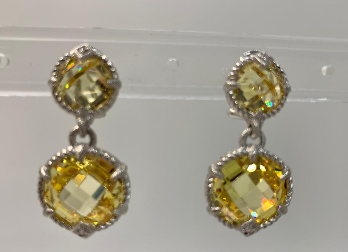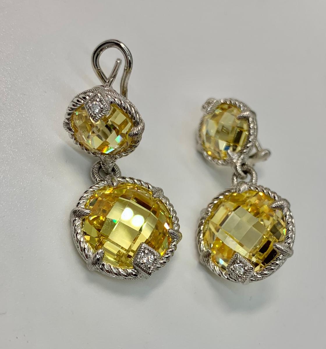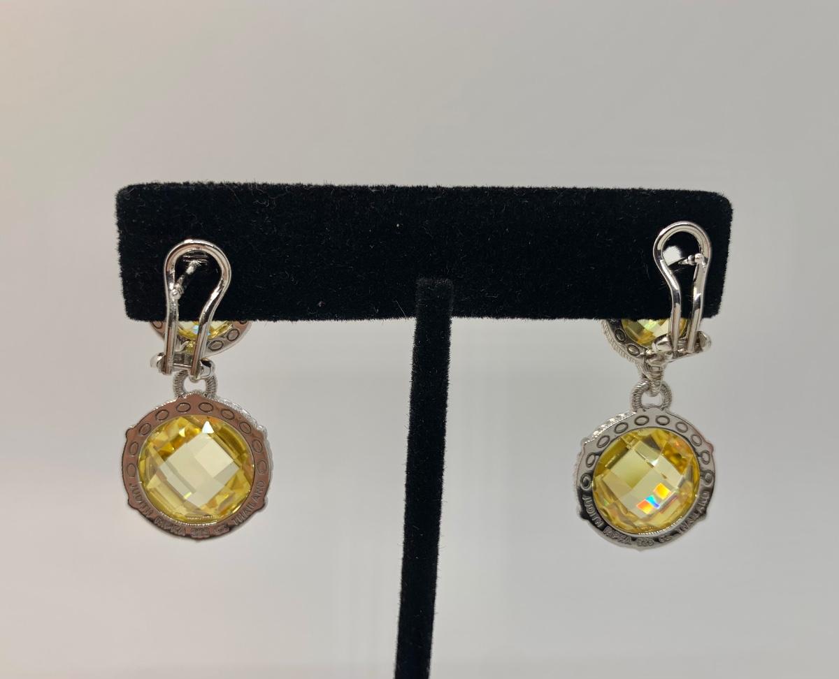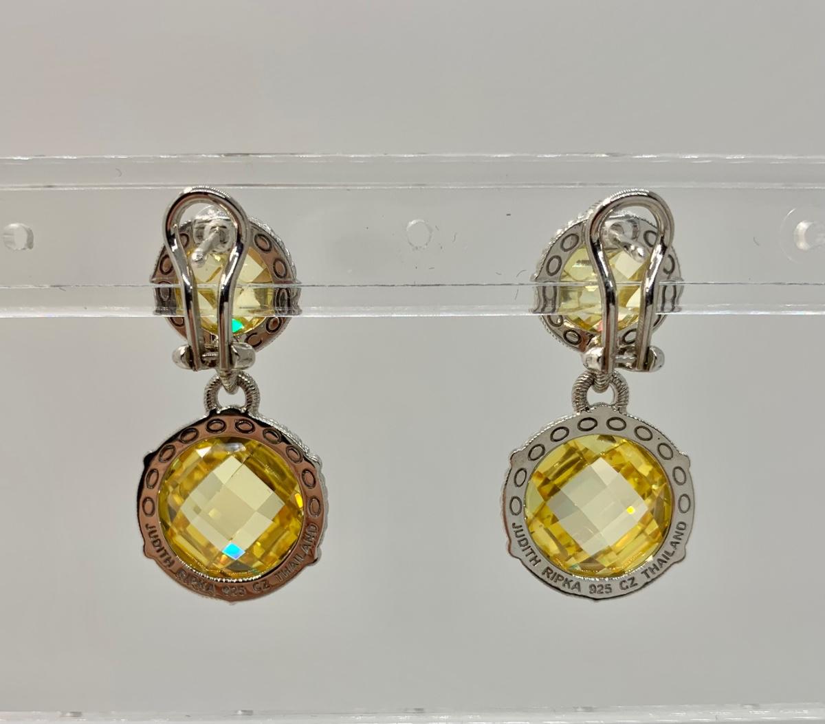 Lot J155: Judith Ripka Sterling Yellow Diamonique Eclipse Pierced Drop Earrings