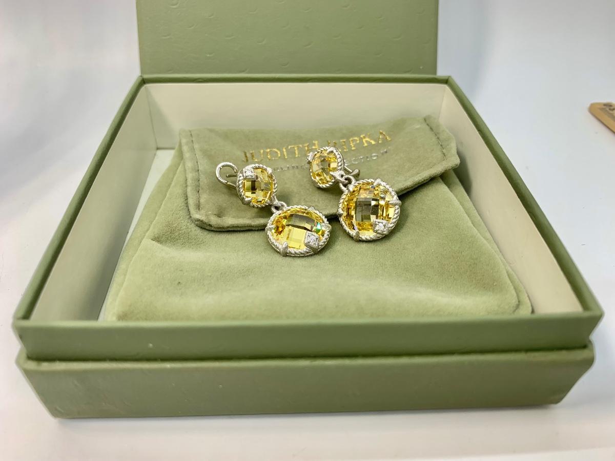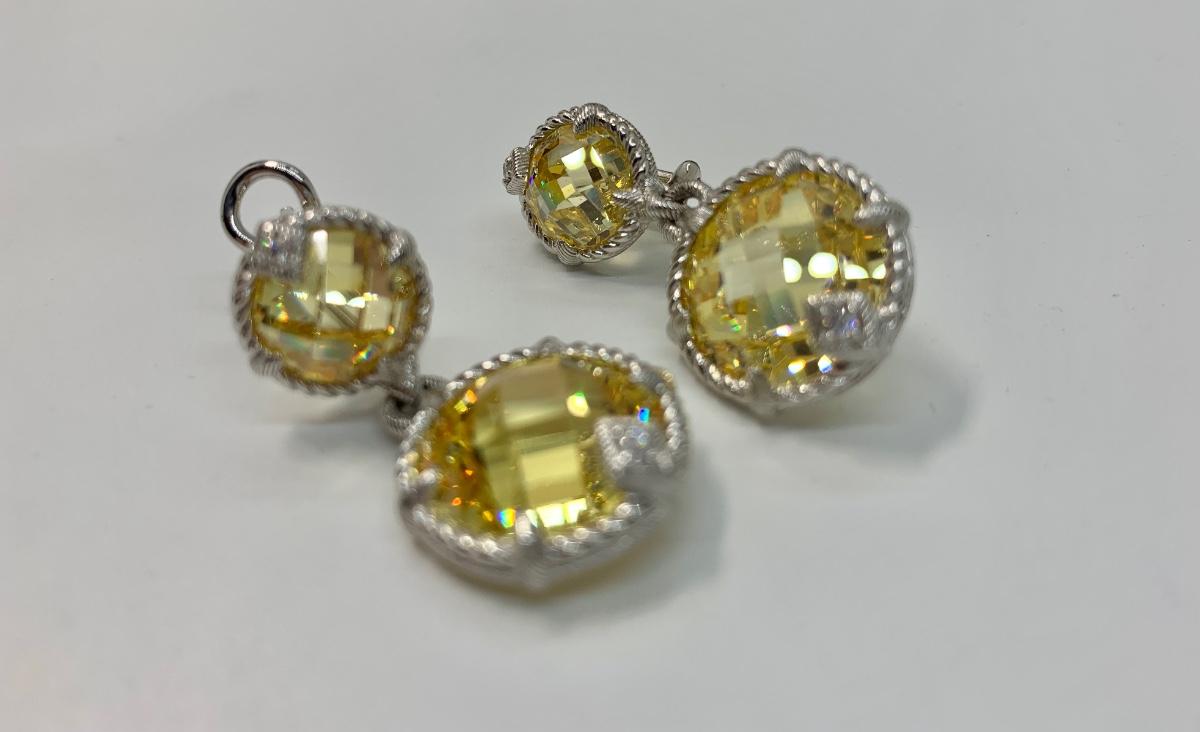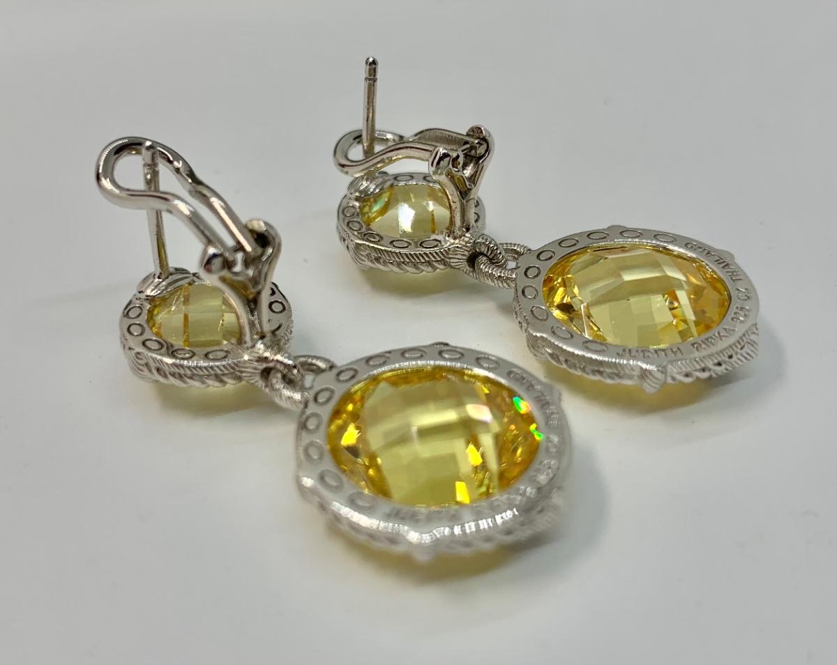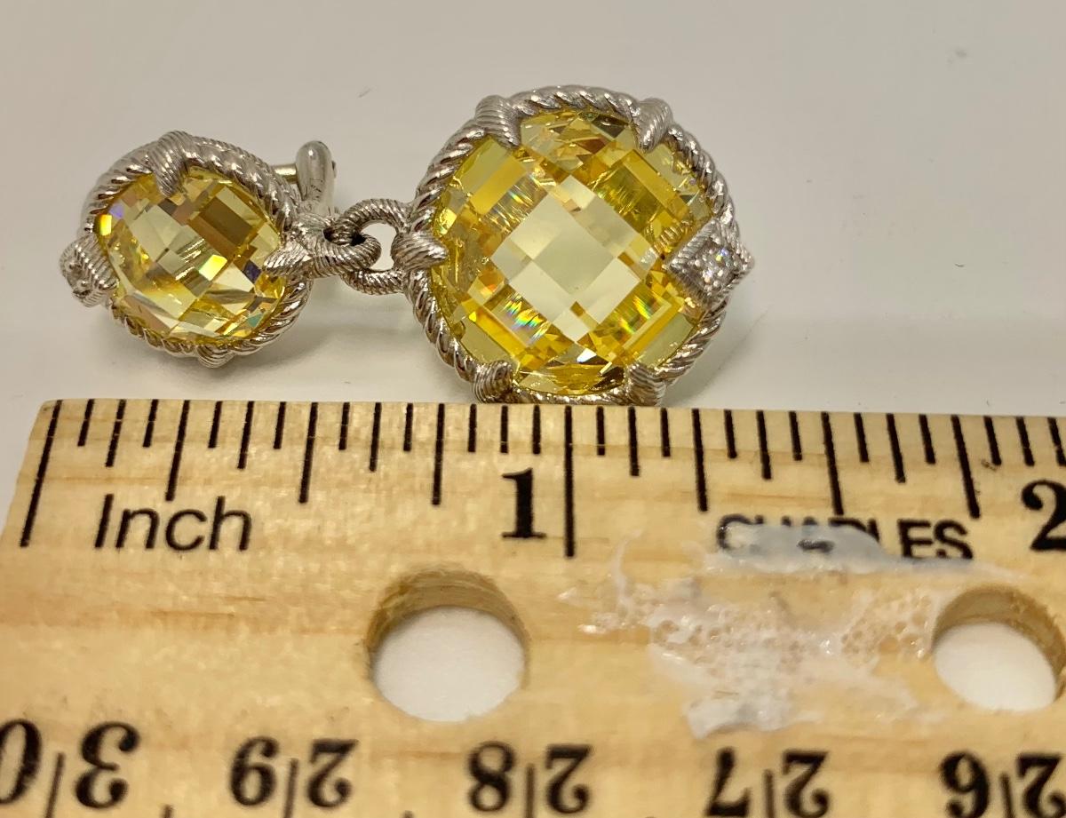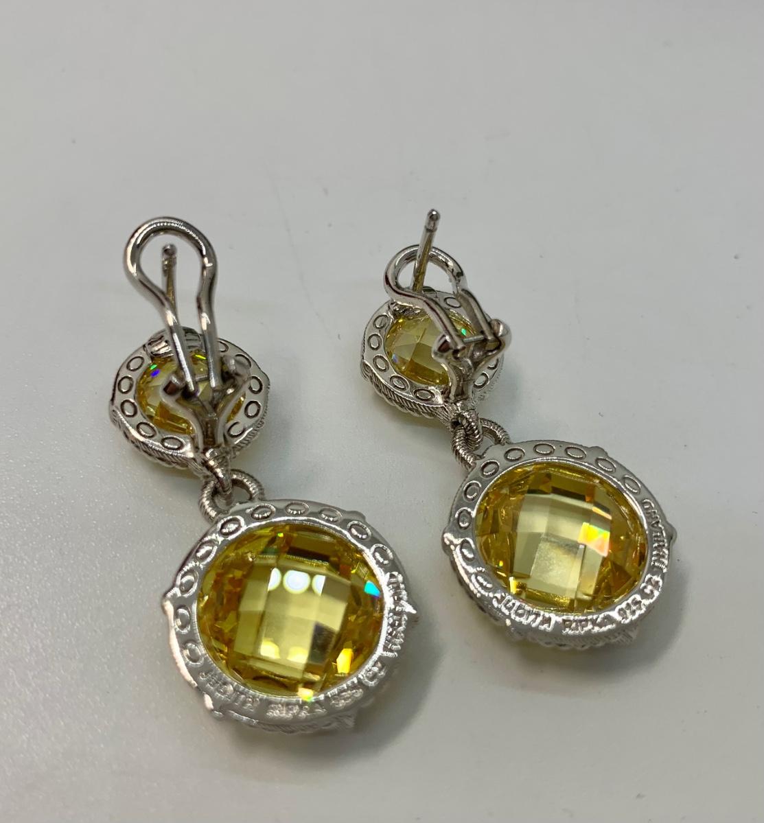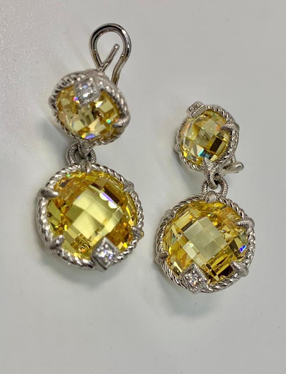Lot J155: Judith Ripka Sterling Yellow Diamonique Eclipse Pierced Drop Earrings