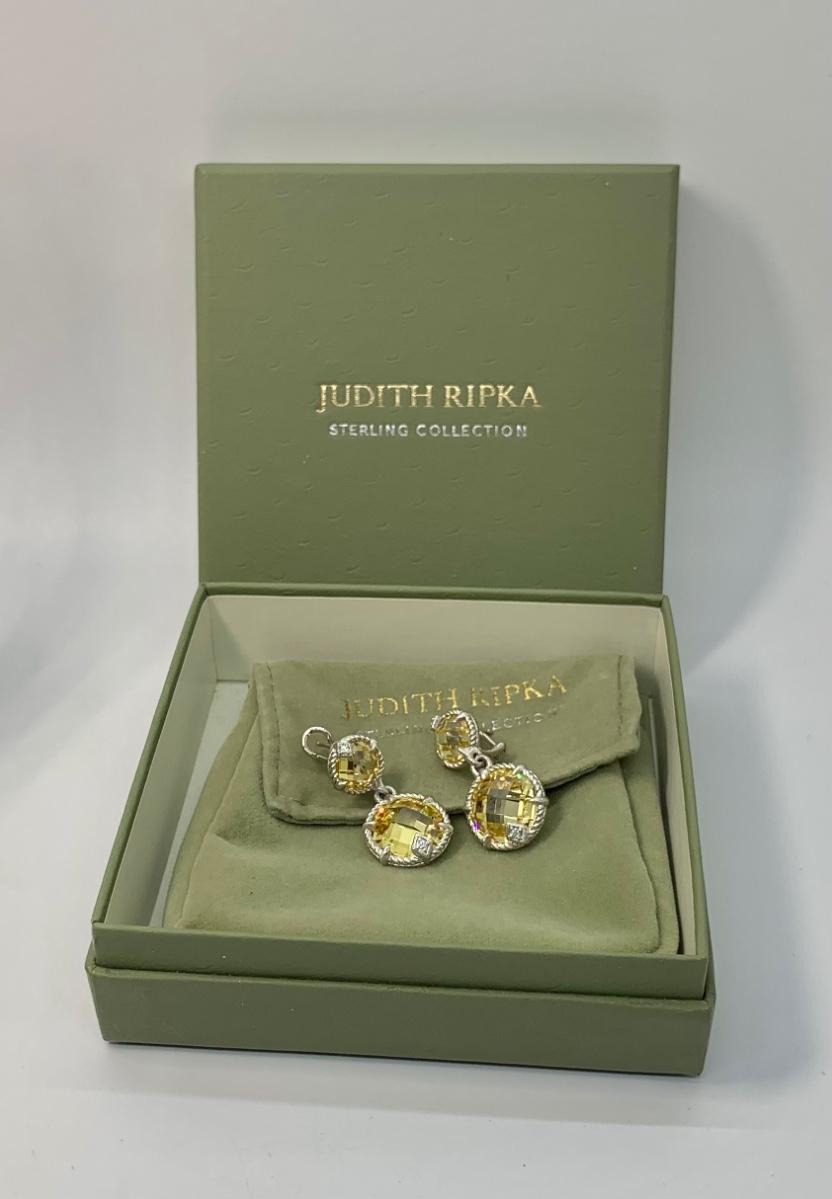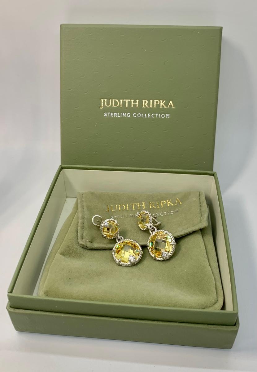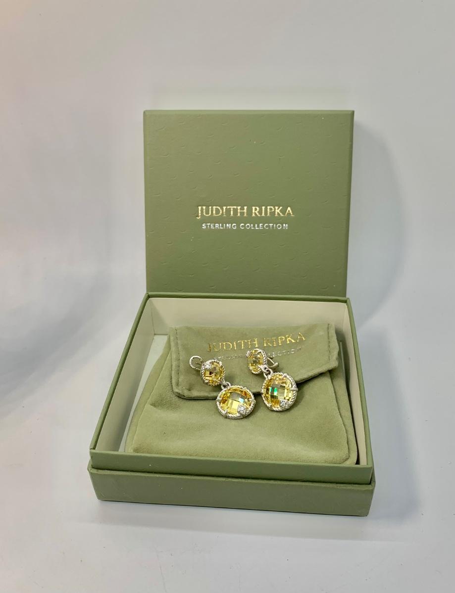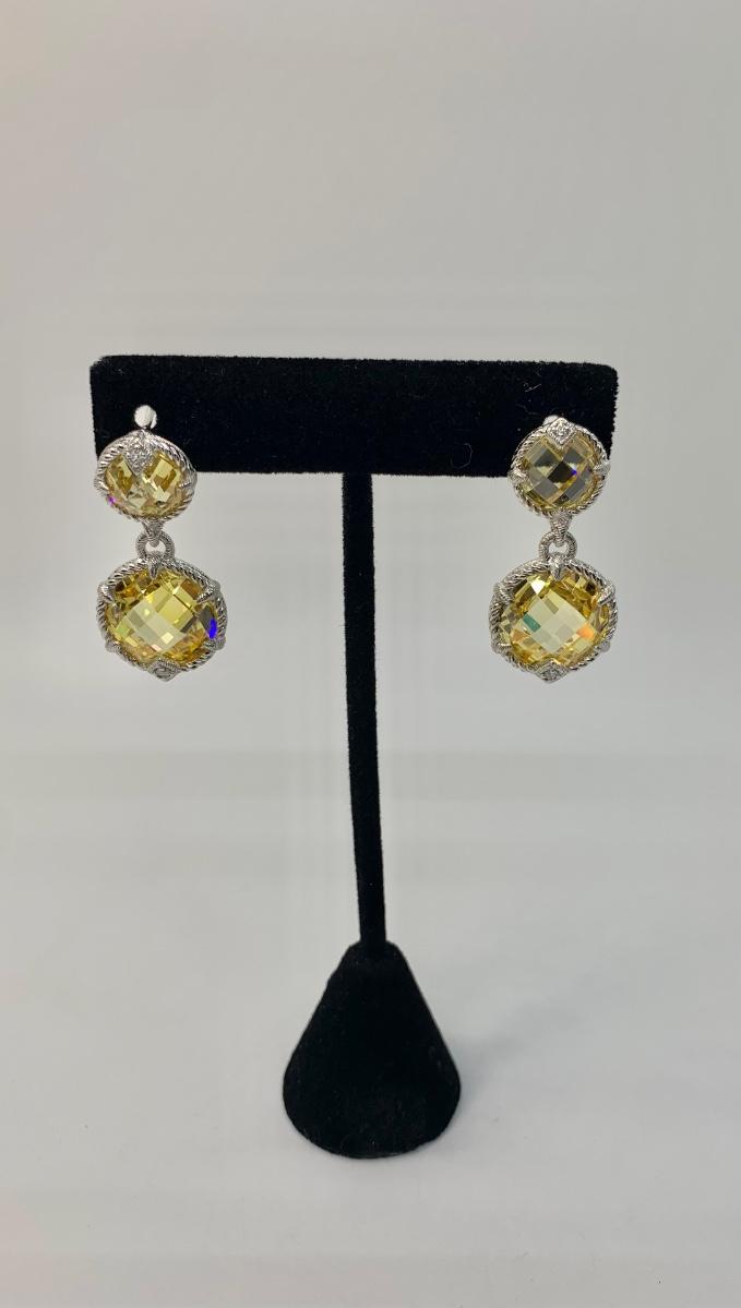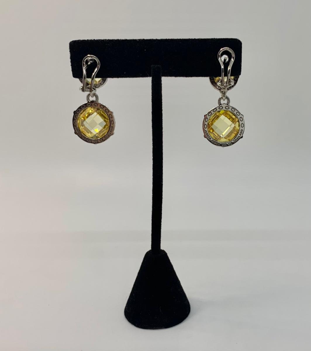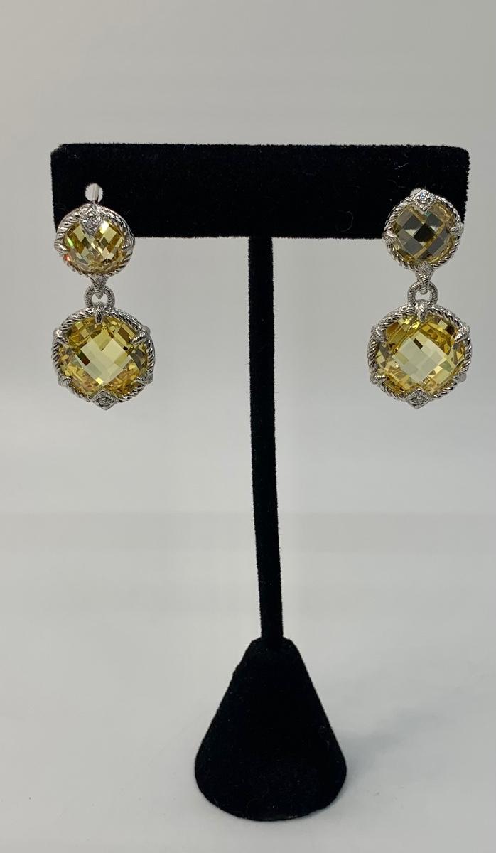 Lot J155:  Judith Ripka Sterling Yellow Diamonique Eclipse Pierced Drop Earrings