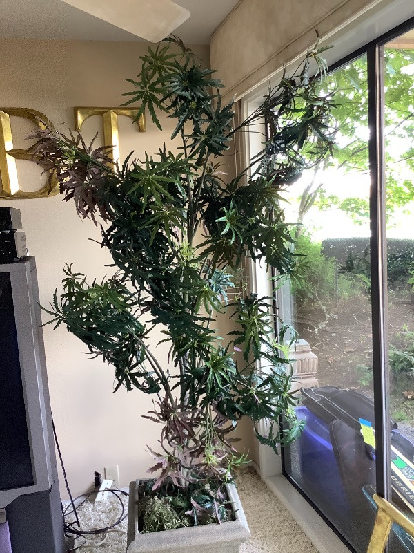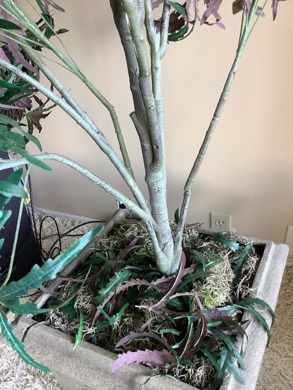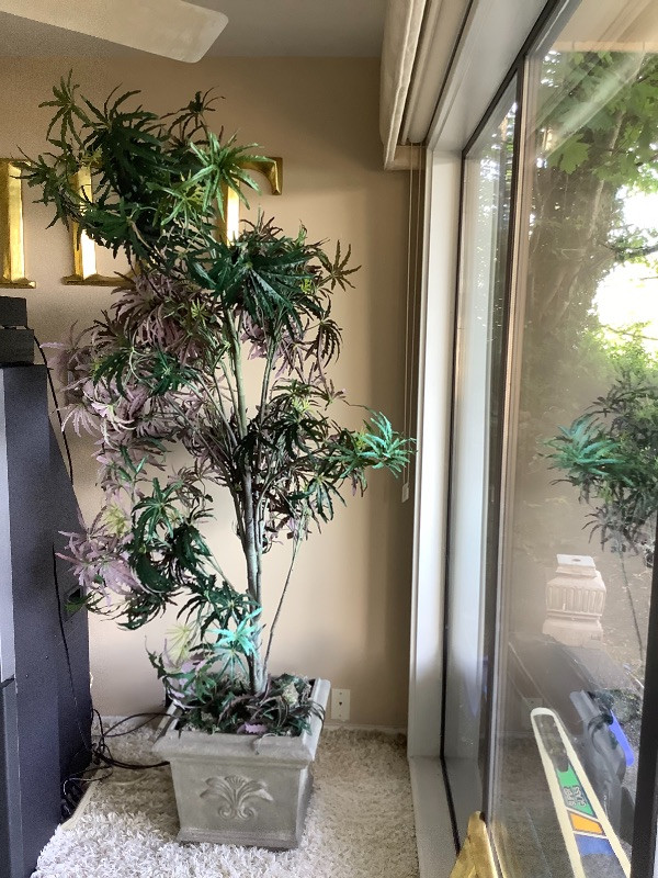 Large Artificial Maple Tree 82” Tall in resin pot 19” square. Small crack in pot see picture
