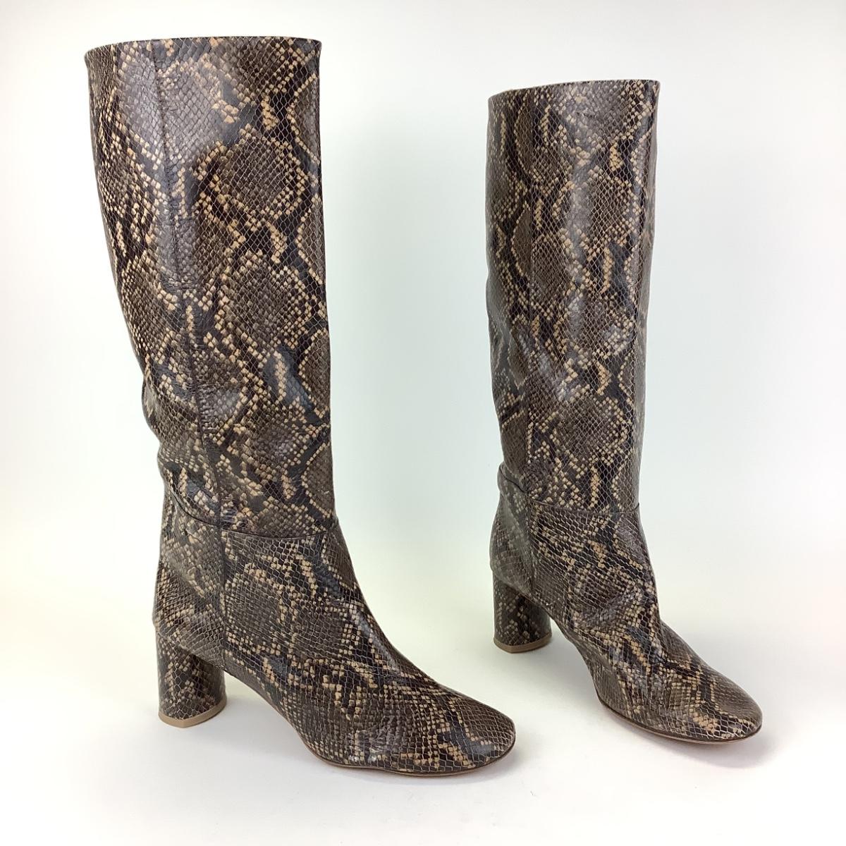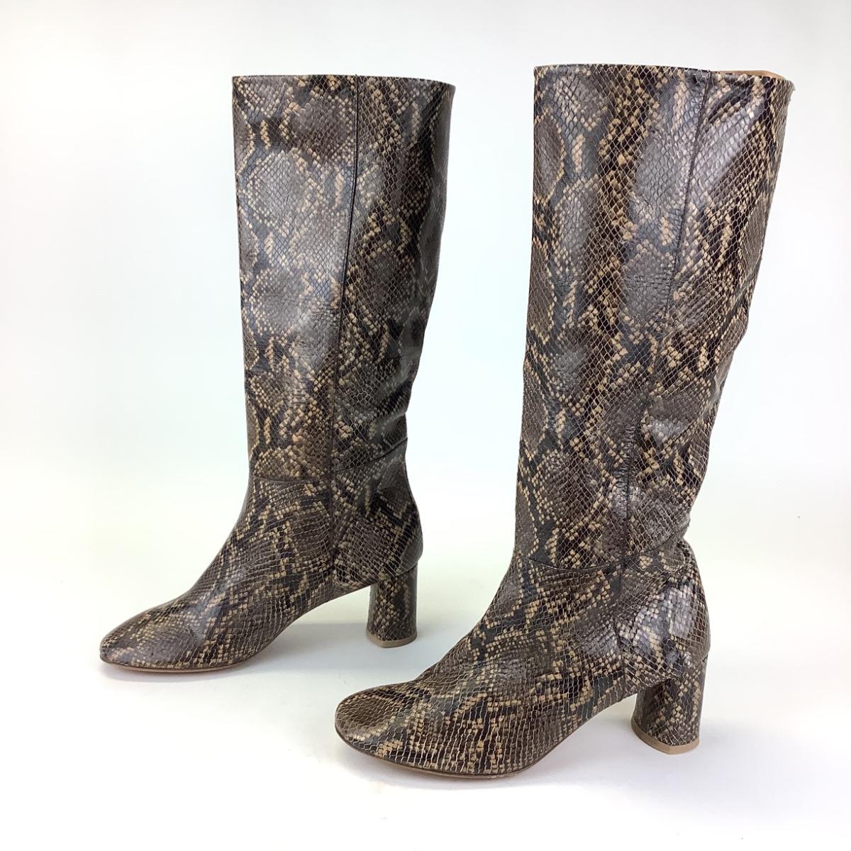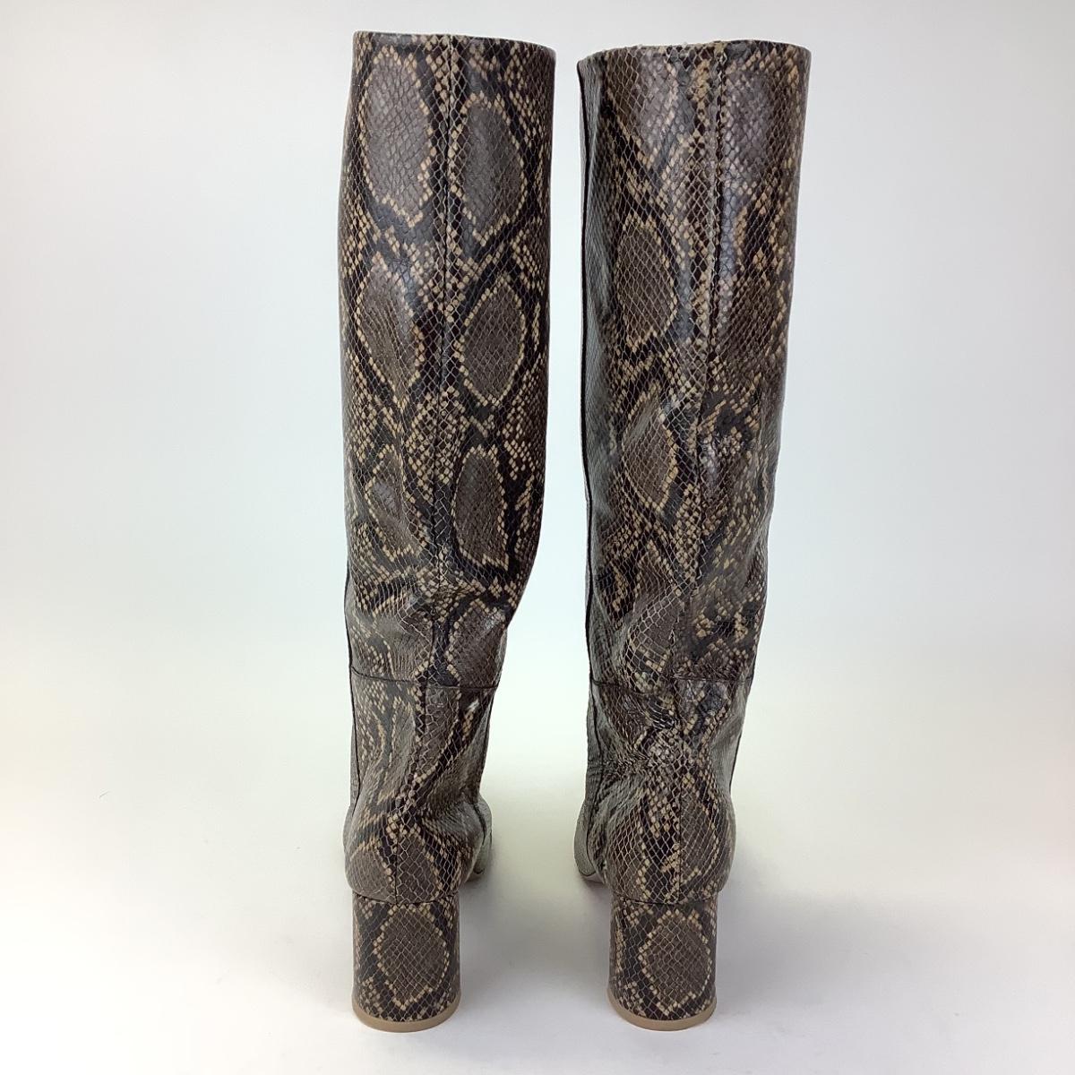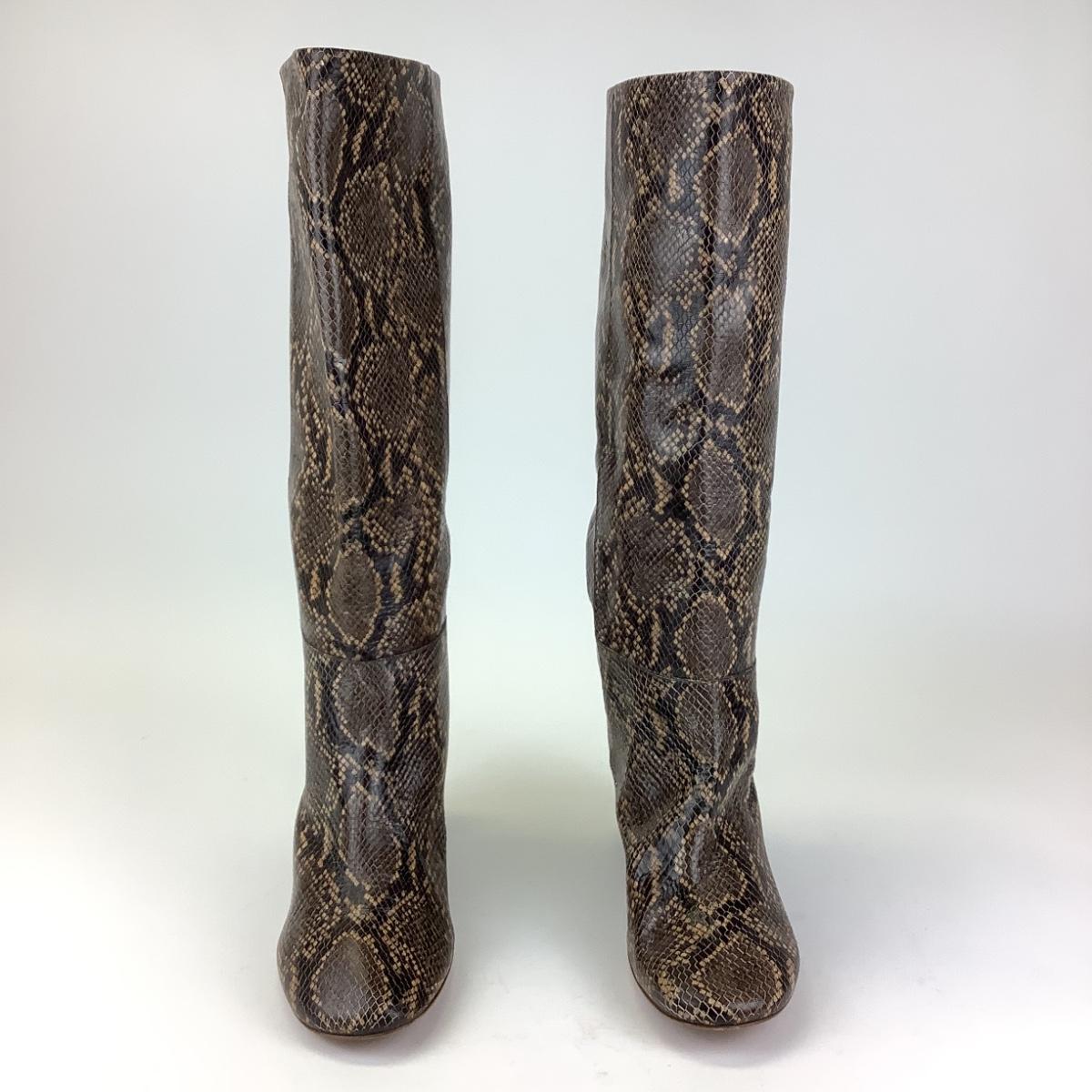 Gently worn LoQ high boots made of leather with snake print, block heel, and made in Spain.