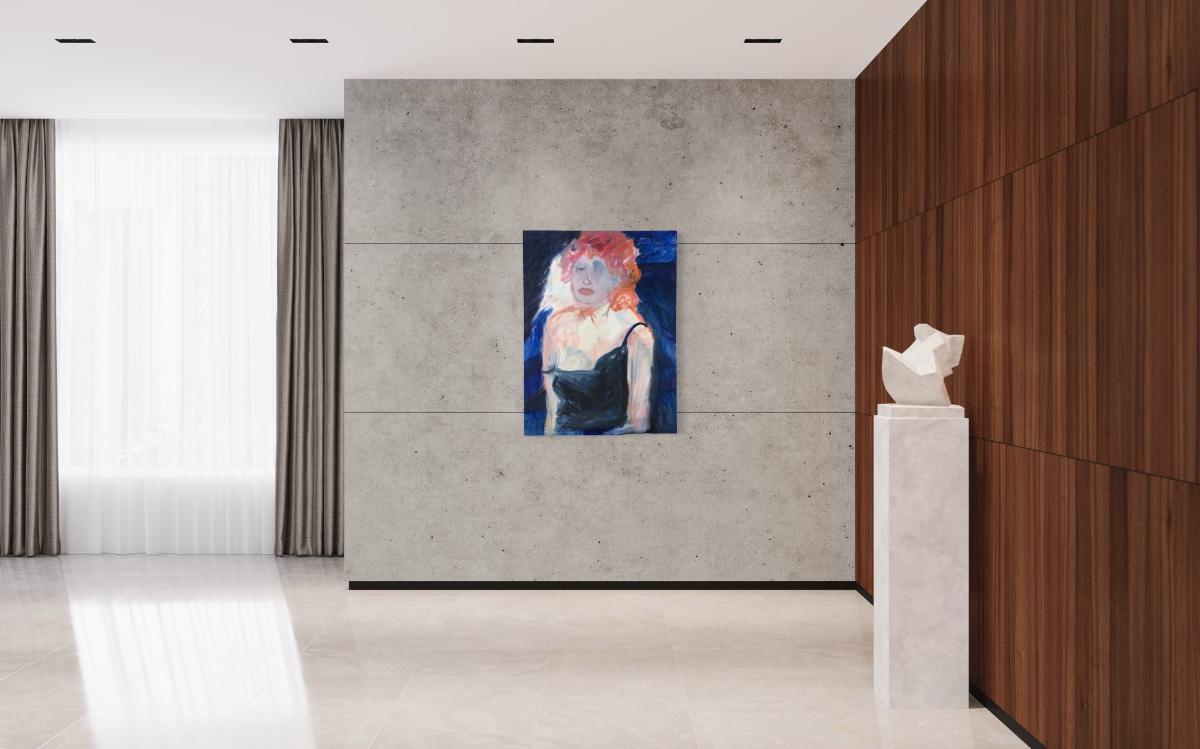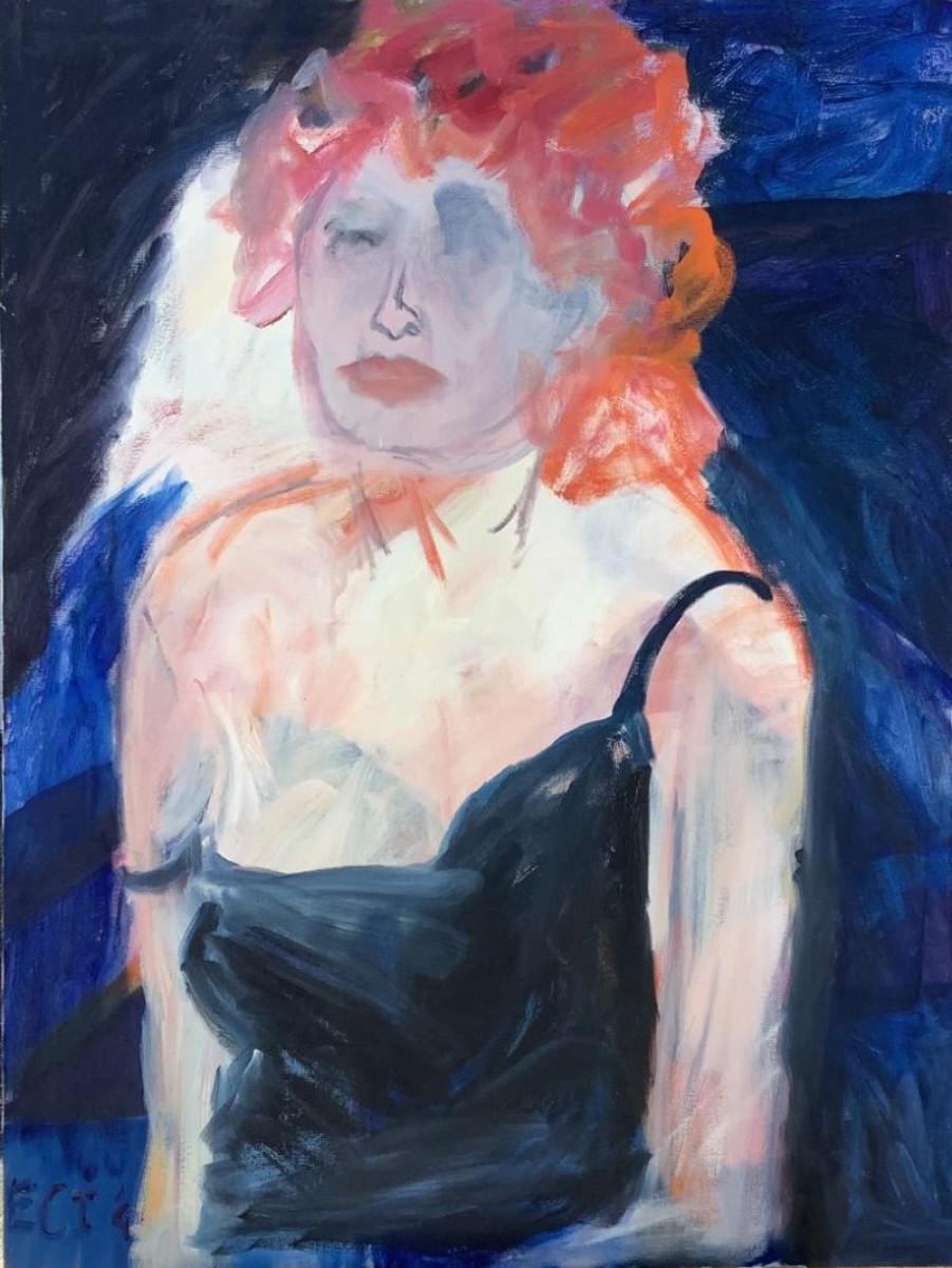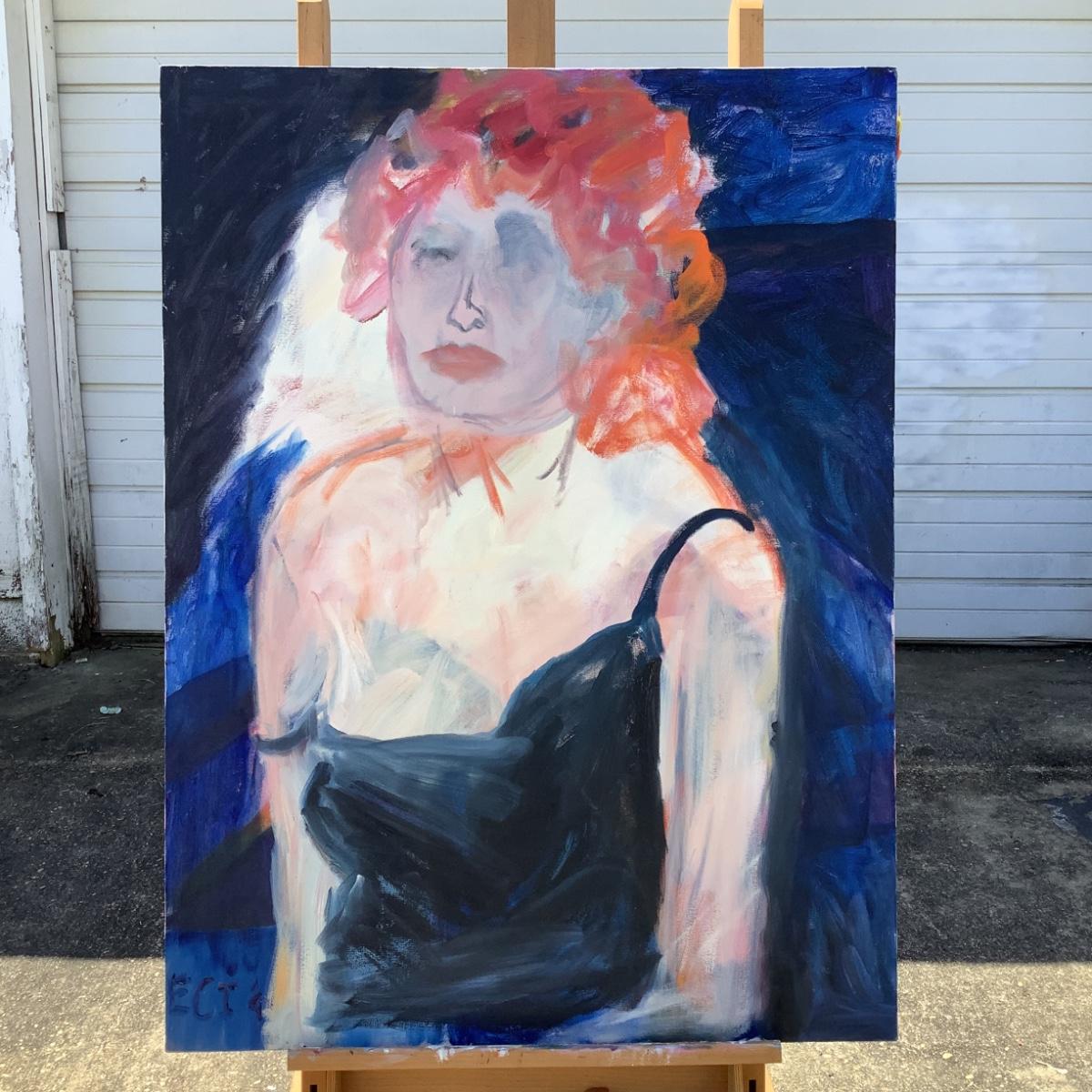 155 Red Headed Women Black Tank Top 1990"s Oil on Canvas by Ellen Into