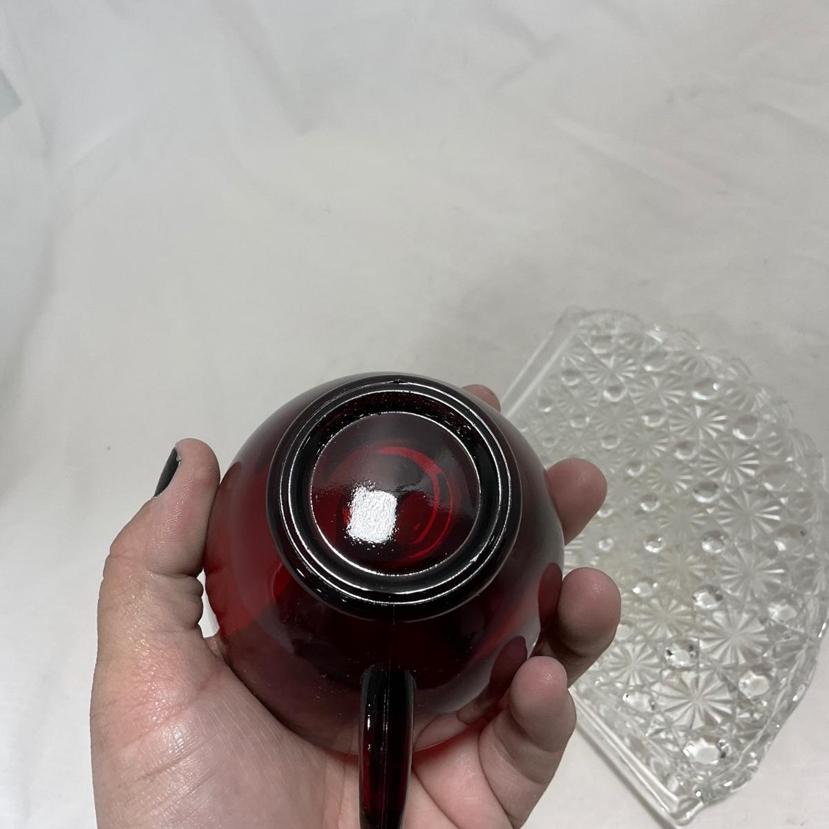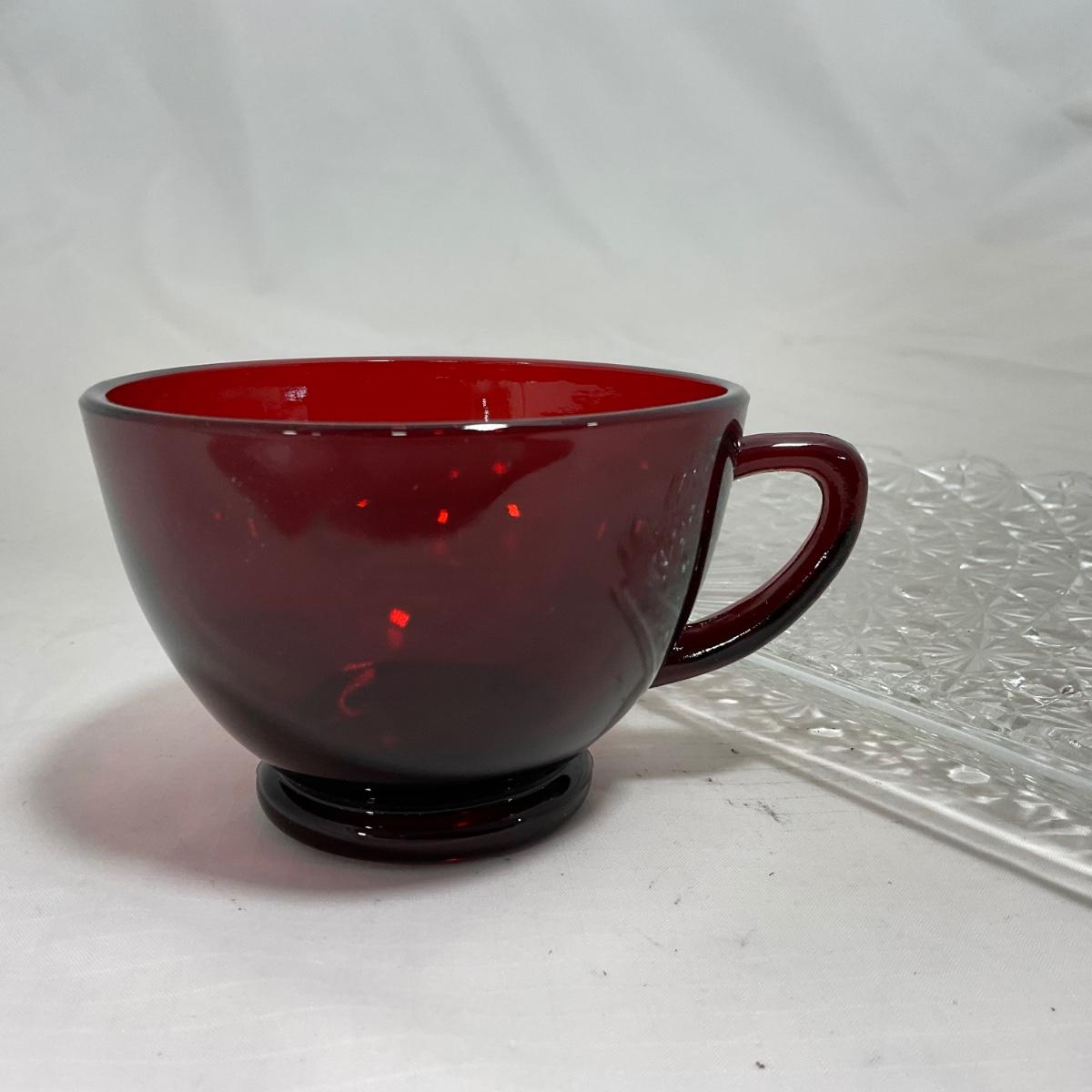 -155- Ruby Red and Clear Glass | Serva Snack Set | Anchor Hocking | New In Box | 8 Piece Set