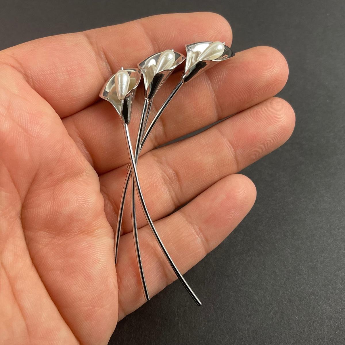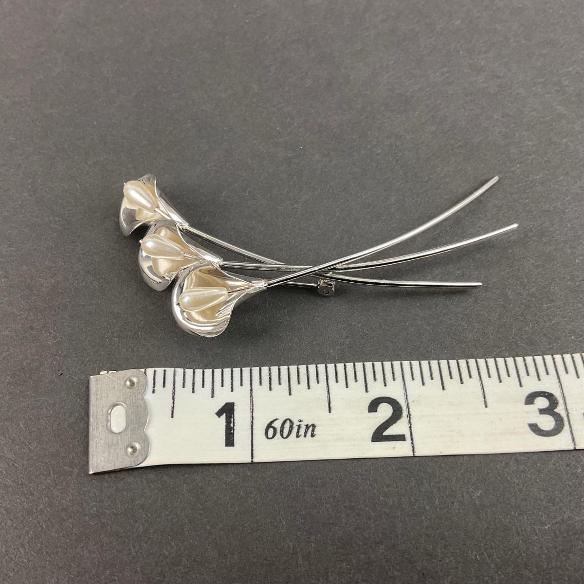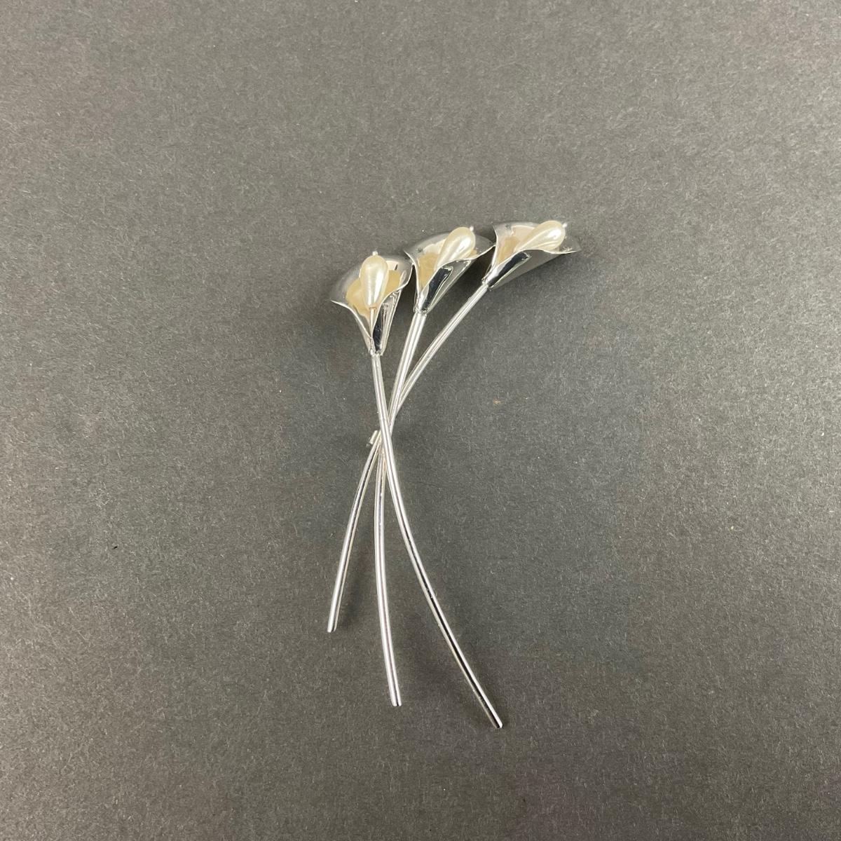 -155- SILVER | Sterling Beau Calla Lilly Faux Pearl Bouquet Brooch | Marked
