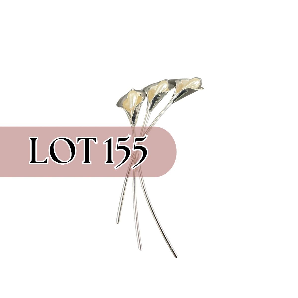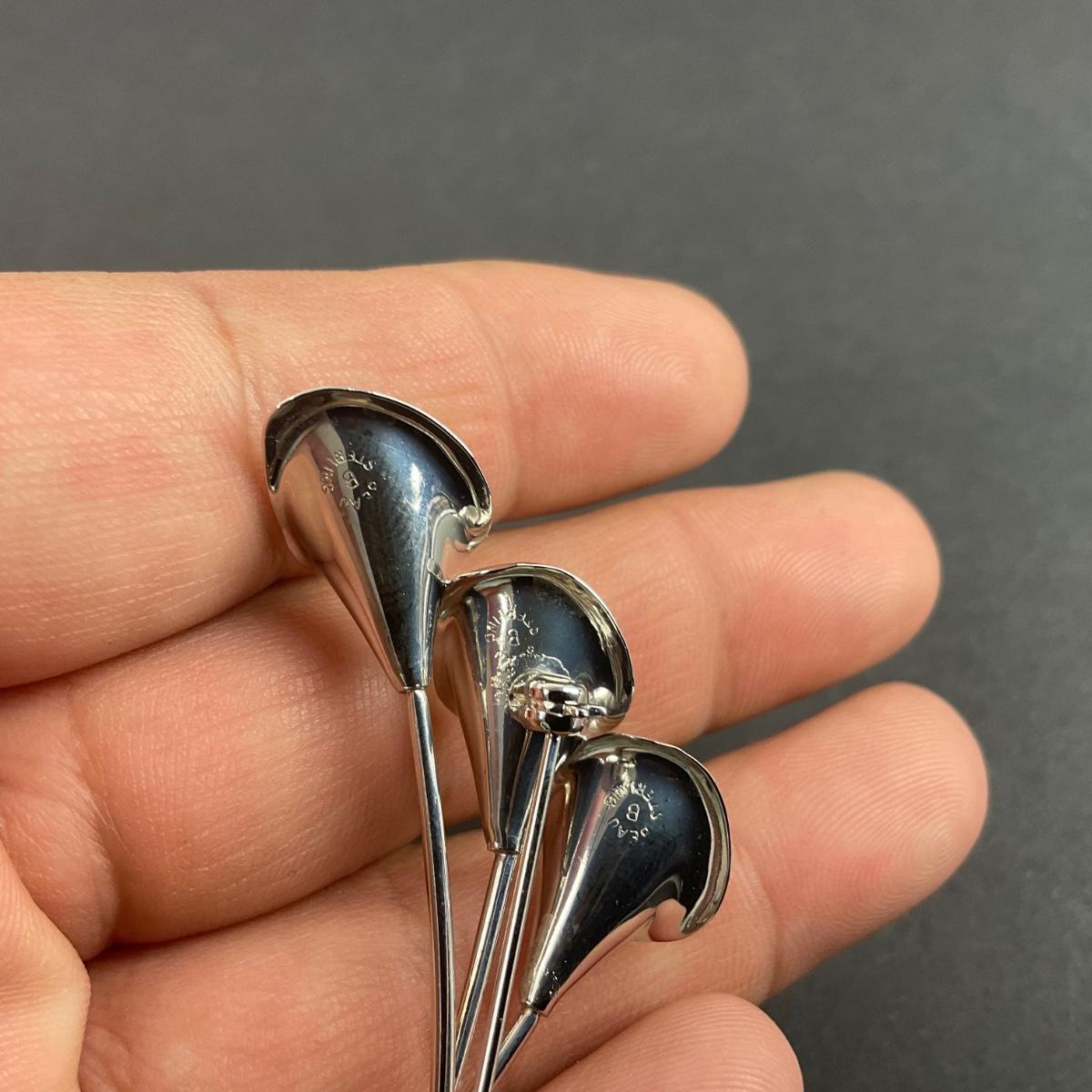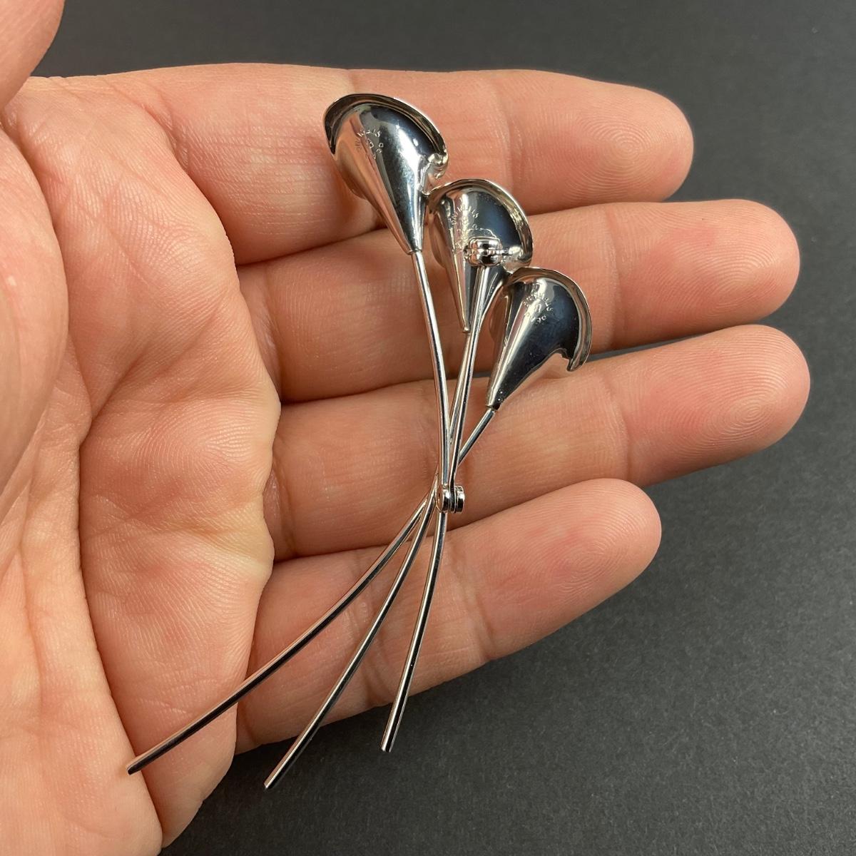-155- SILVER | Sterling Beau Calla Lilly Faux Pearl Bouquet Brooch | Marked