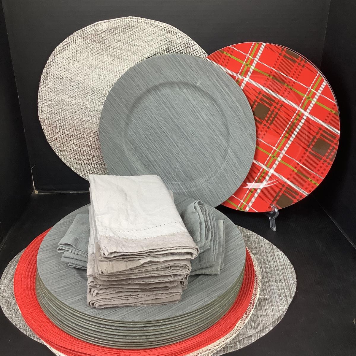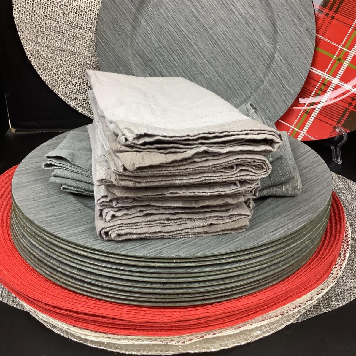 Assorted placemats and chargers.