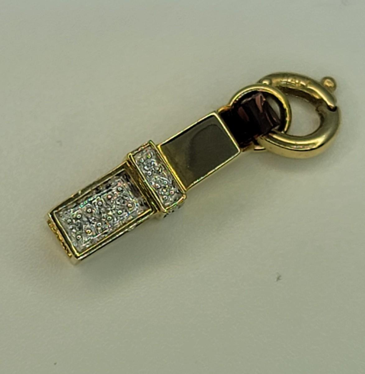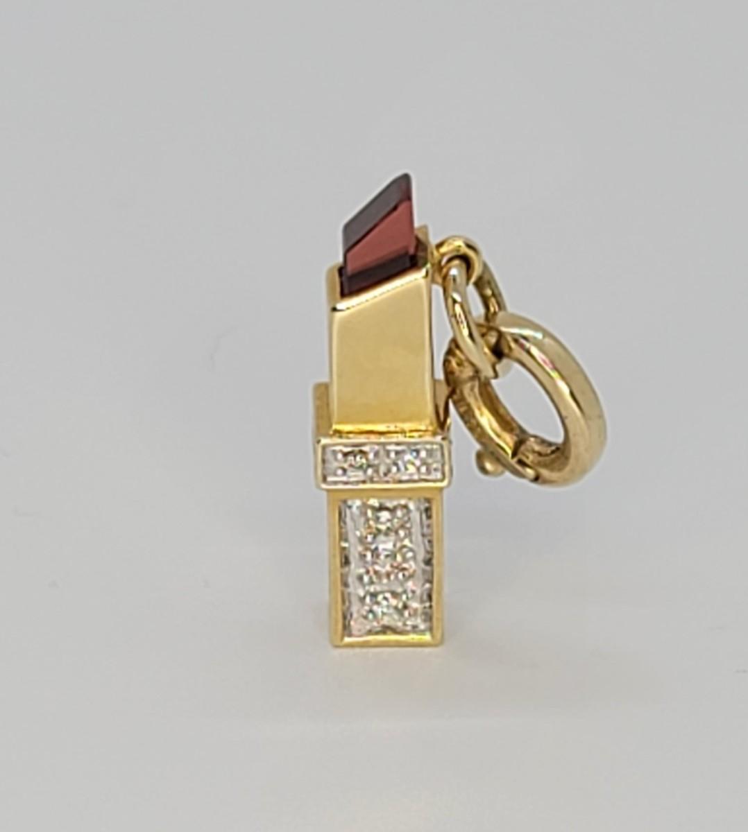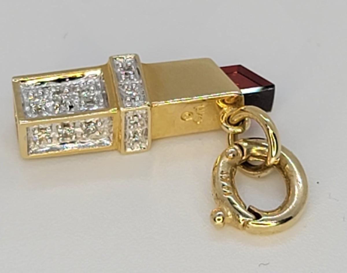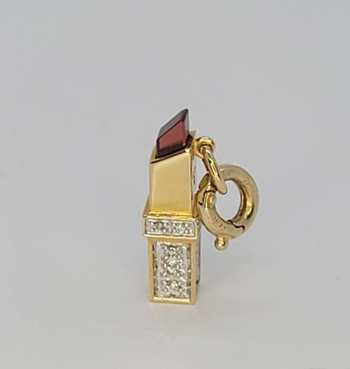 2.8g 14k Yellow gold with diamond chips Lipstick Charm not sure if lipstick is glass or real Garnet ¤”