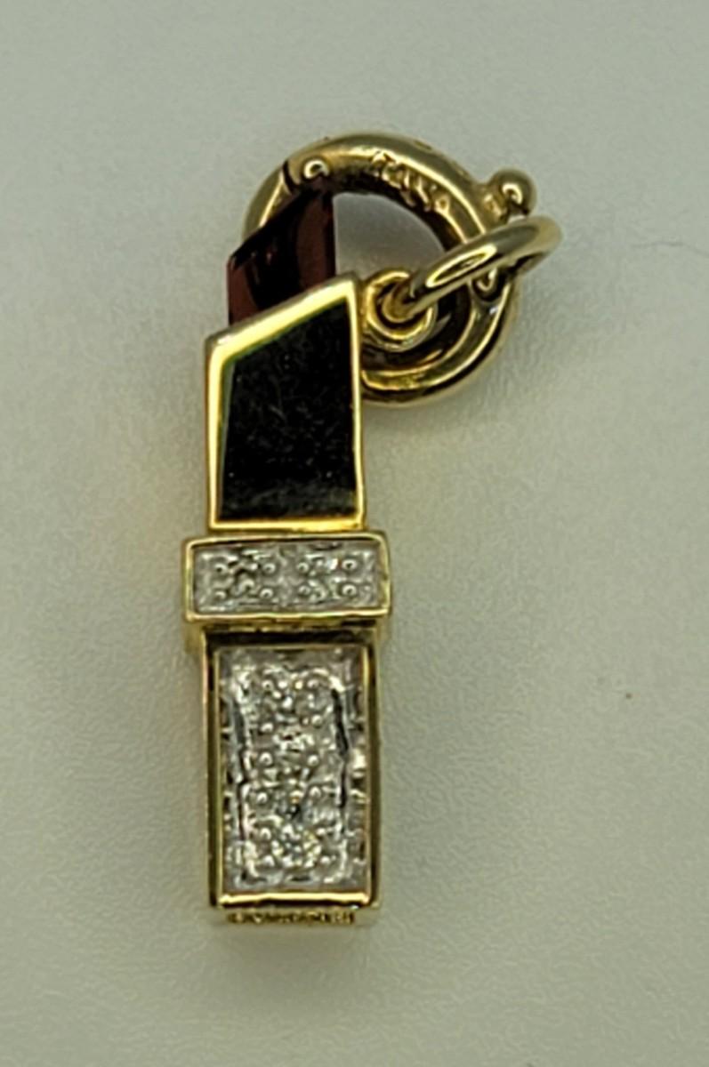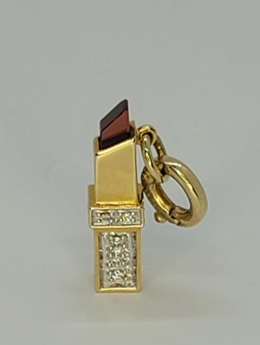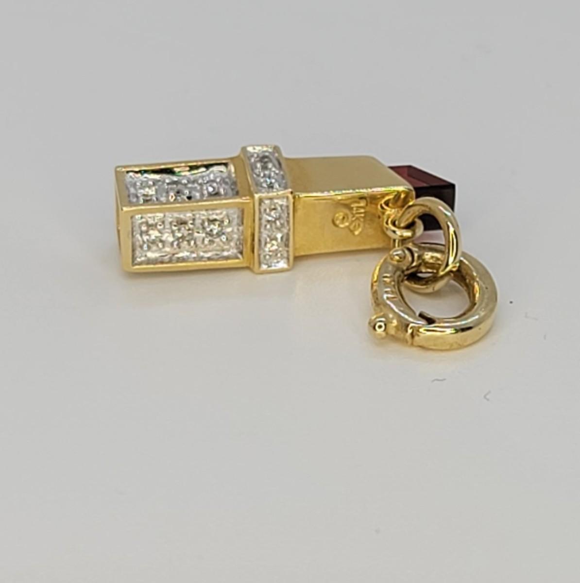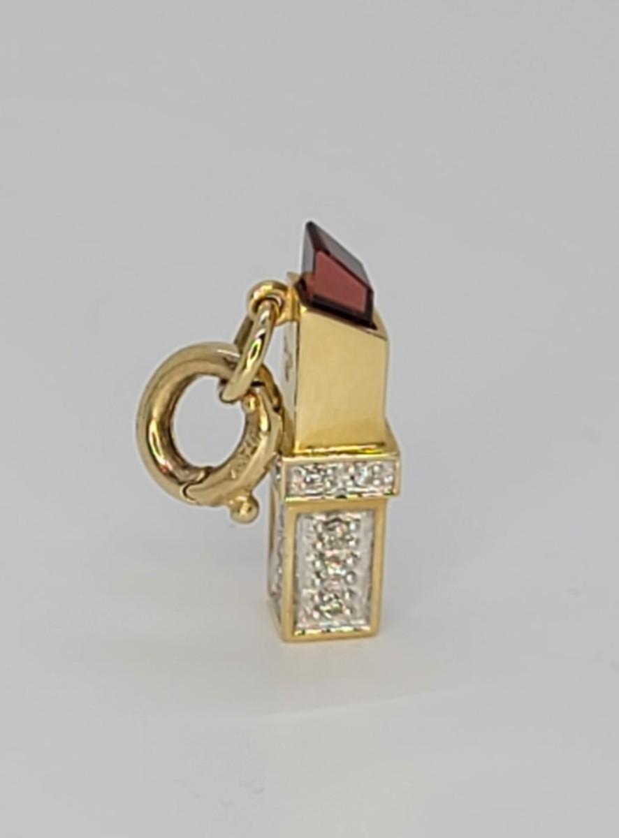 2.8g 14k Yellow gold with diamond chips Lipstick Charm not sure if lipstick is glass or real Garnet ¤”