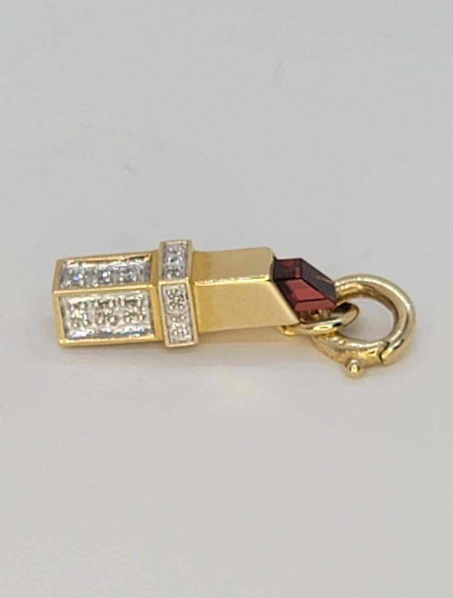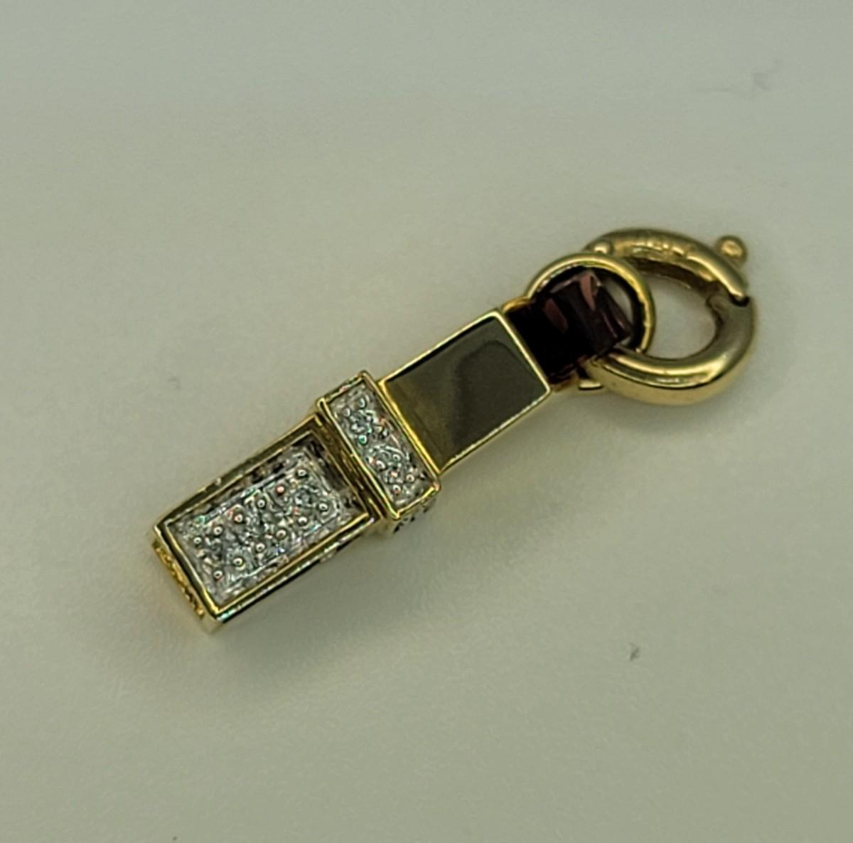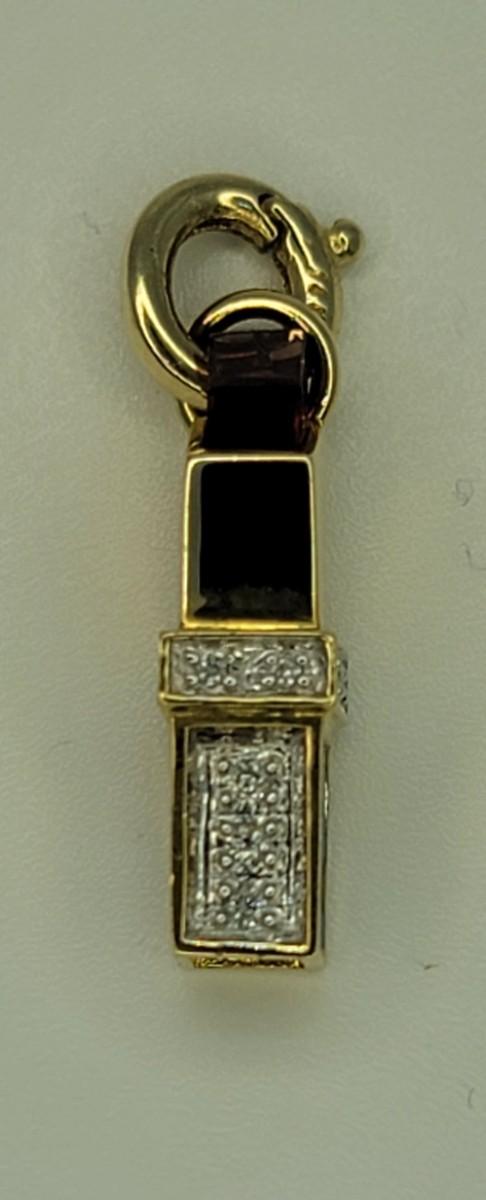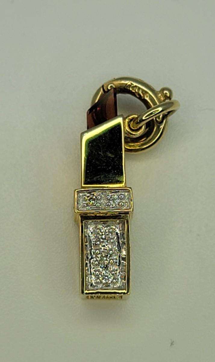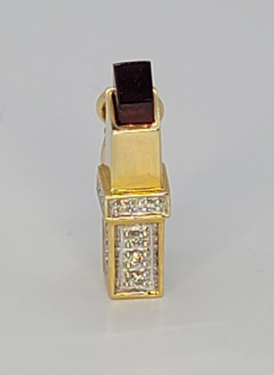 2.8g 14k Yellow gold with diamond chips Lipstick Charm not sure if lipstick is glass or real Garnet ¤”