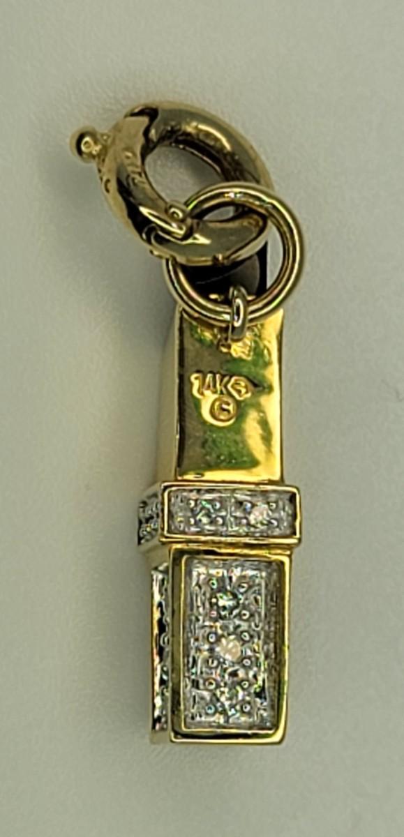 156: 2.8g 14k Yellow gold with 20 lil diamond chips Lipstick Charm