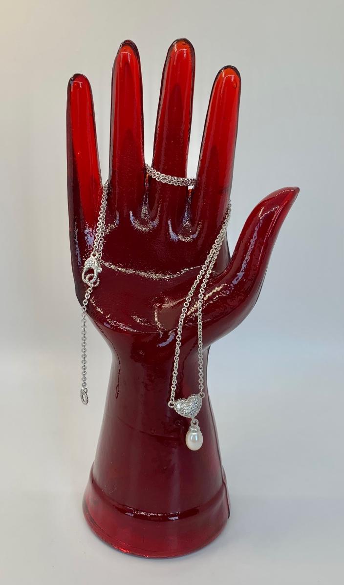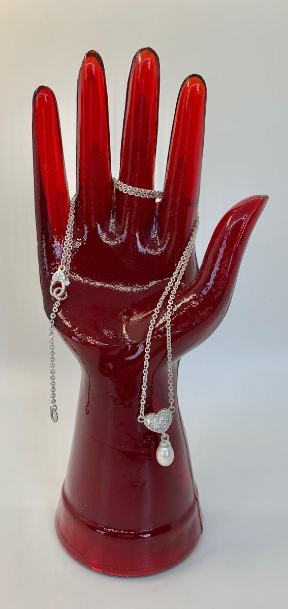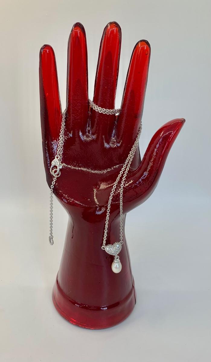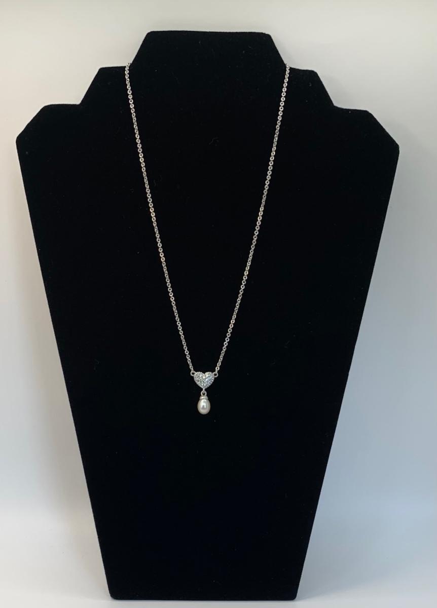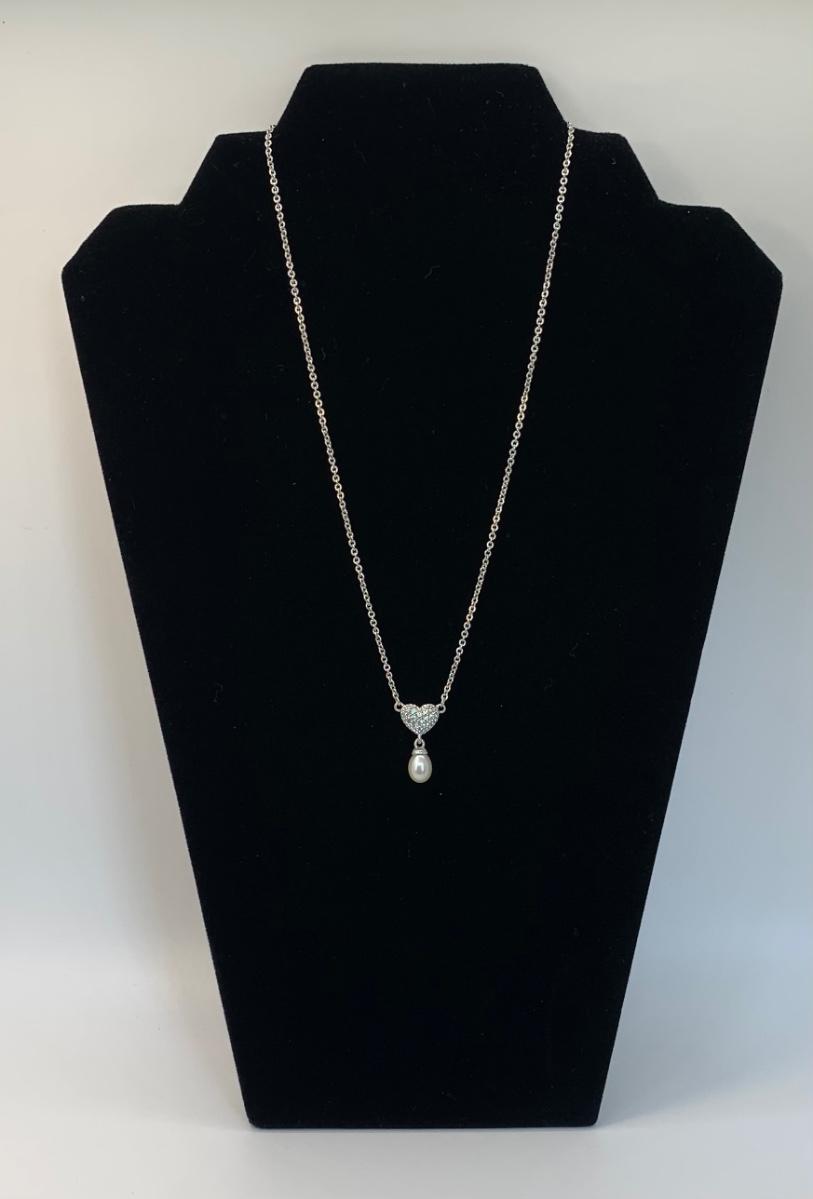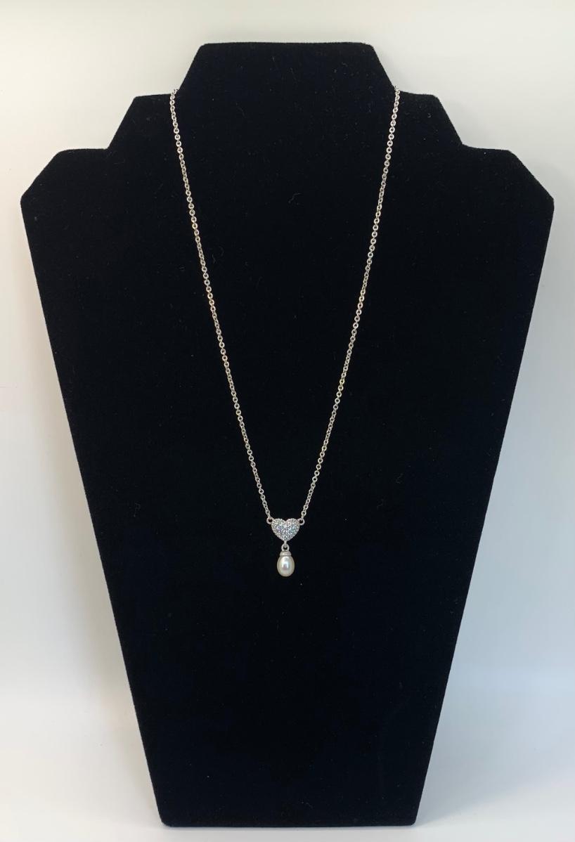 156:  925 Judith Ripka Sterling Silver 925 pavé CZ Heart And Pearl Drop Necklace