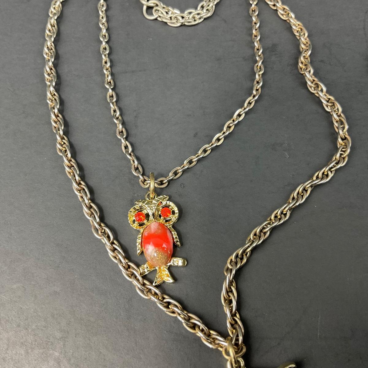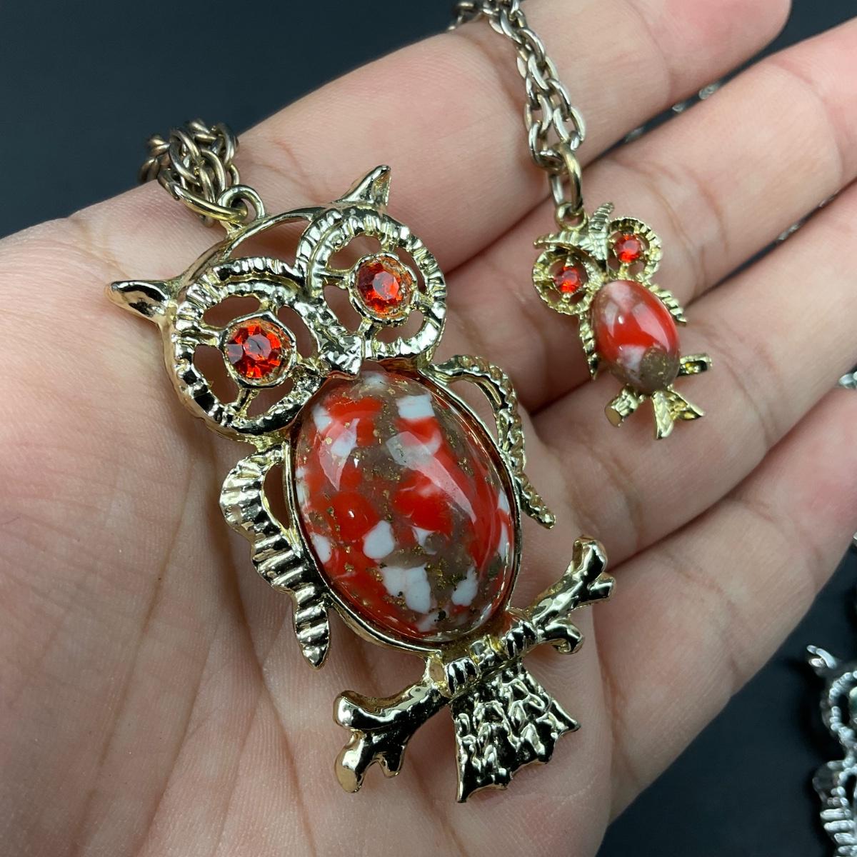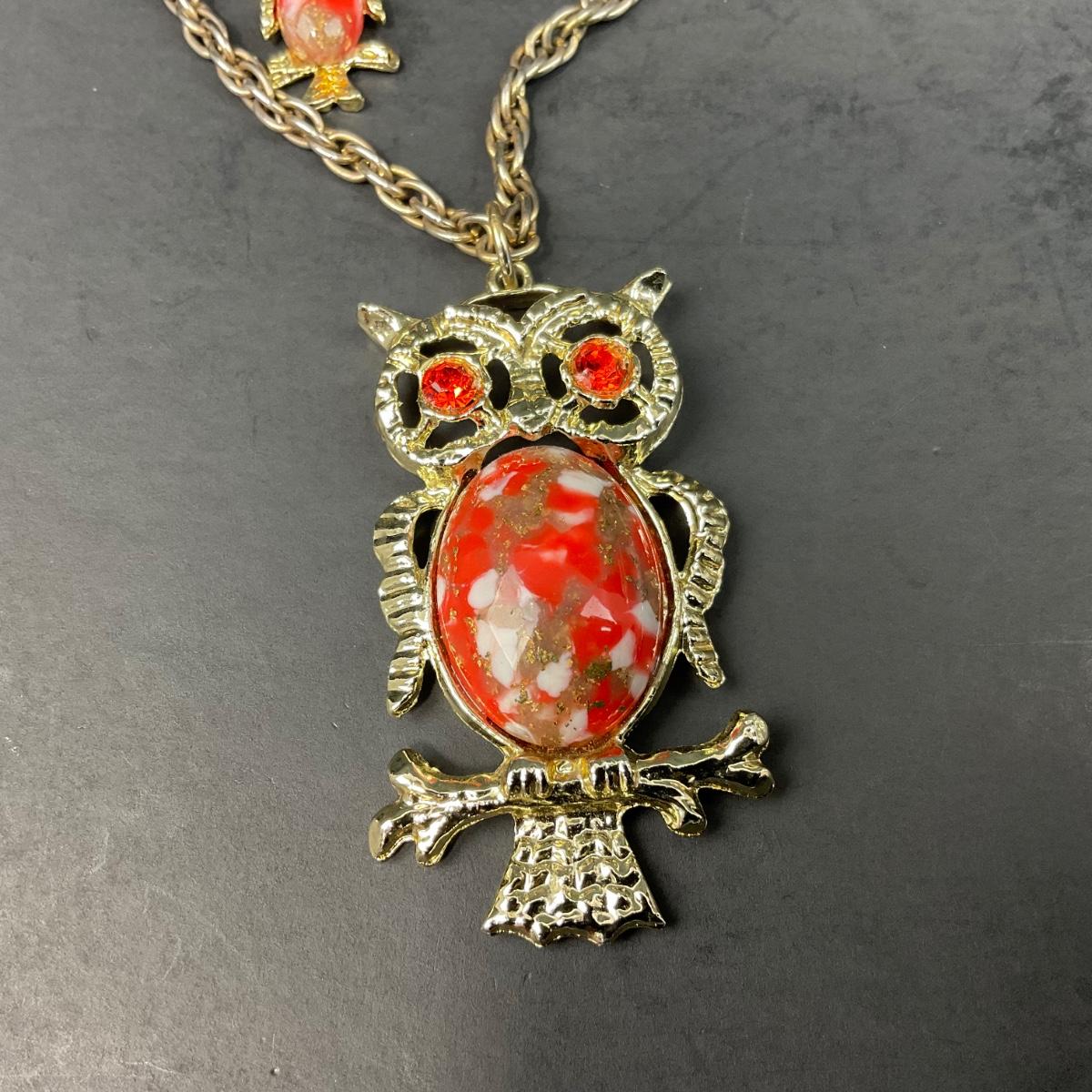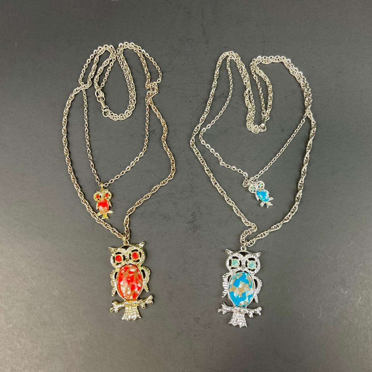 -156- COSTUME JEWELRY | 1950’s-1960’s Double Stranded Plastic Jelly Belly Owl Pendants