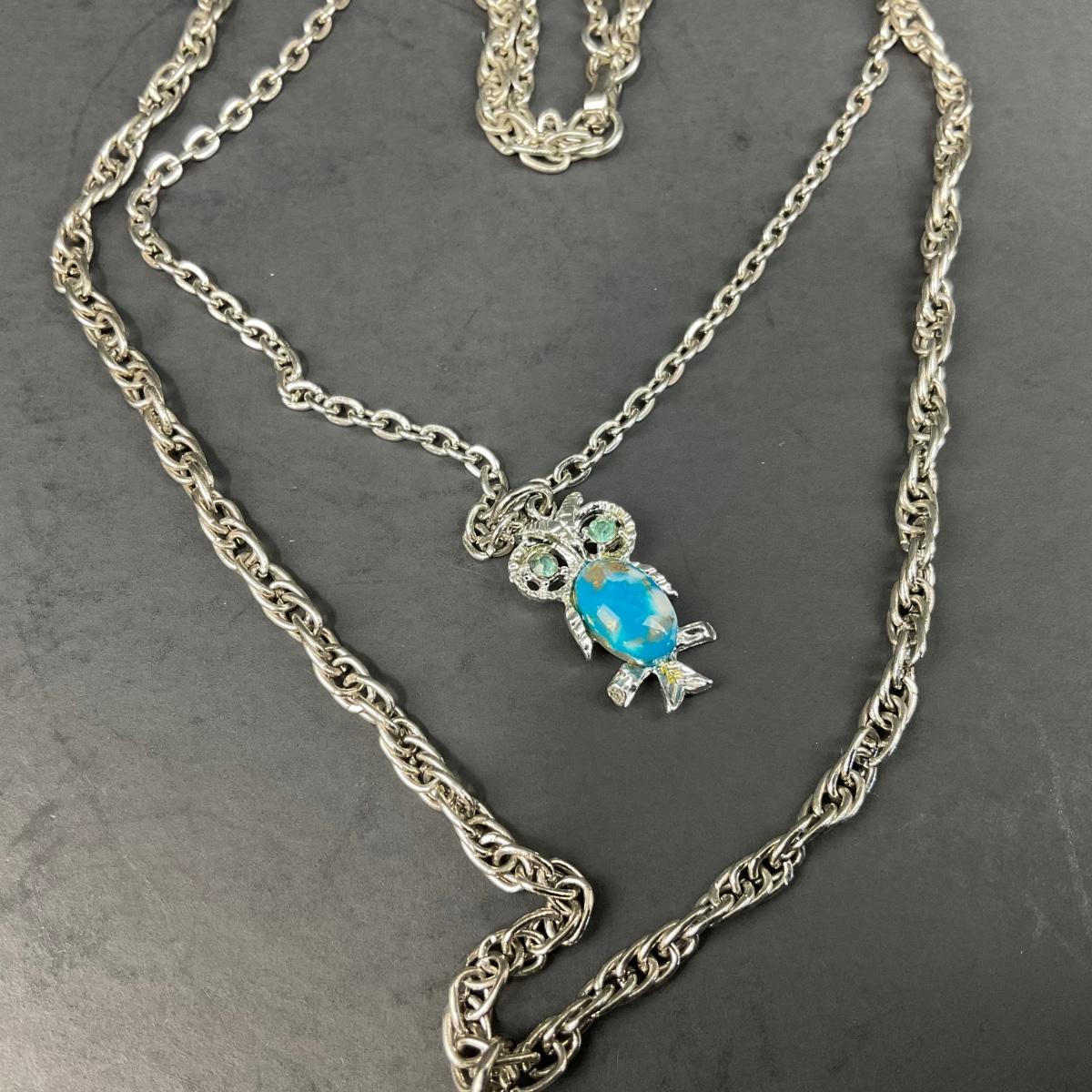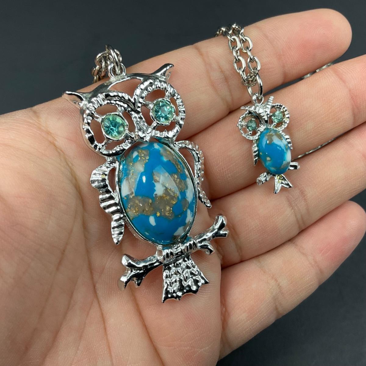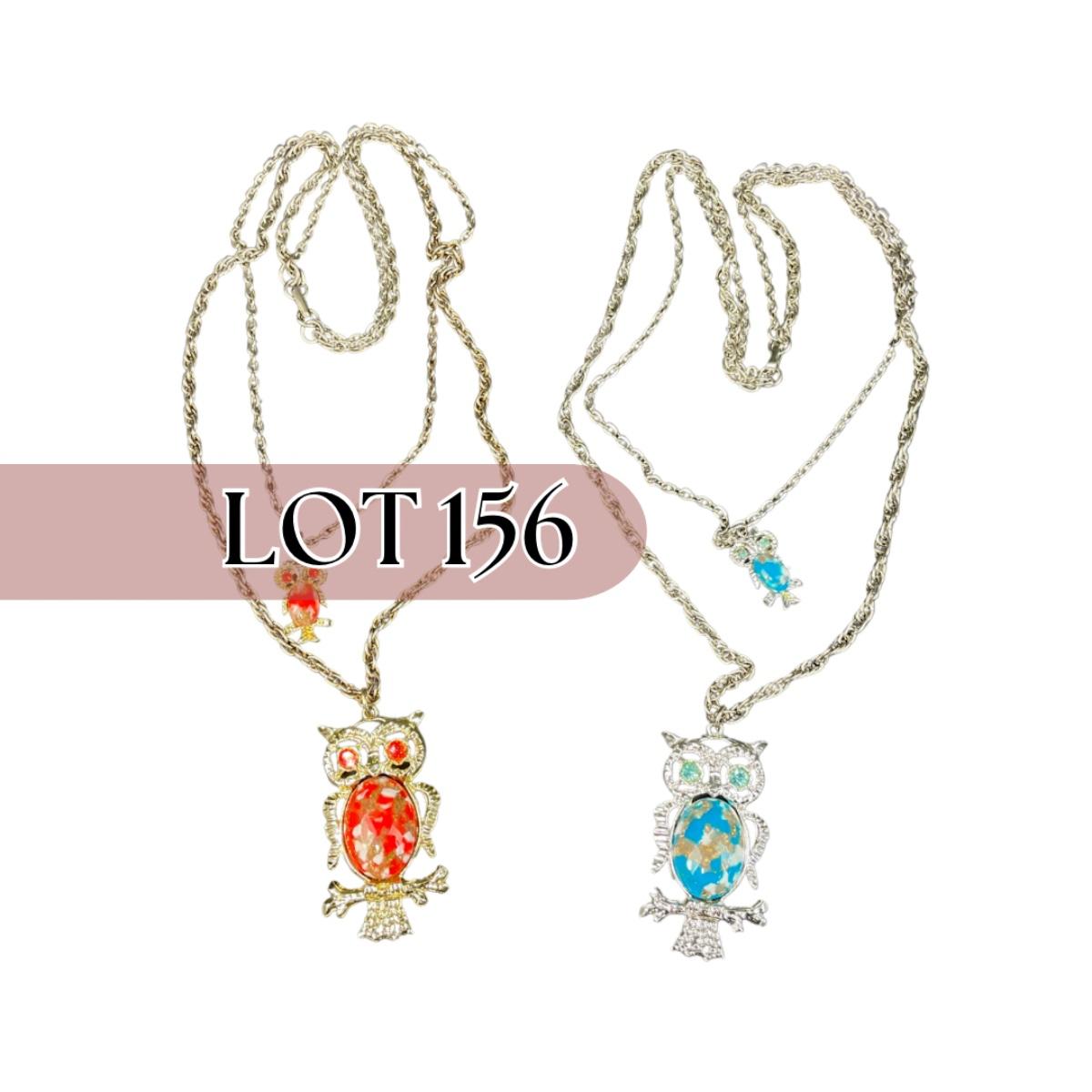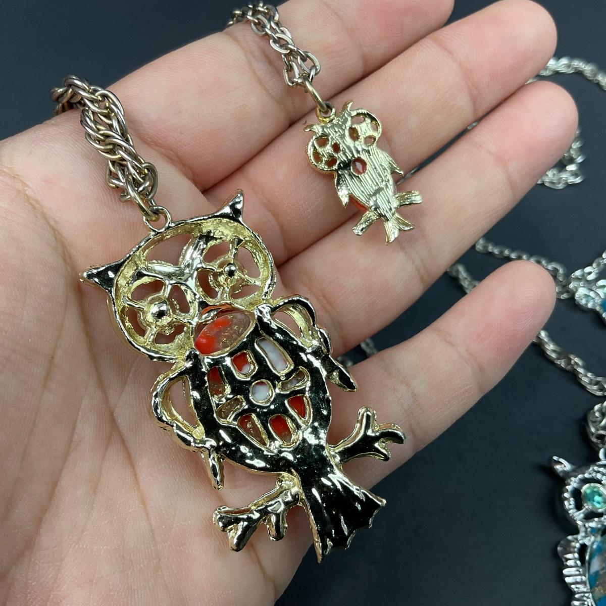 -156- COSTUME JEWELRY | 1950’s-1960’s Double Stranded Plastic Jelly Belly Owl Pendants