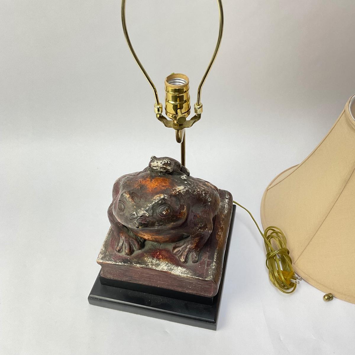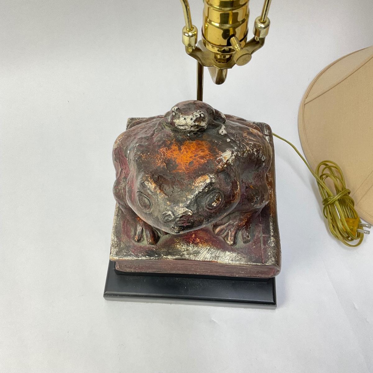 058 Large And Small Frogs Stacked On Books Lamp