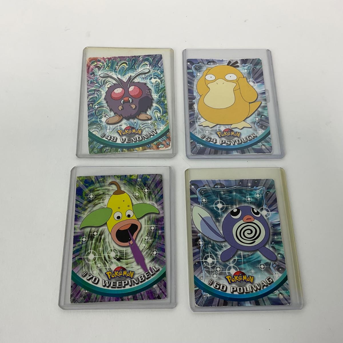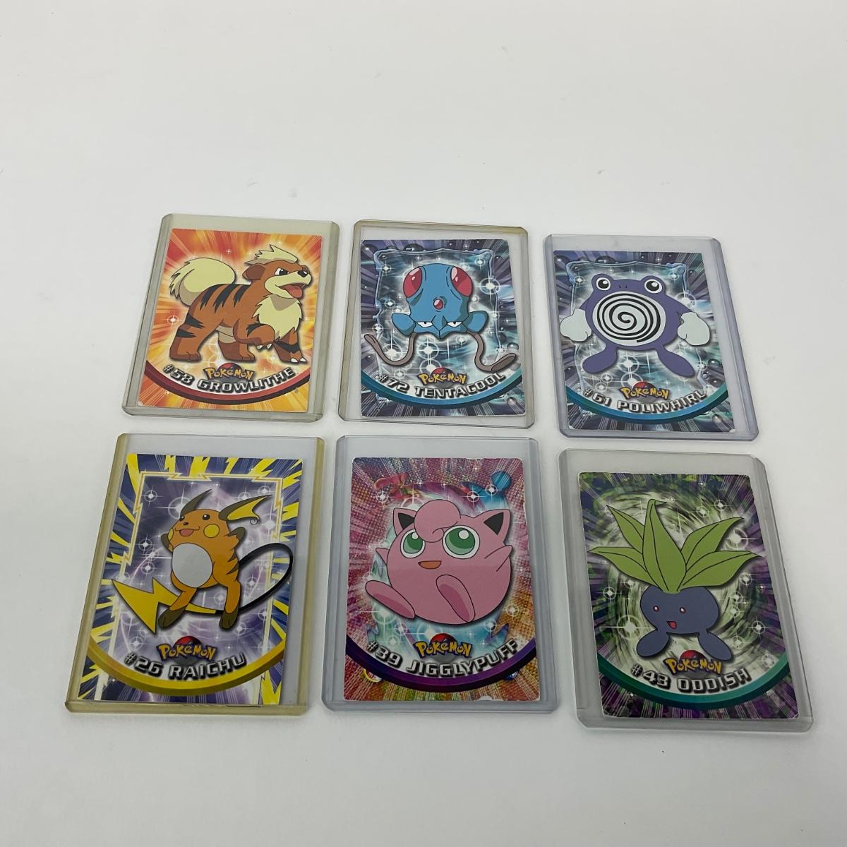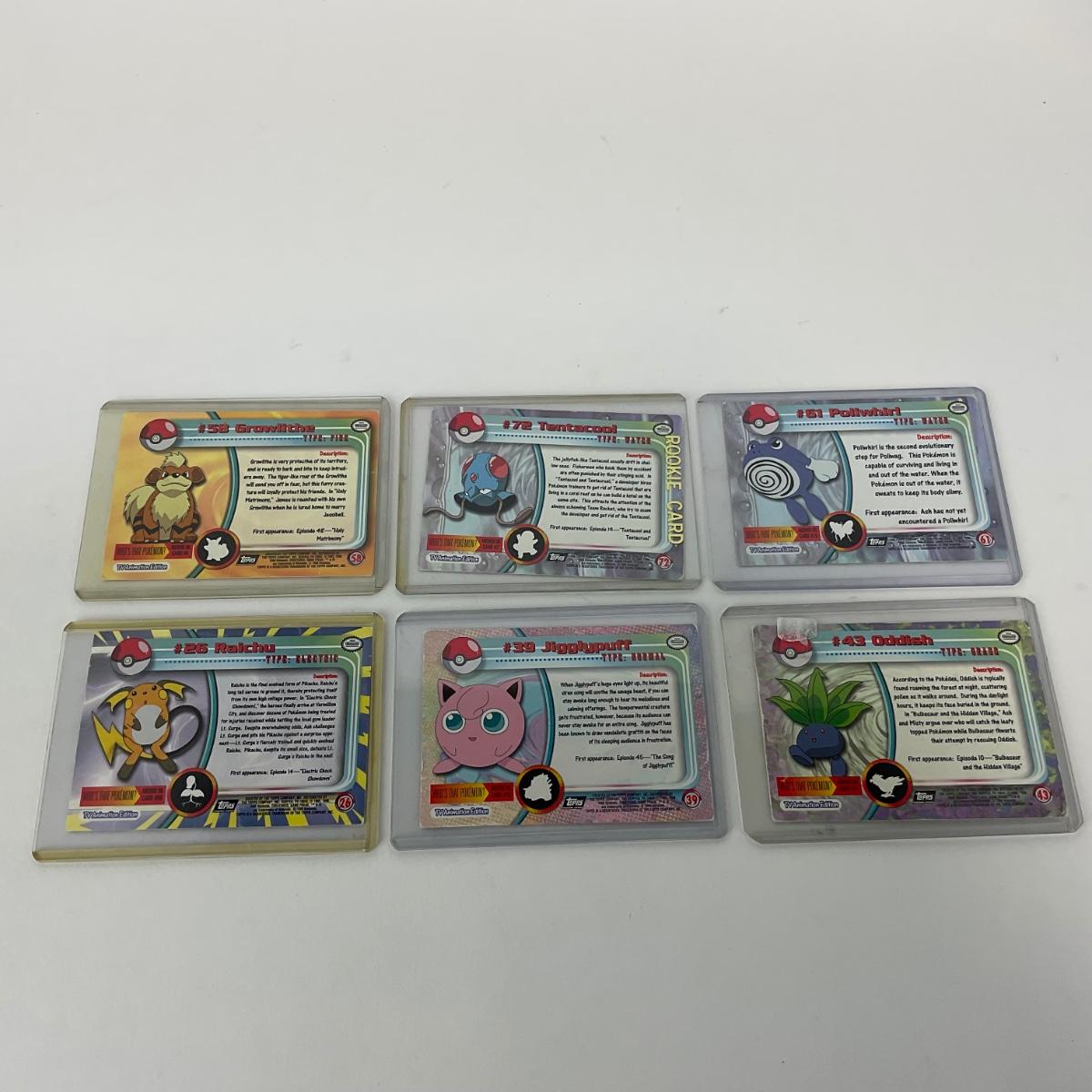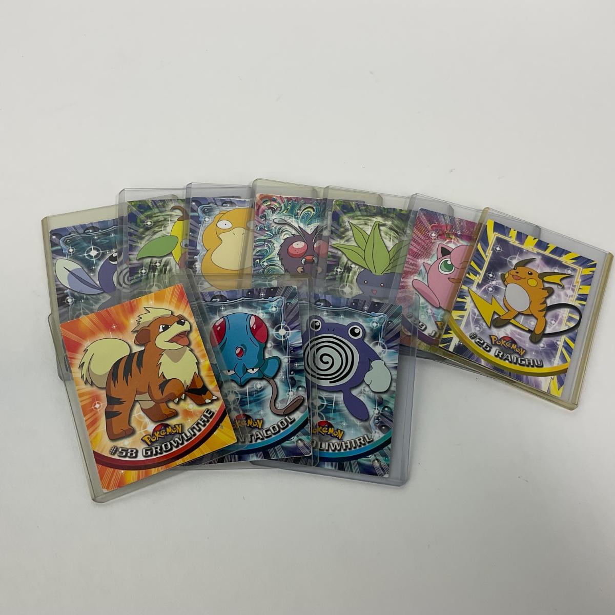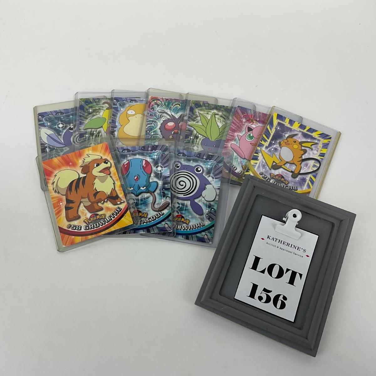 Ten vintage 1999 Topps Pokémon cards in plastic sleeves. Please see photos for details and condition. ::: Shipping is available on this lot. If you require shipping you must let us know at the close of the auction. We will coordinate with you after the item has been won. Shipping fees will include insurance up to or exceeding the value of all items being mailed. If you have any questions regarding this lot please contact the auctioneer either via this website, by direct email or by phone. PICK UP TIMES and other important information can be found in the TERMS and DESCRIPTION of the auction. Please take a look for pertinent information. Thanks!
