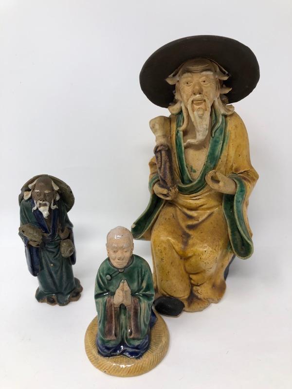Three Vintage Chinese Mud Men, large Mud Man is 6 inches Tall