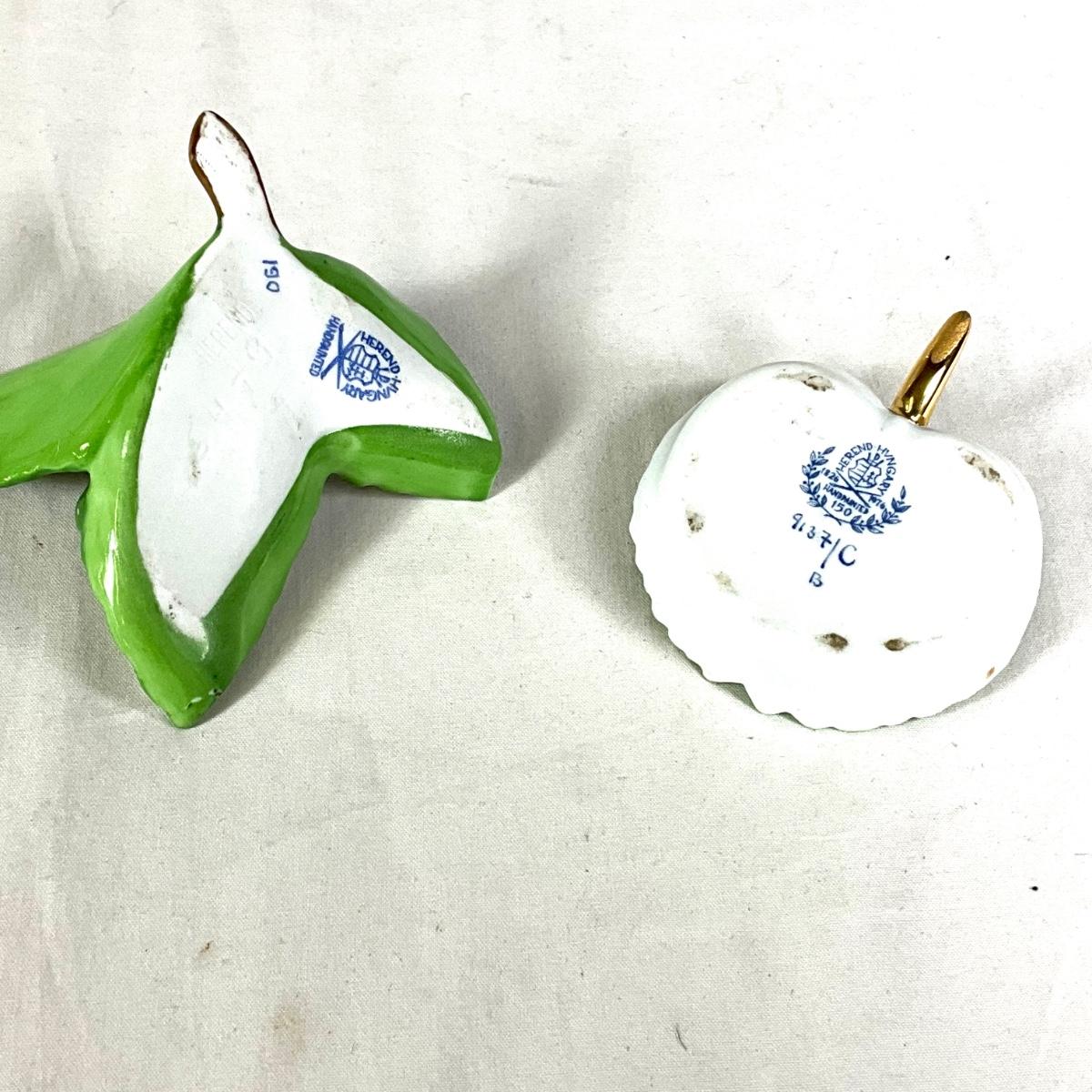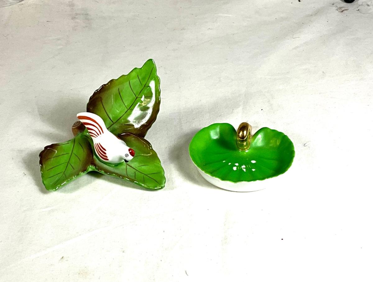 1561 Herend Bird on a Leaf Placecard Holder and Small Lily Pad Dish