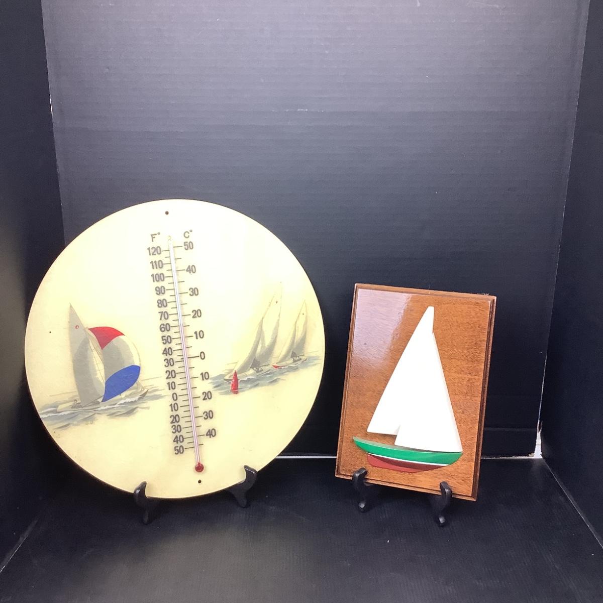 1561 Handmade Half Boat Model with Sailing Wall Thermometer