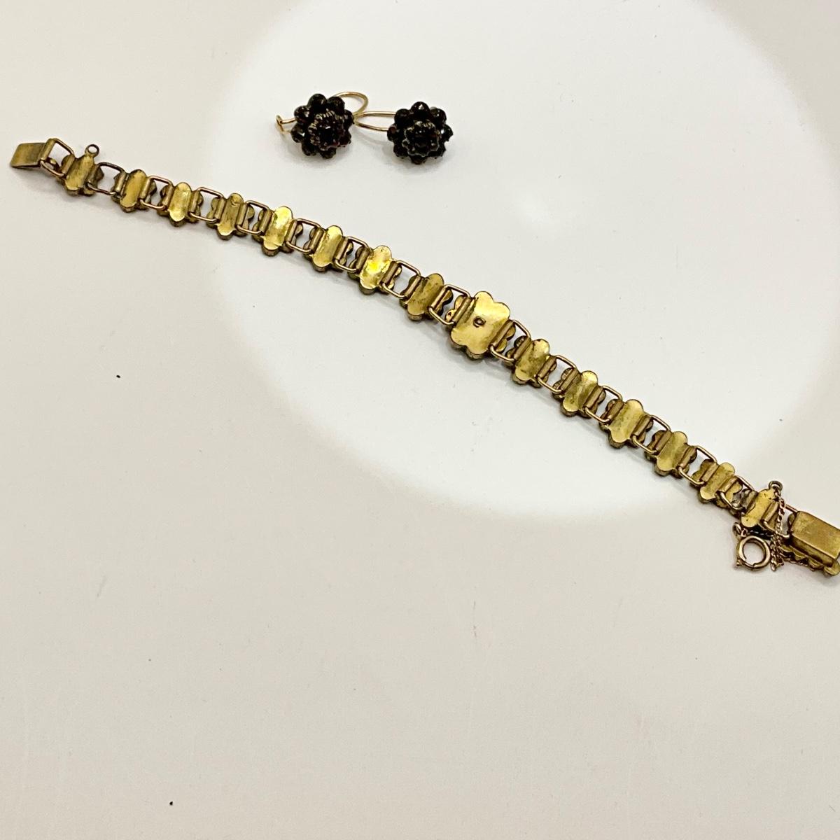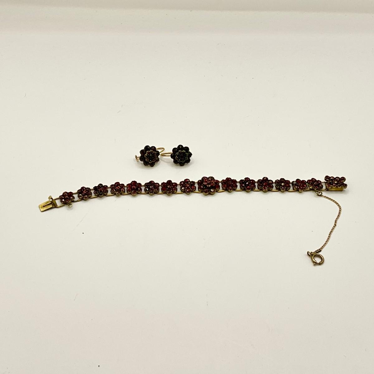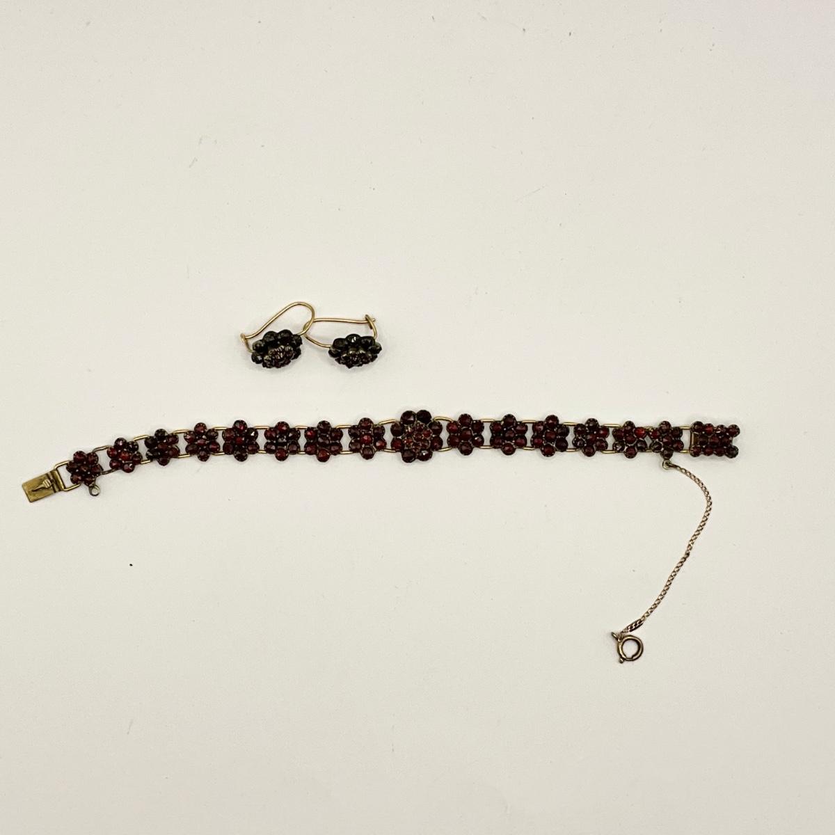 1568 Antique Gold Plated Garnet Bracelet with Matching Earring Set