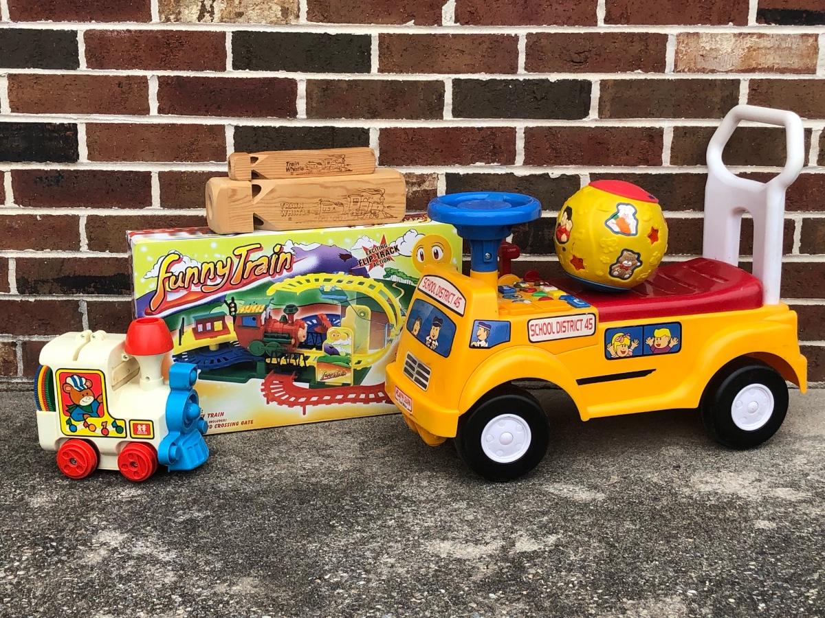 LOT156M: Tek Nek Toys School Bus, VTech Baby Ball, Funny Train & More