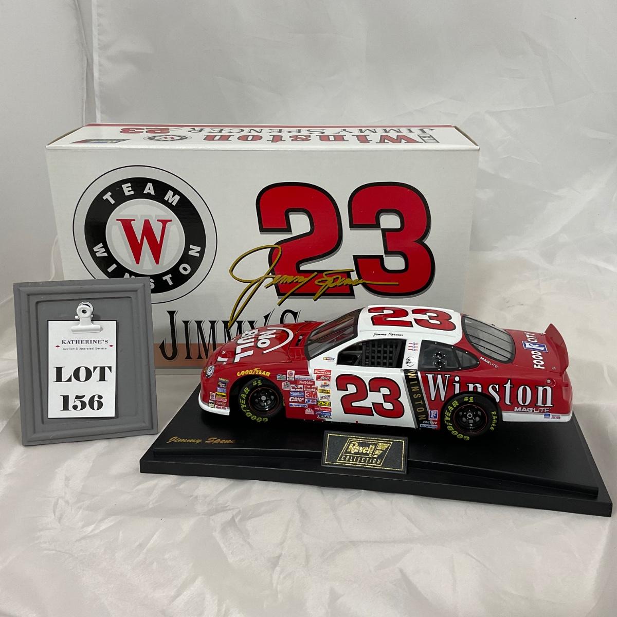 One NASCAR die cast 1:18 scale 1999 Team Winston Ford Taurus figure. Driver Jimmy Spencer. Comes with a Certificate of Authenticity. Please see photos for details and condition. ::: Shipping is available on this lot. If you require shipping you must let us know at the close of the auction. We will coordinate with you after the item has been won. Shipping fees will include insurance up to or exceeding the value of all items being mailed. If you have any questions regarding this lot please contact the auctioneer either via this website, by direct email or by phone. PICK UP TIMES and other important information can be found in the TERMS and DESCRIPTION of the auction. Please take a look for pertinent information. Thanks!