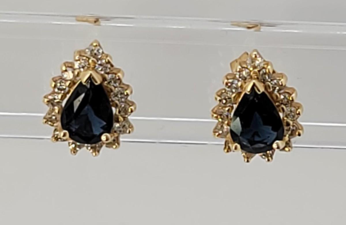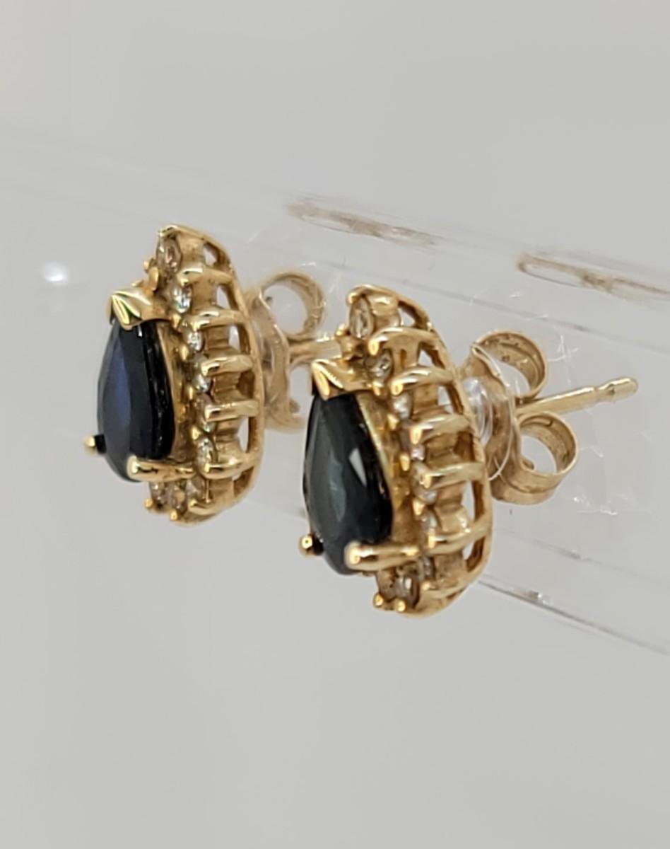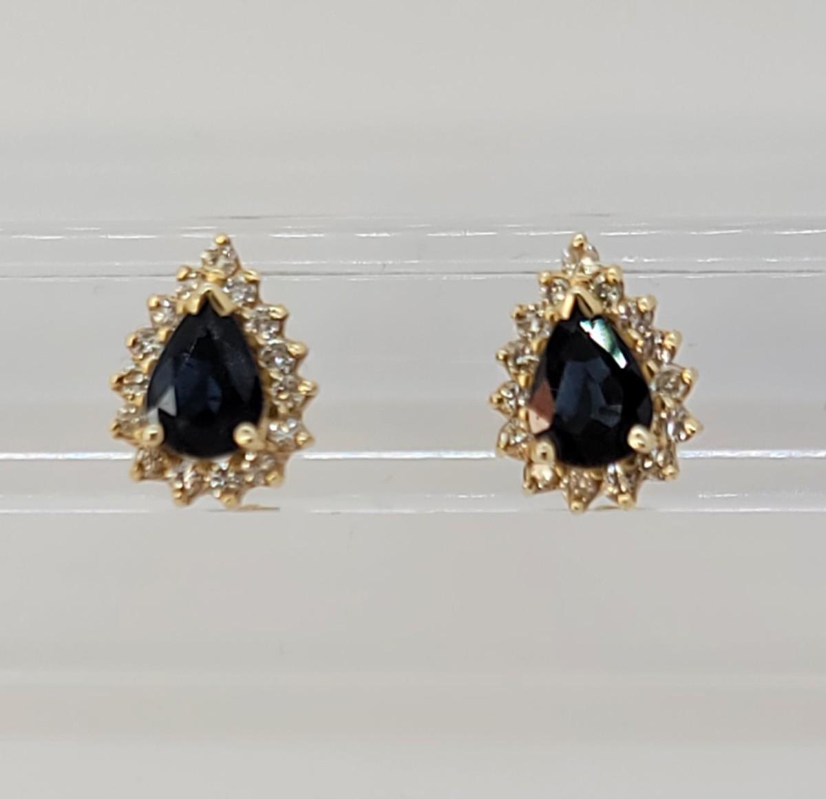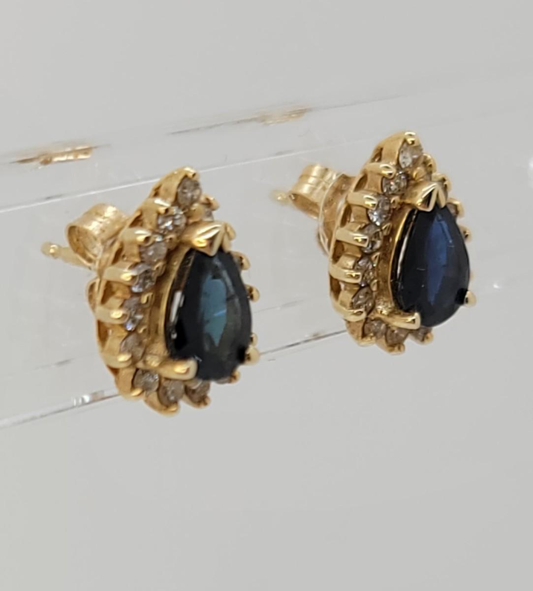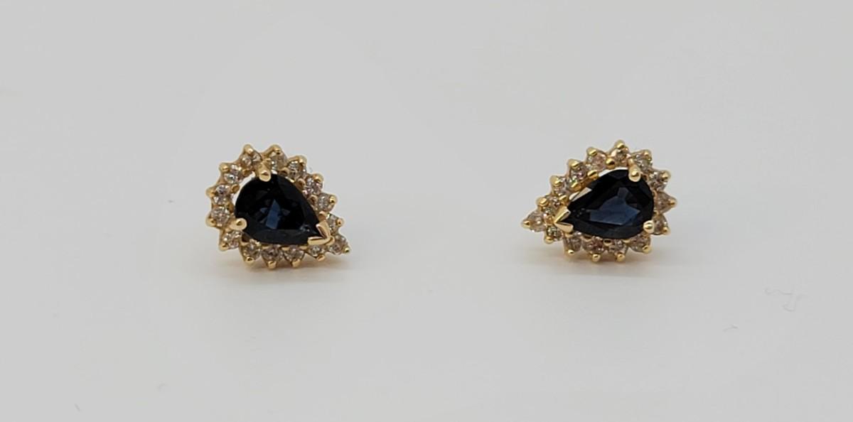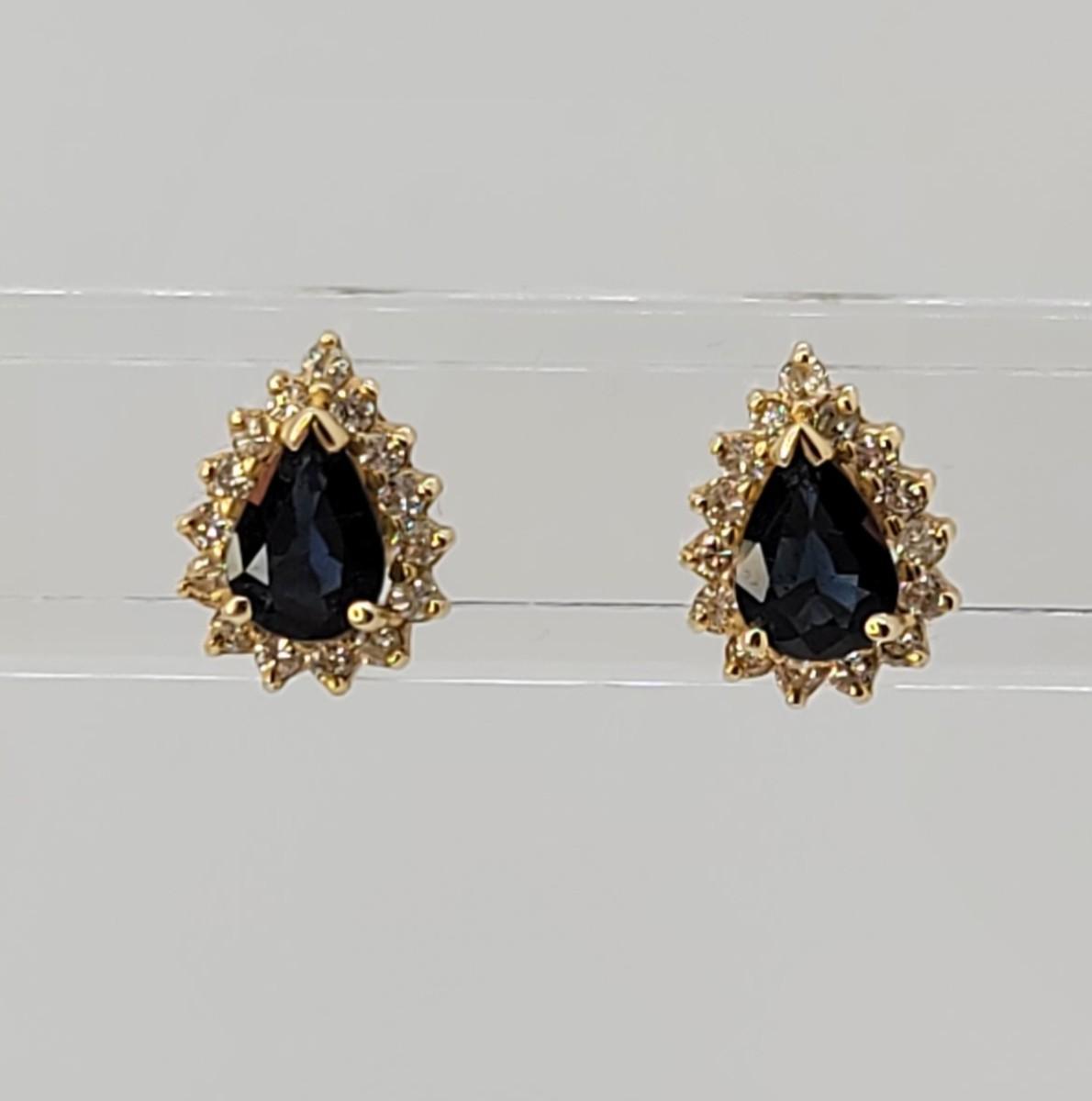 2.5g 14k Diamonds and Blue Sapphire Yellow gold pierced post earrings