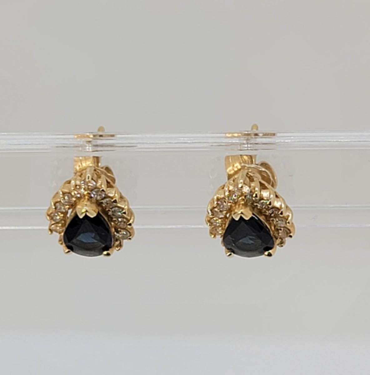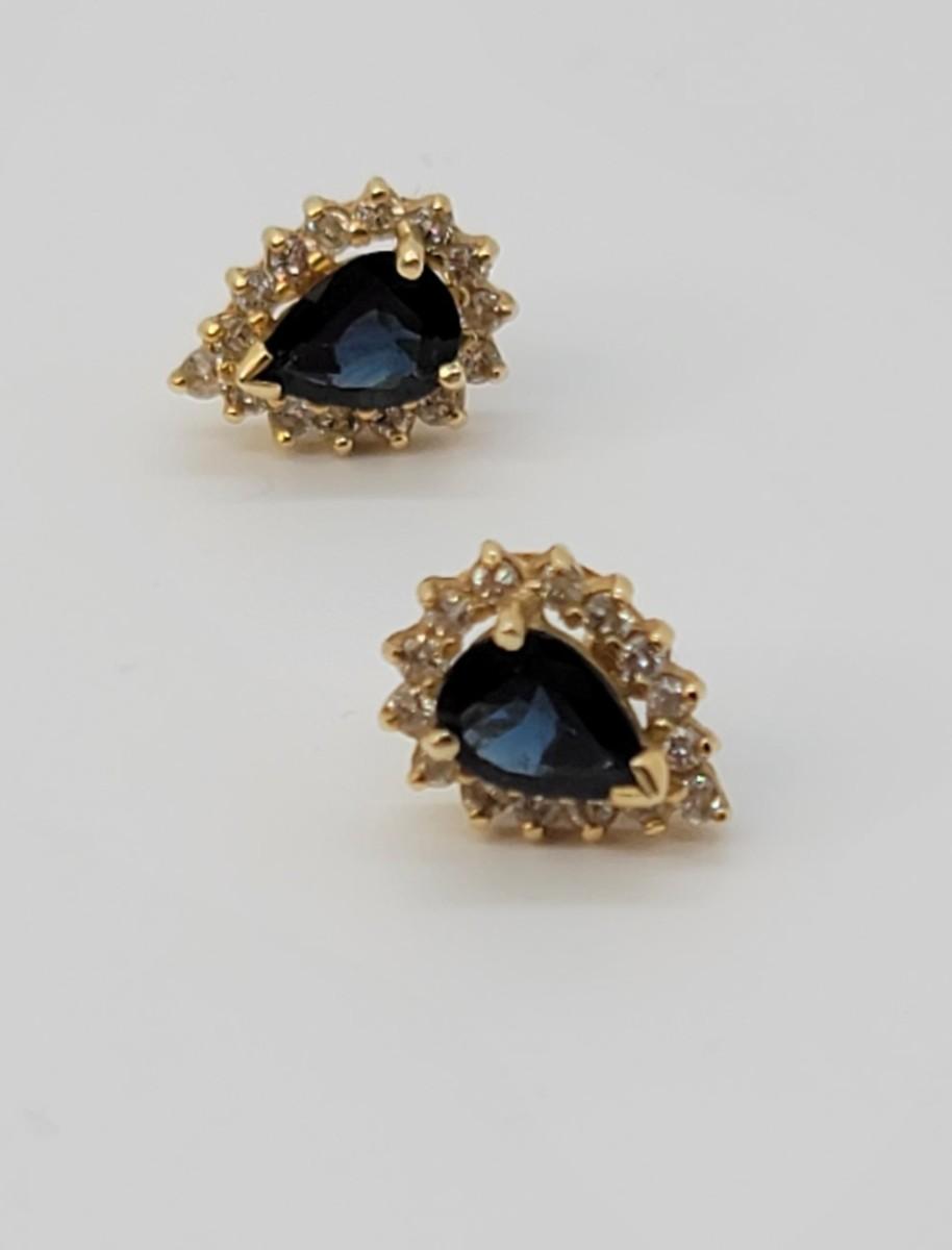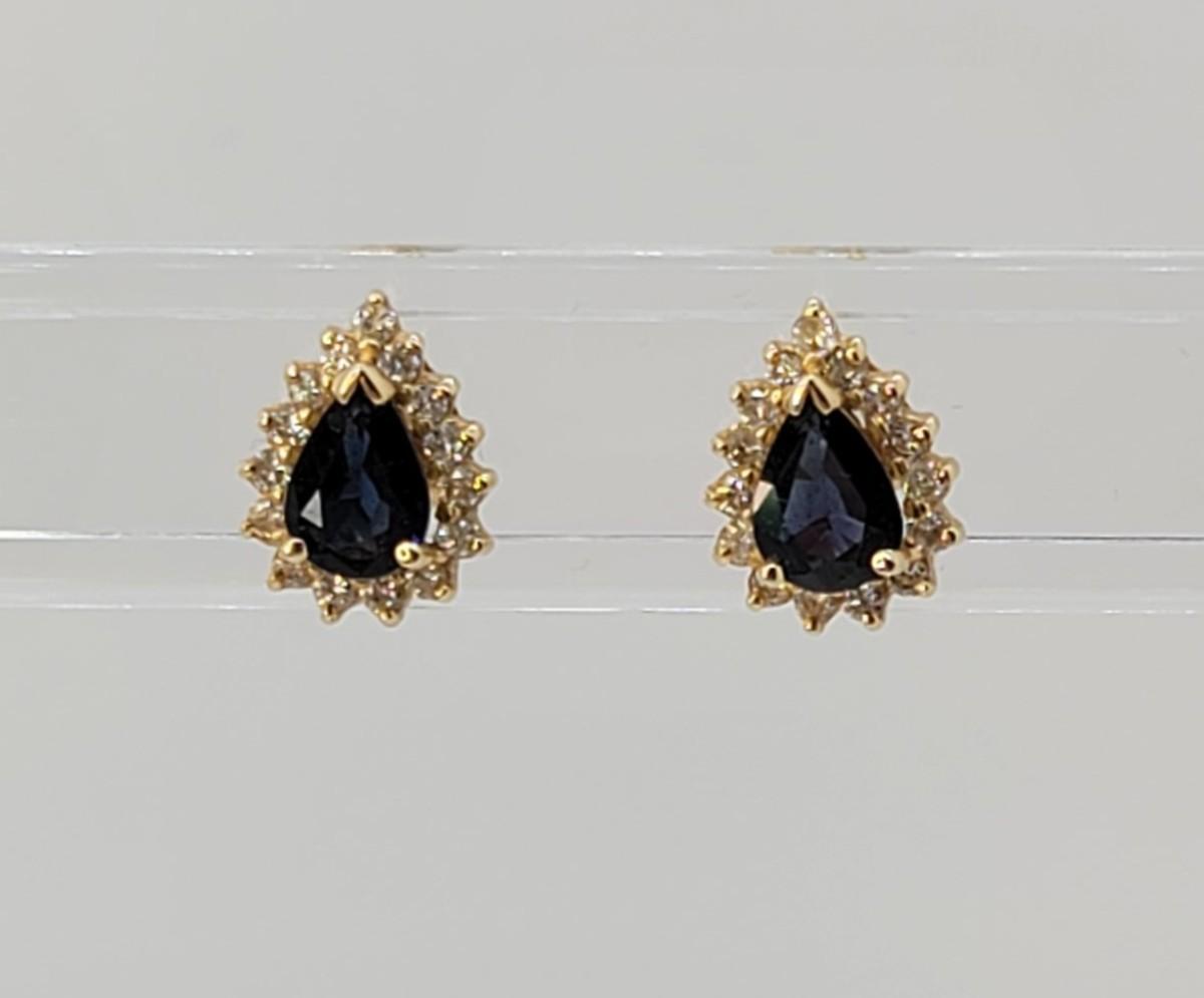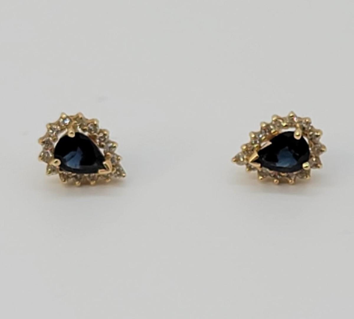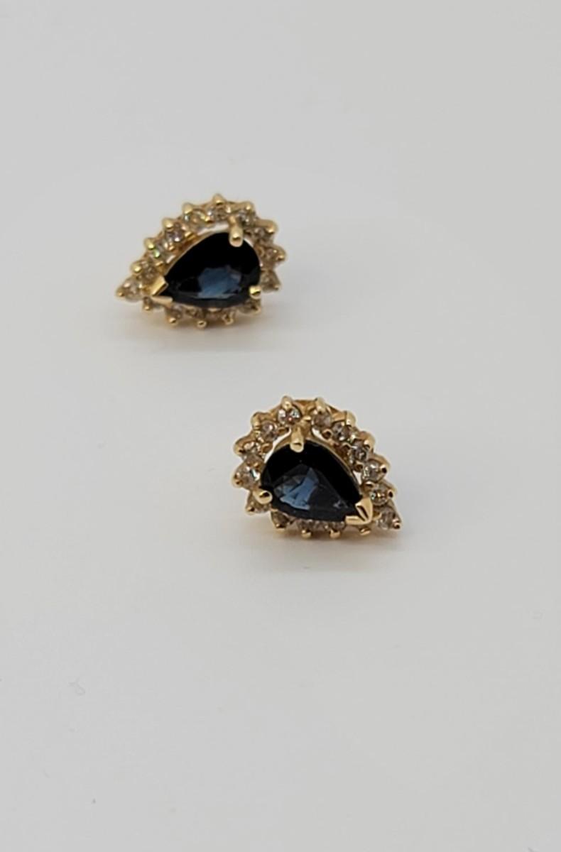 2.5g 14k Diamonds and Blue Sapphire Yellow gold pierced post earrings