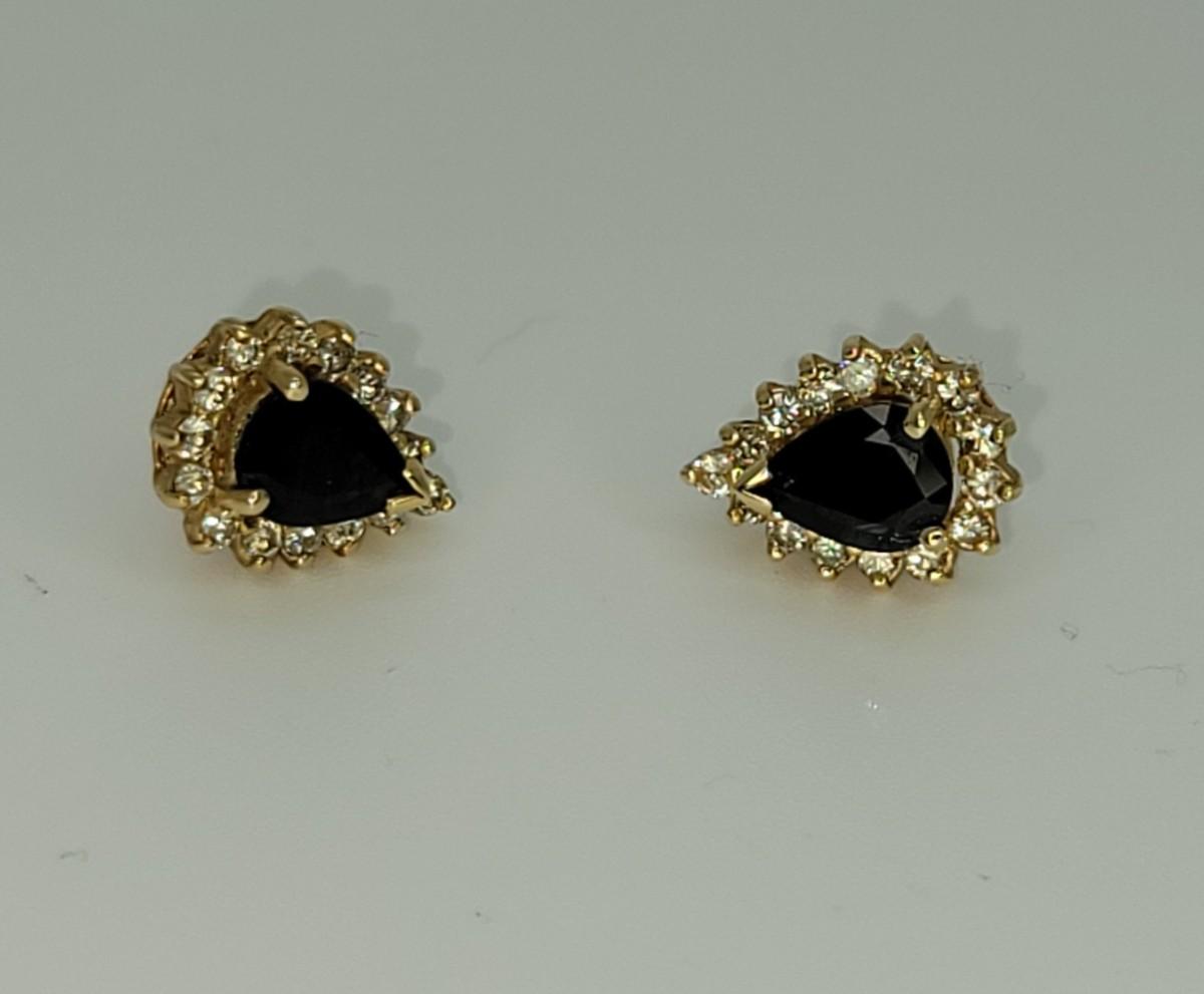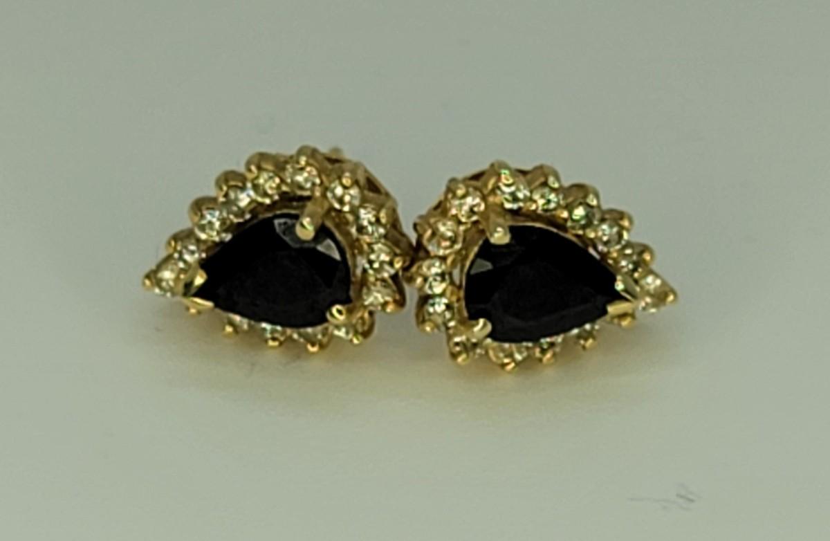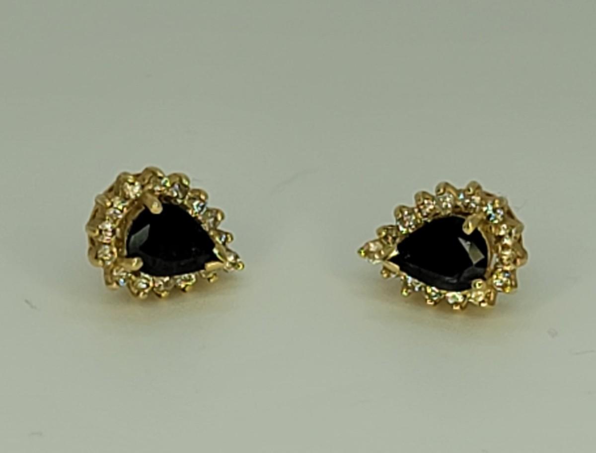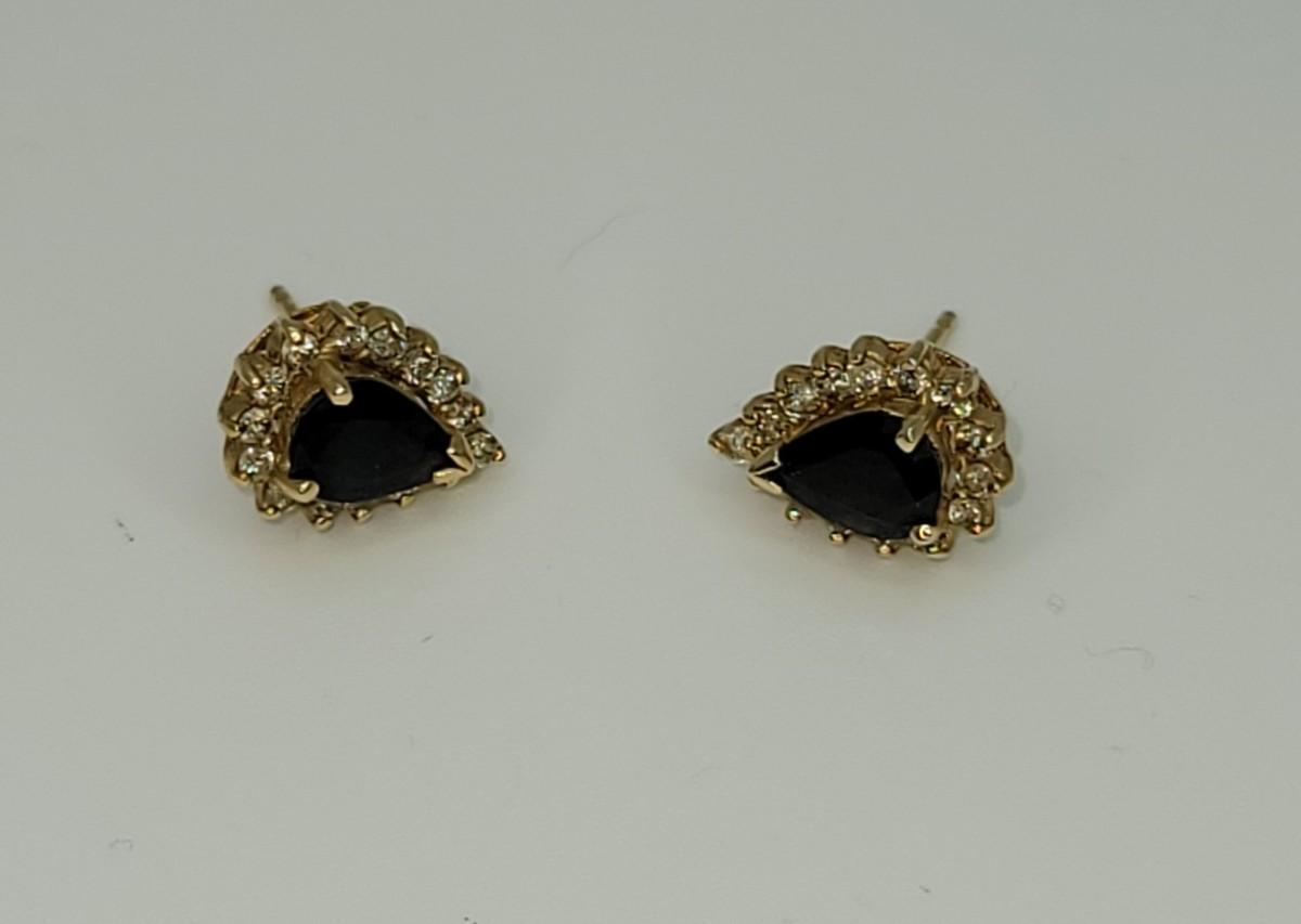 157: 2.5g 14k Diamonds and Blue Sapphire Yellow gold pierced post earrings