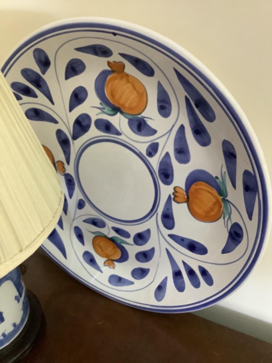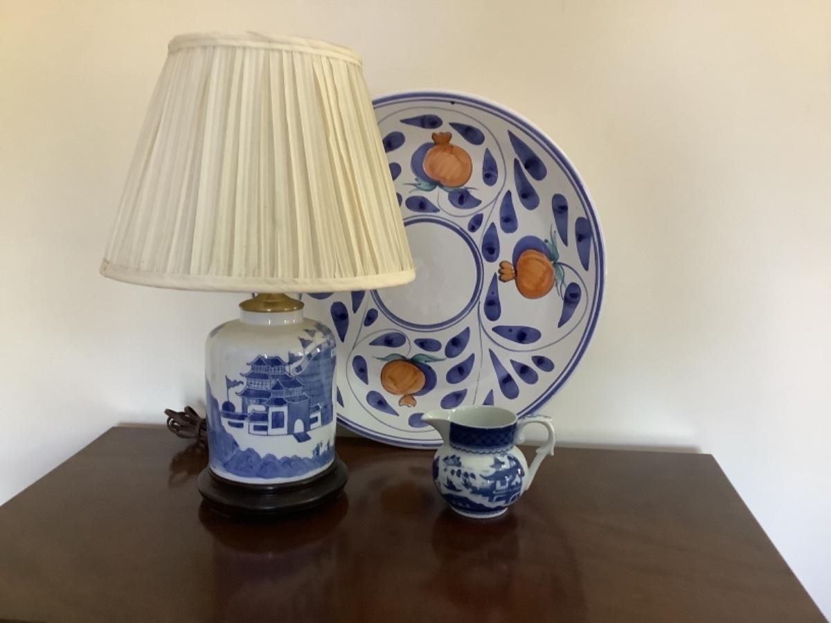 157  Asian Blue & White Porcelain Lamp/ Mottahedeh Pitcher/Italian Charger