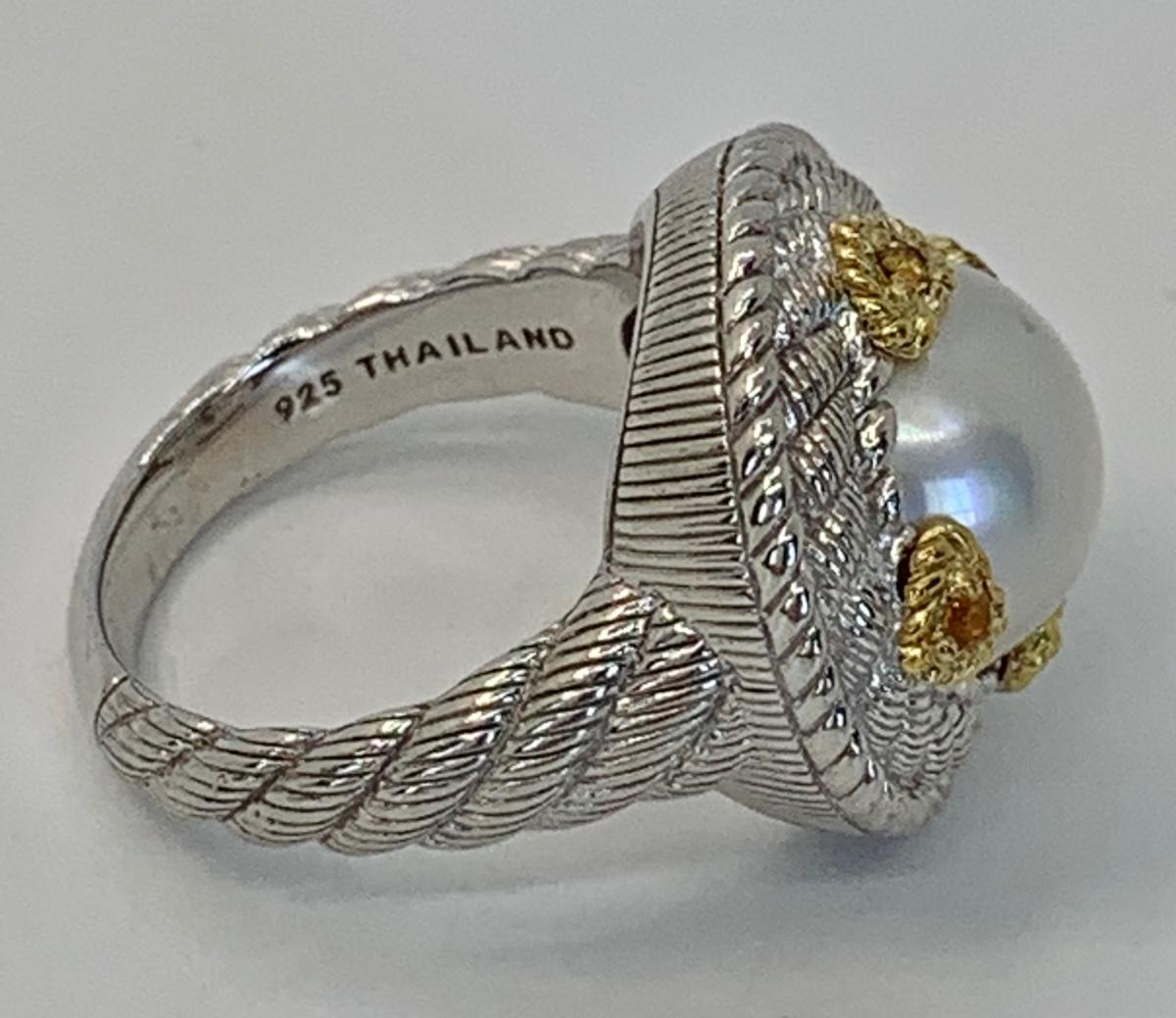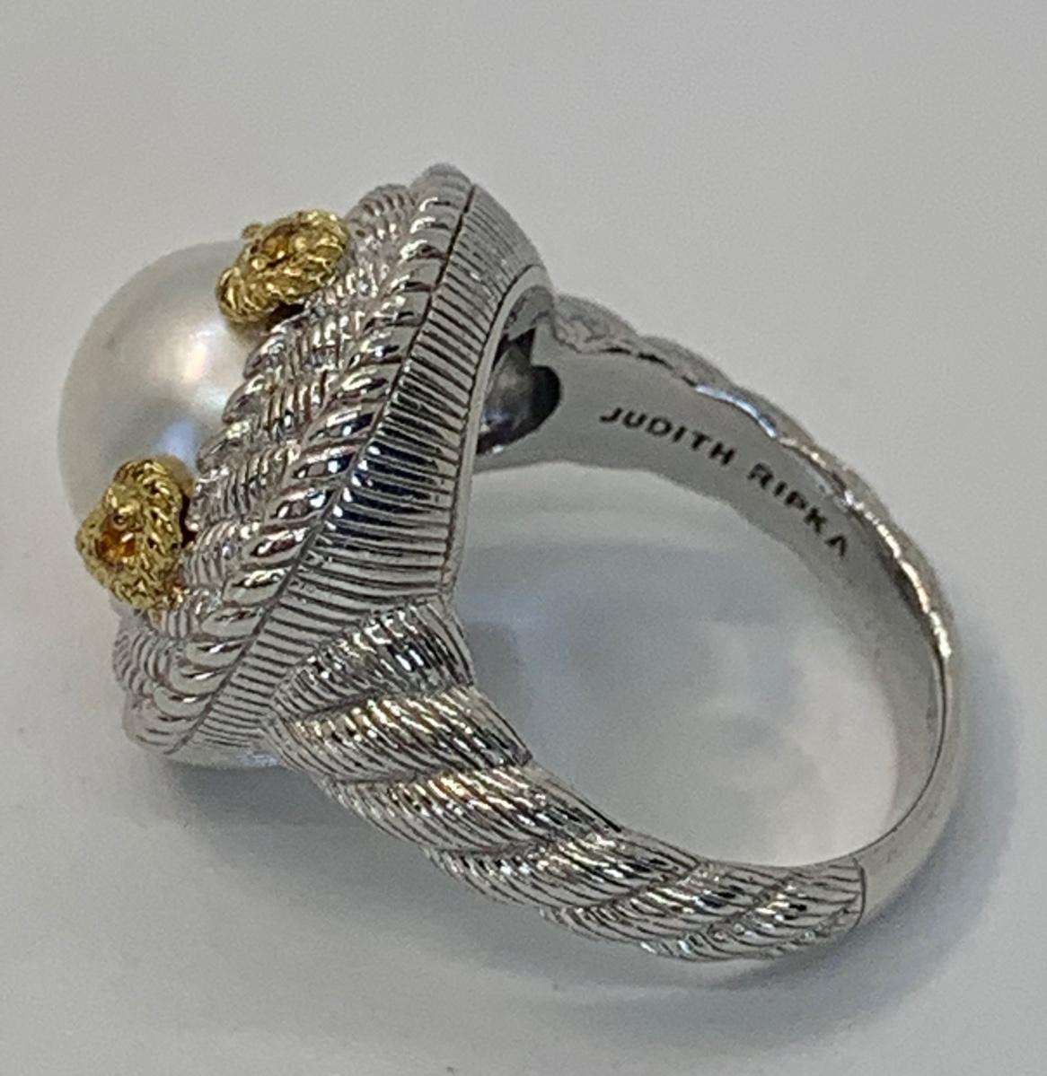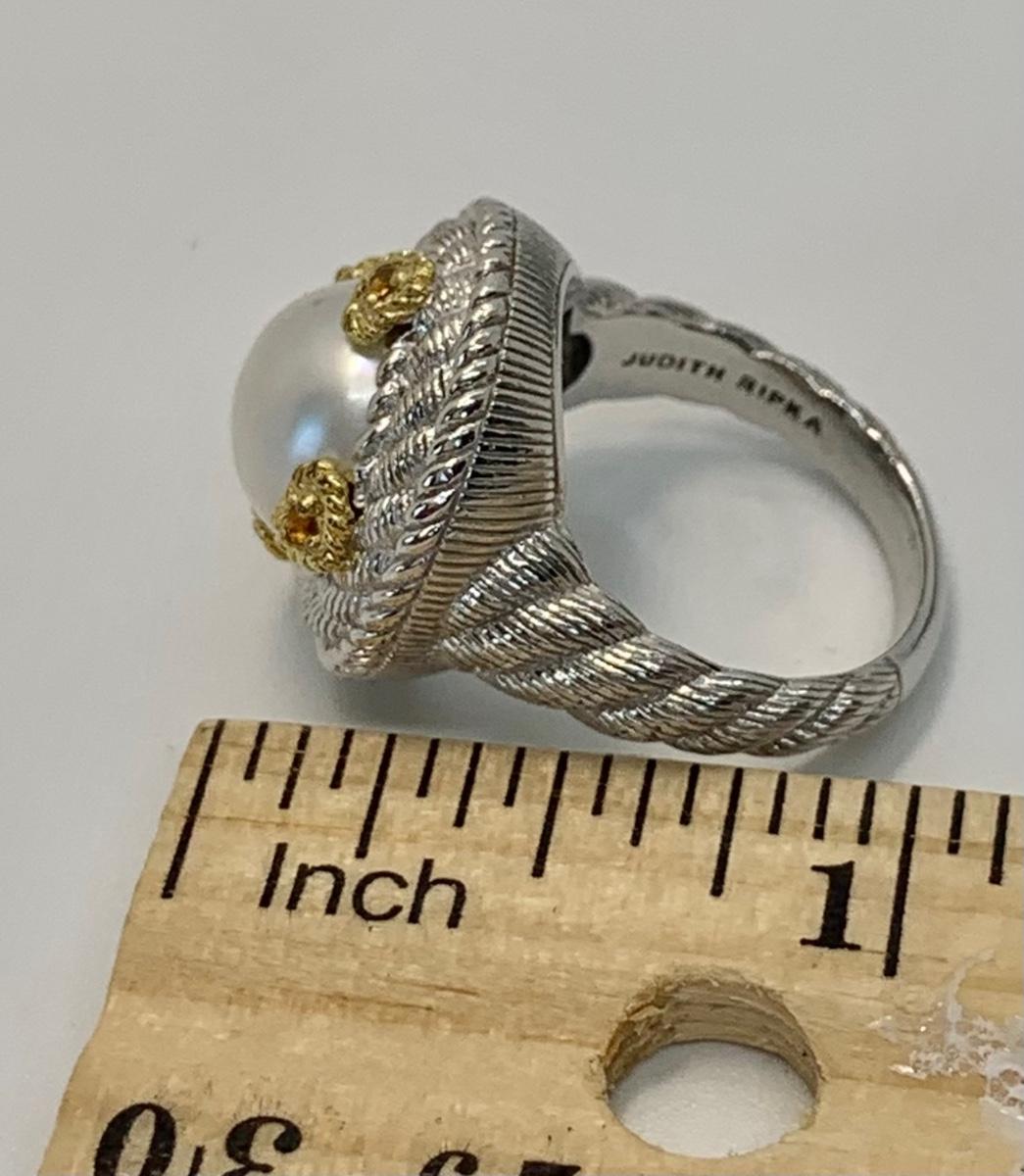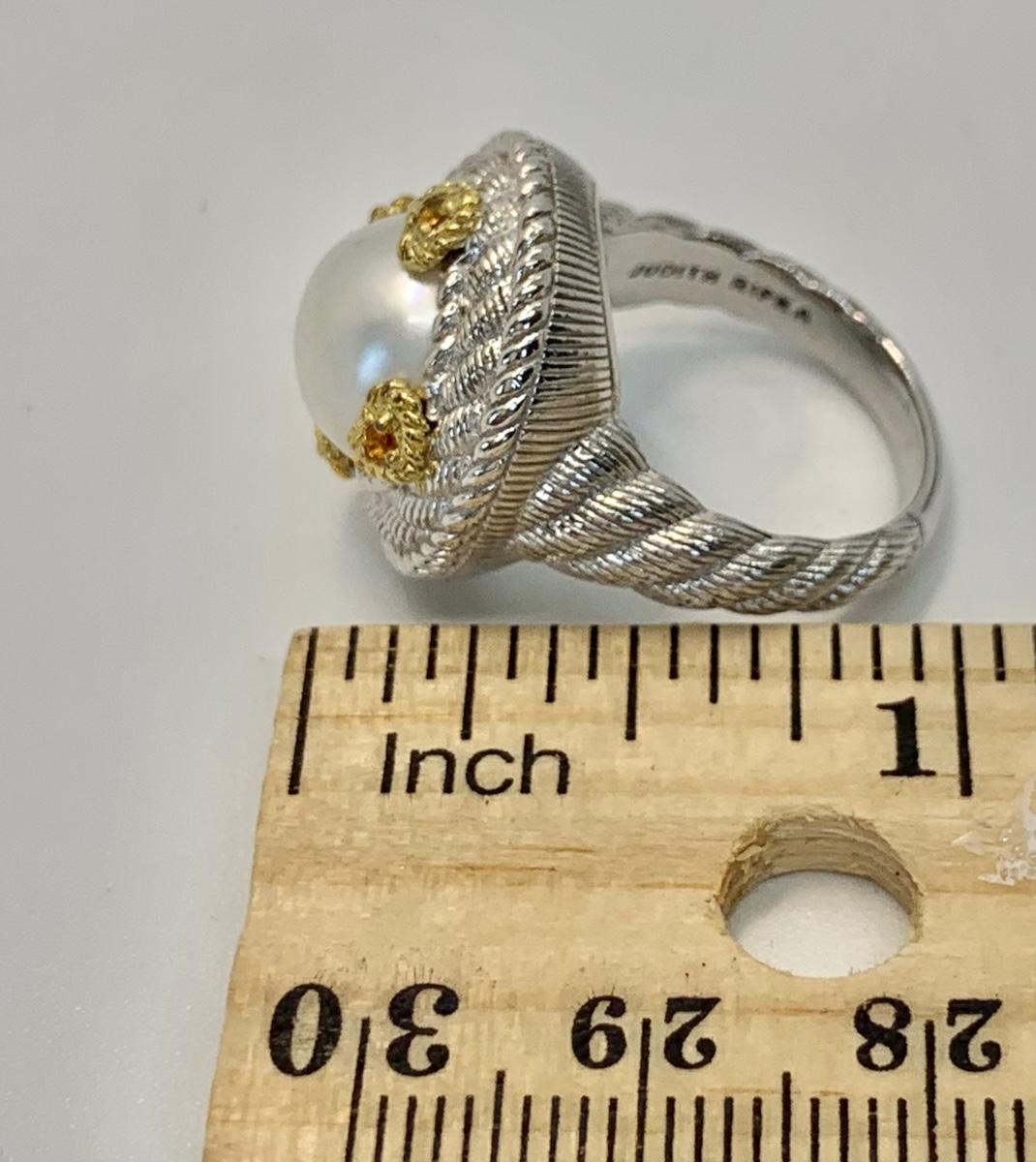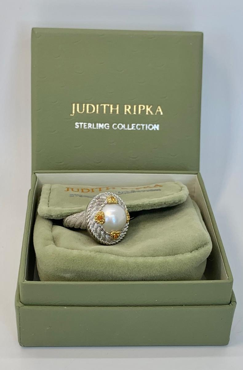 157: New in box Judith Ripka 925 Sterling Silver and 14K clad white Cultured Mabe Pearl ring size 6