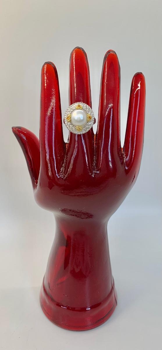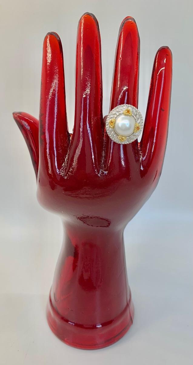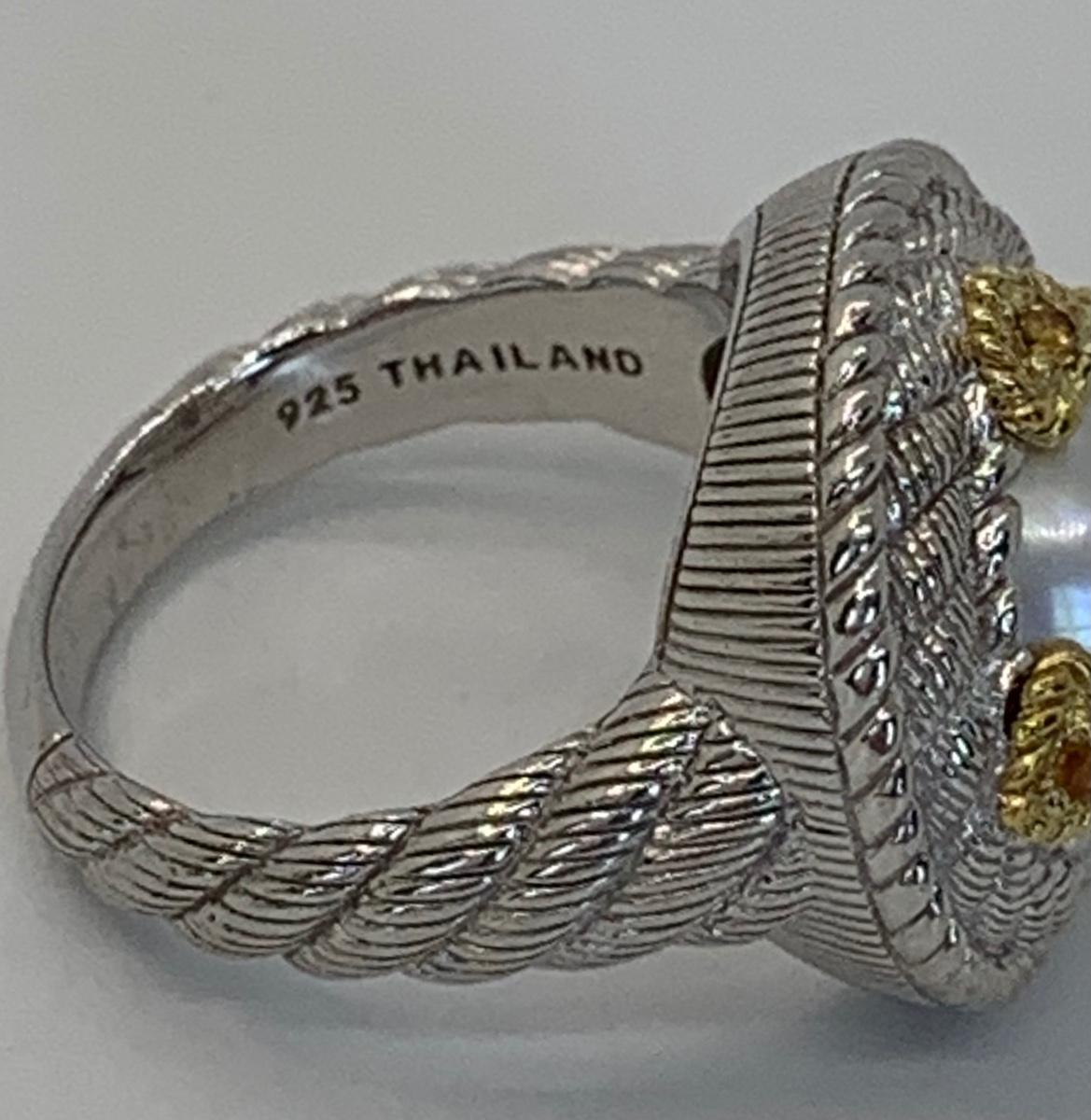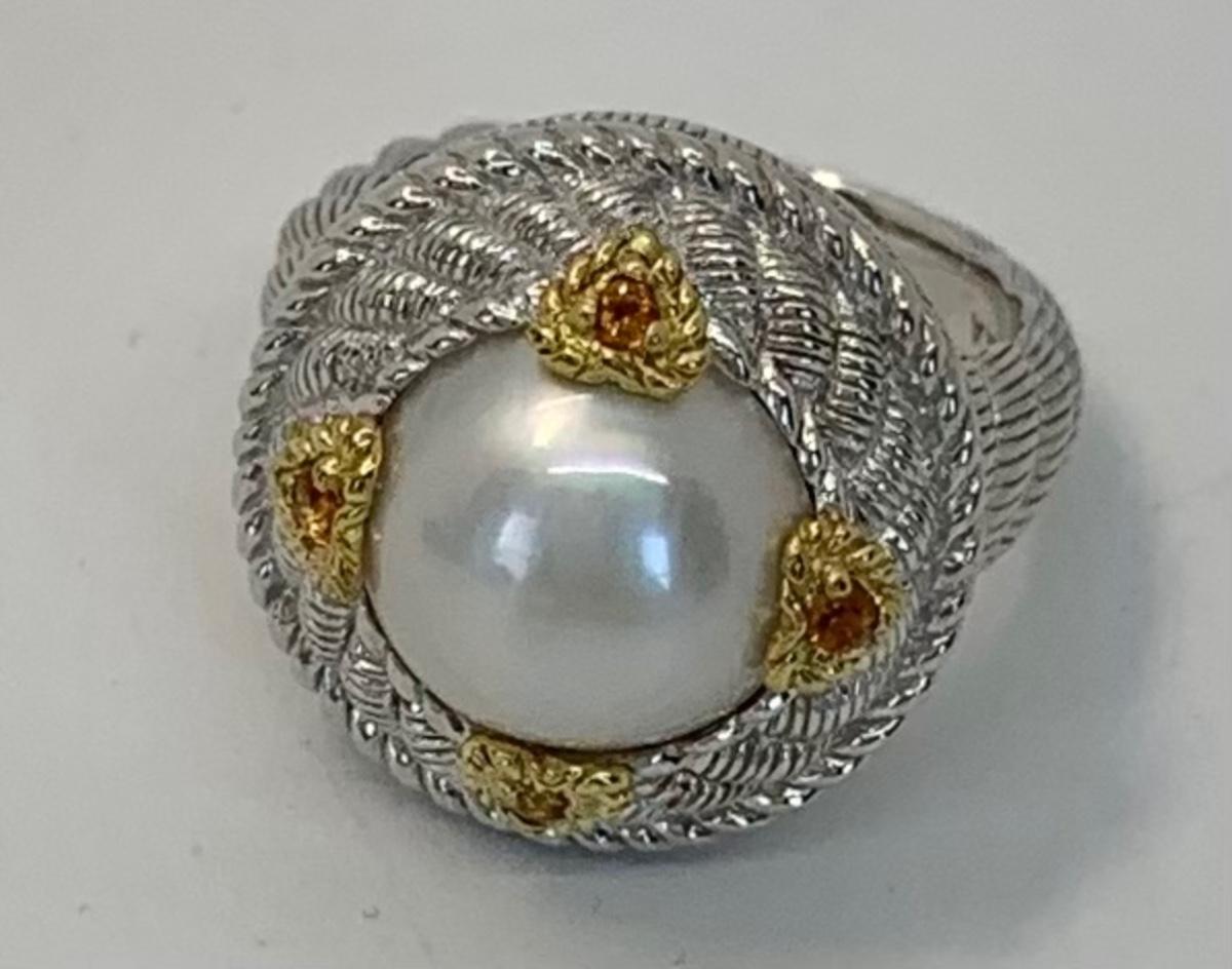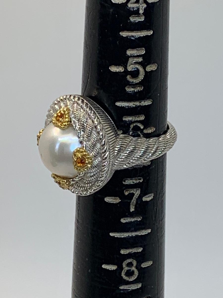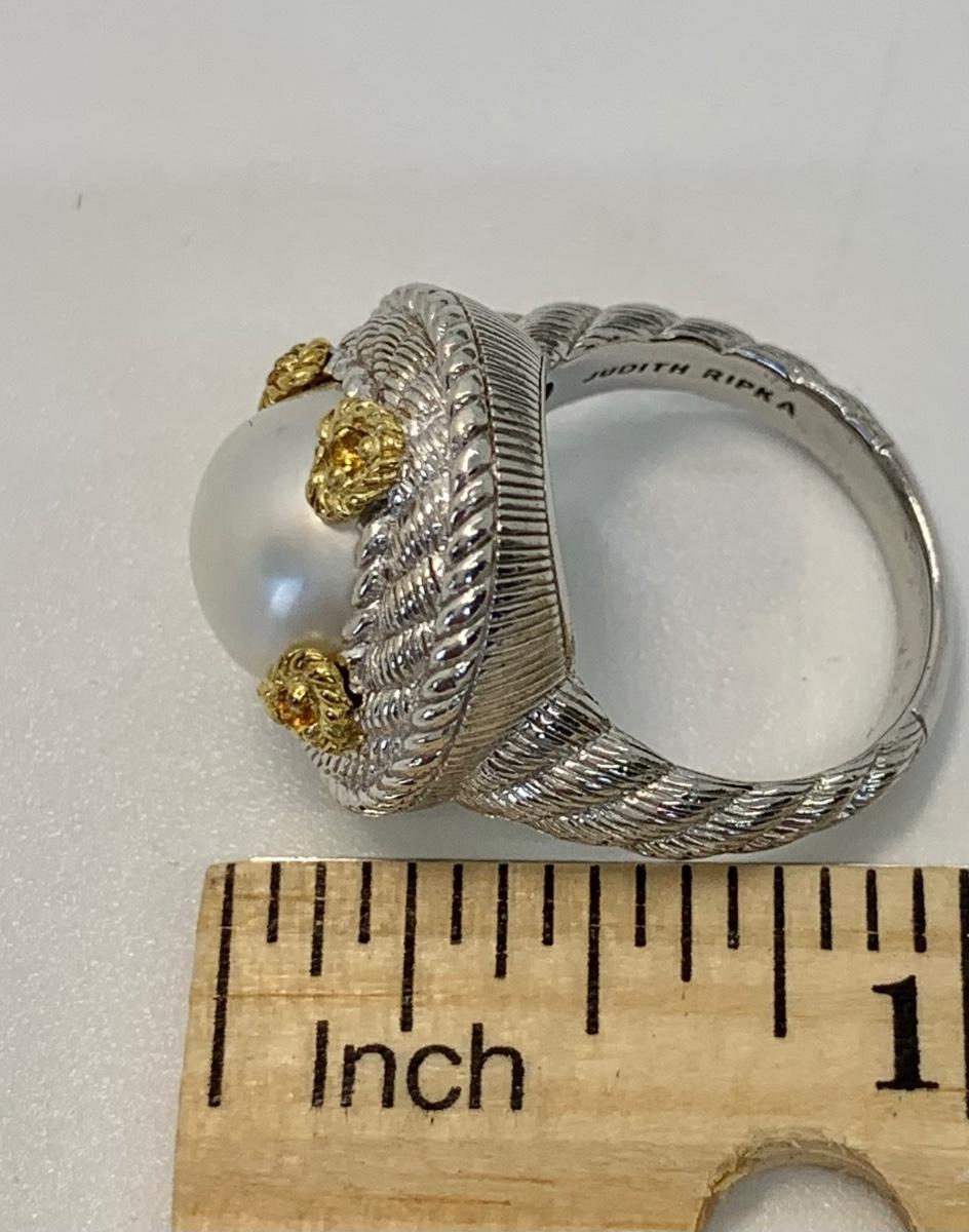 157: New in box Judith Ripka 925 Sterling Silver and 14K clad white Cultured Mabe Pearl ring size 6