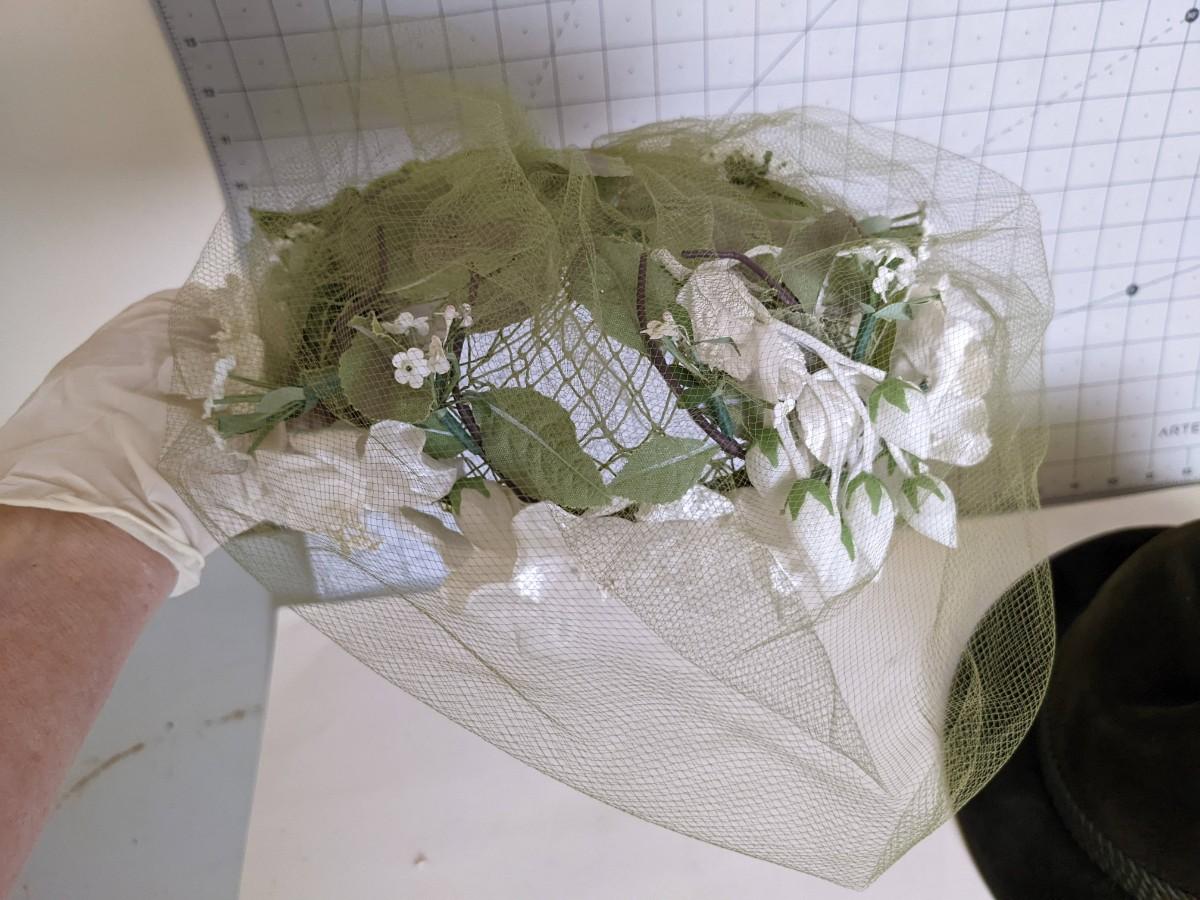 #157 Mini Green Felt Hat & Hari Piece