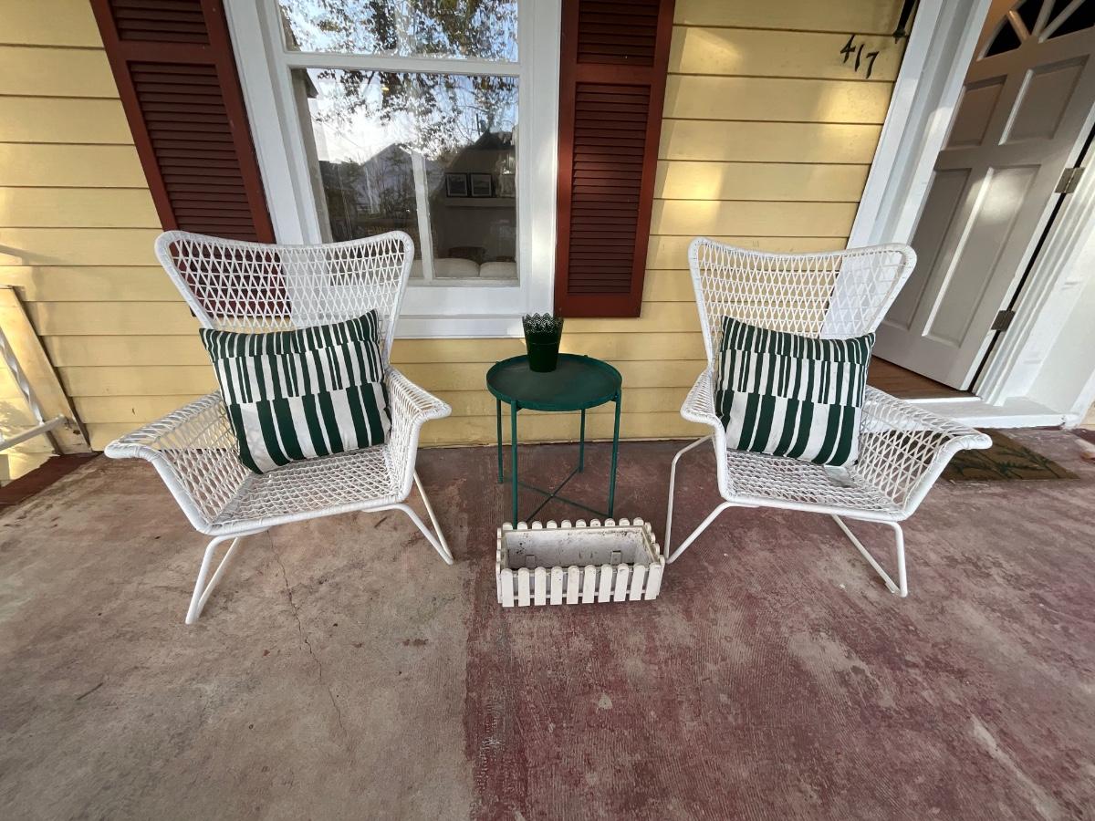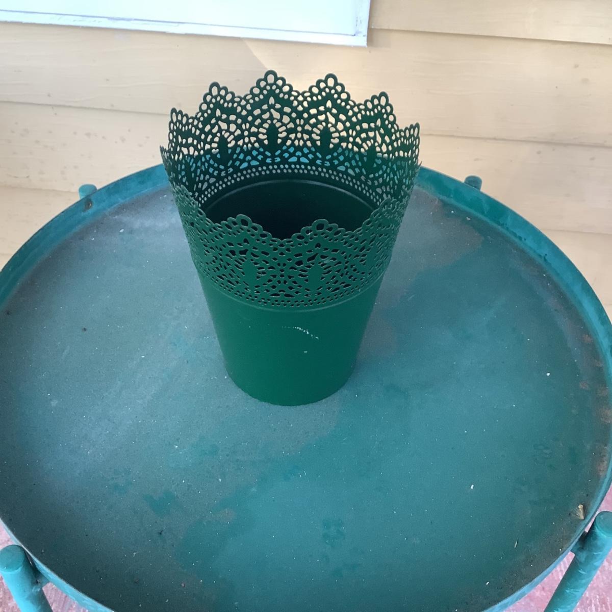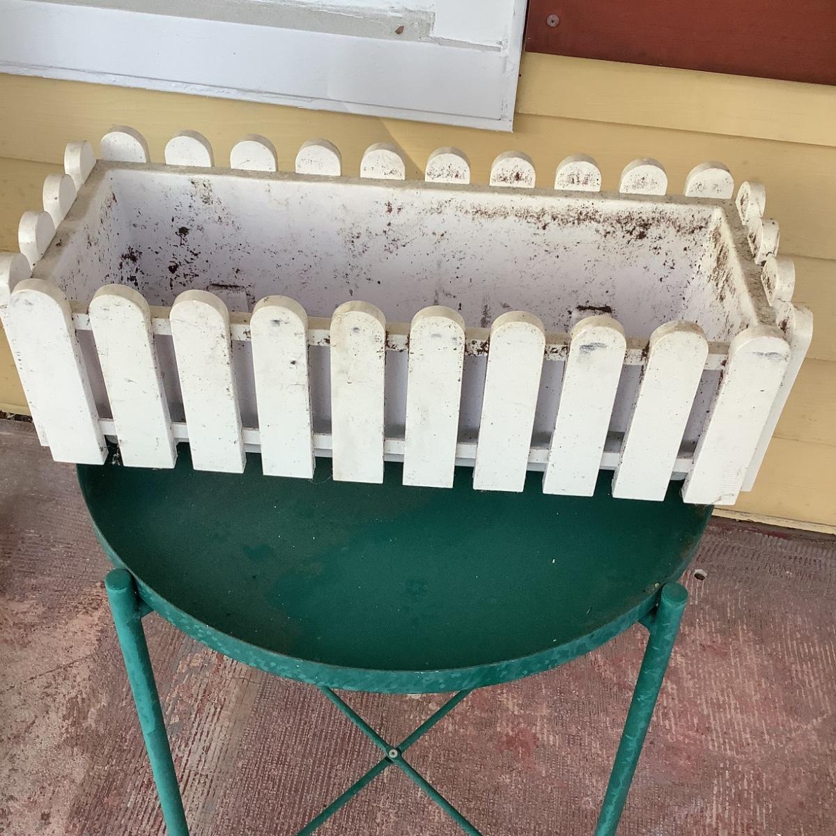 Includes green table and plastic fence flower planter