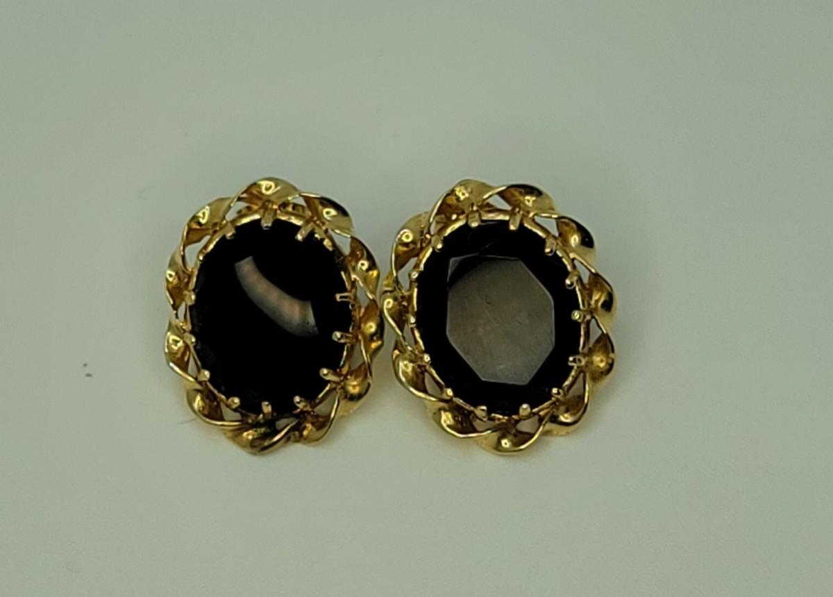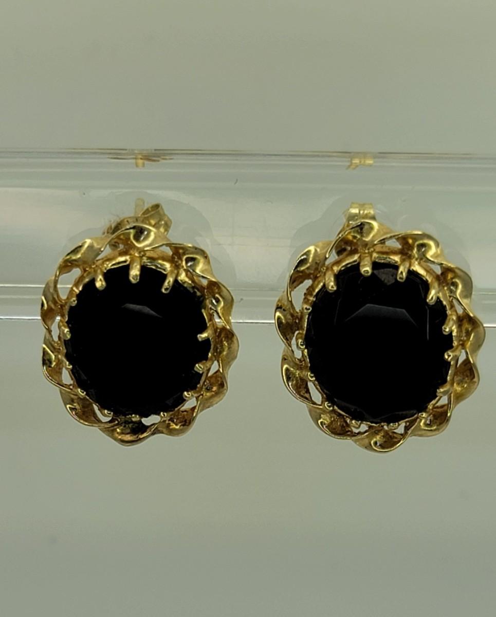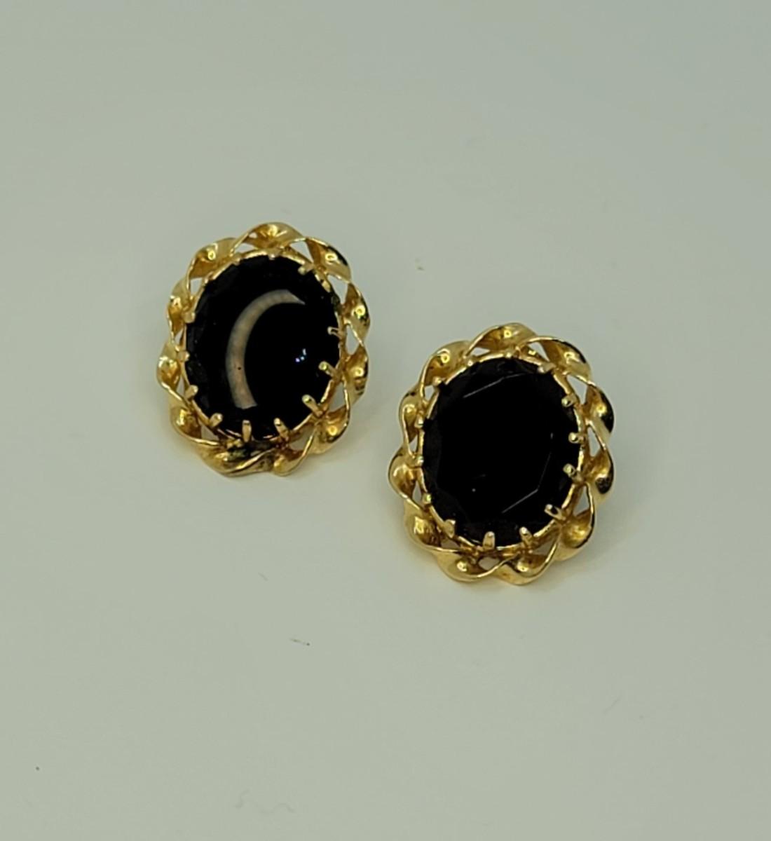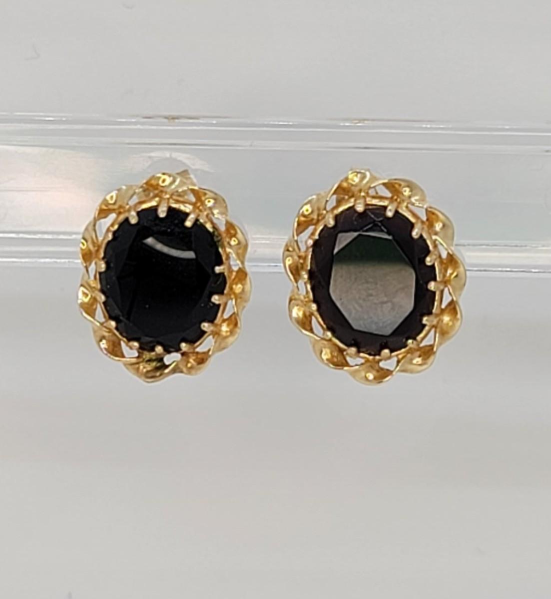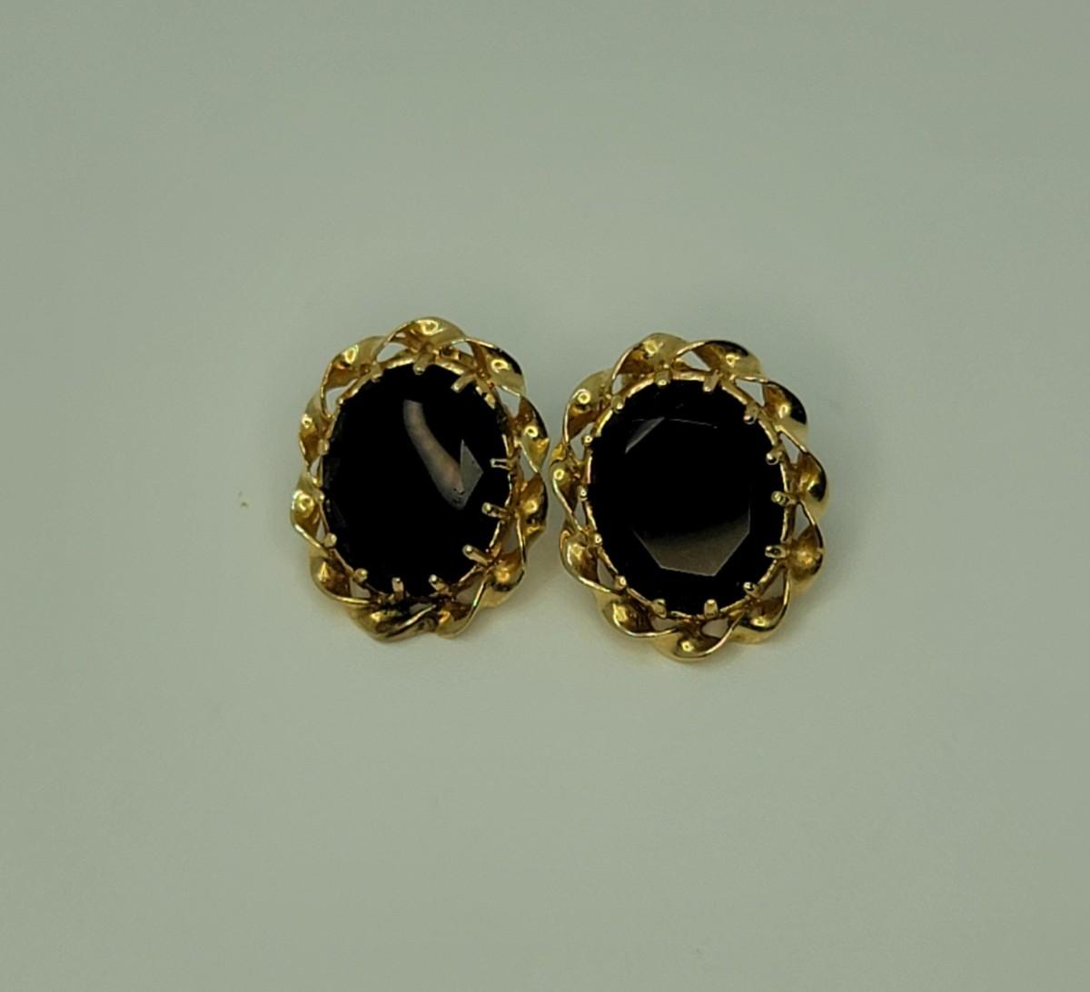 158: Vintage 4g 14k yellow gold and black Onyx Pierced Post Earrings