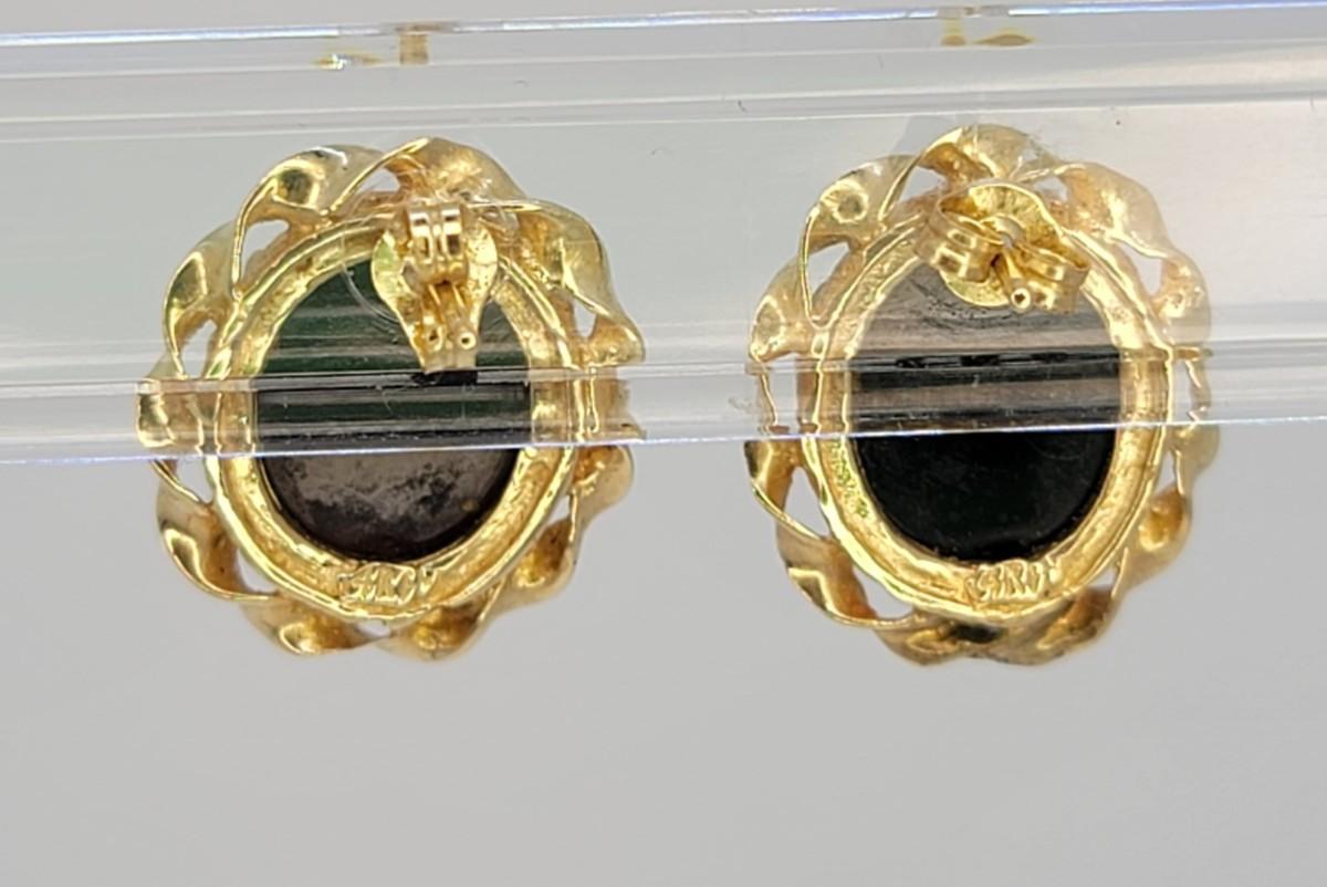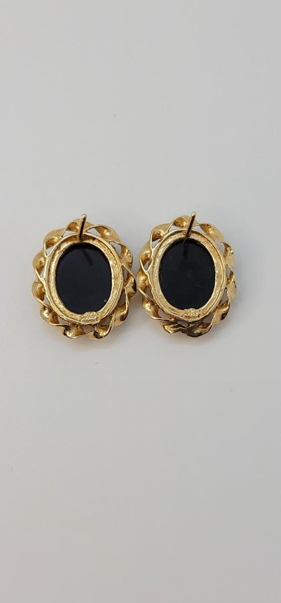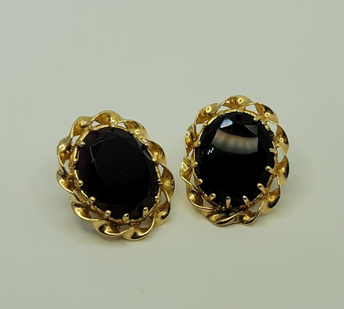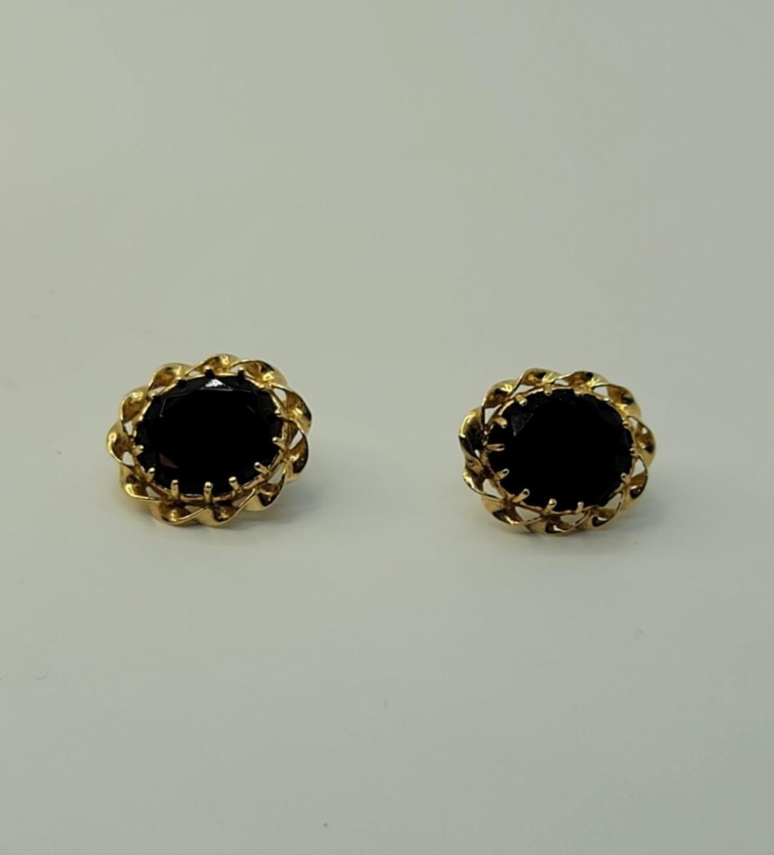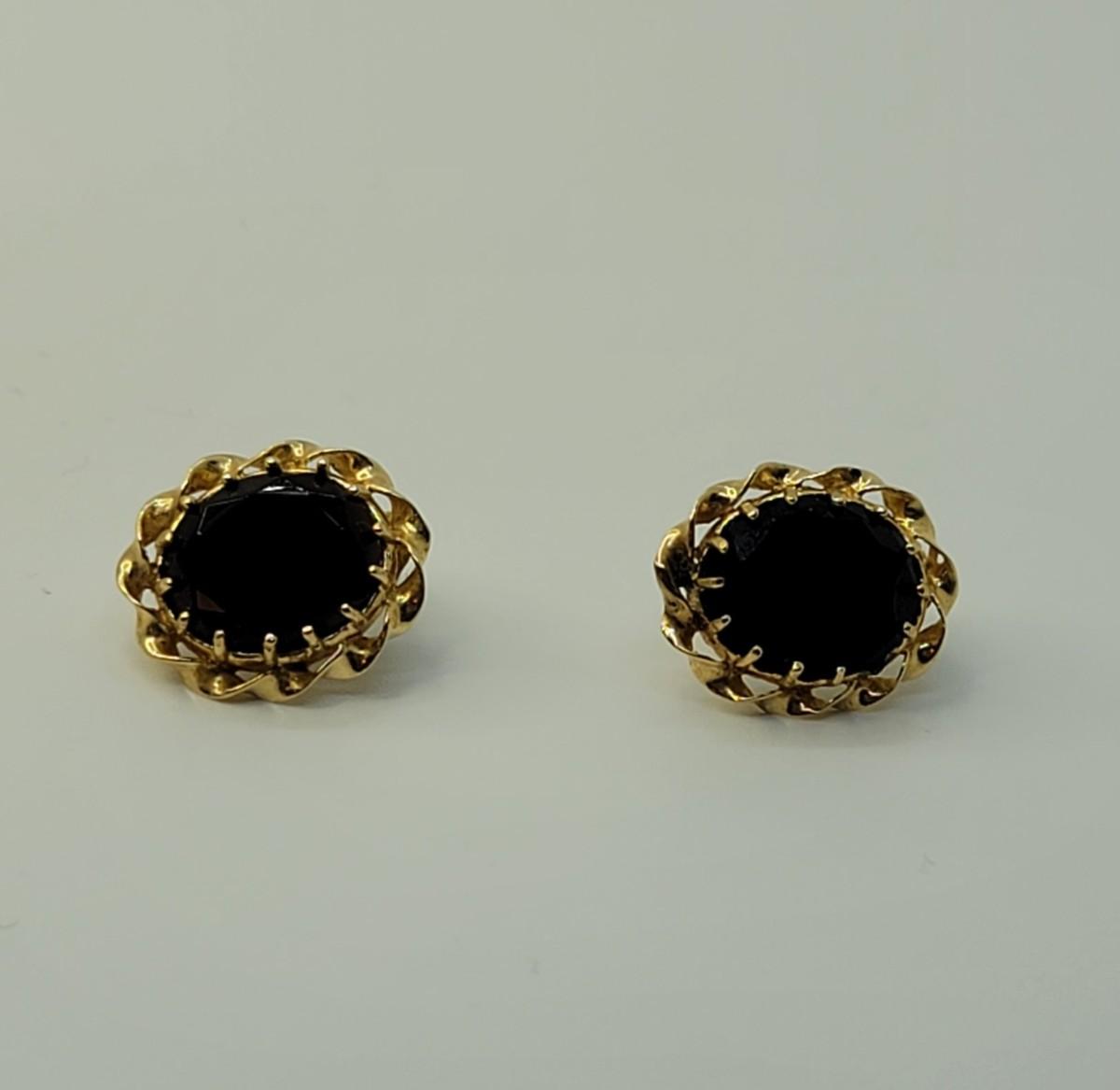 158: Vintage 4g 14k yellow gold and black Onyx Pierced Post Earrings