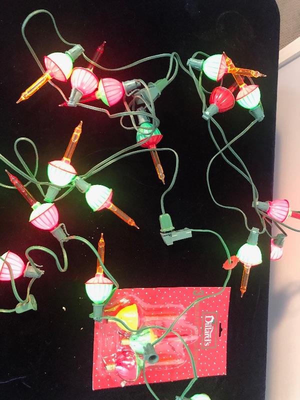 3 used strands and 3 replacement bulbs New in package. Strands are working, a couple of bulbs are out. This is an ONSITE Auction all items will need to be picked up on location. Please see auction description for pick up procedures. Shipping is available on smaller items.