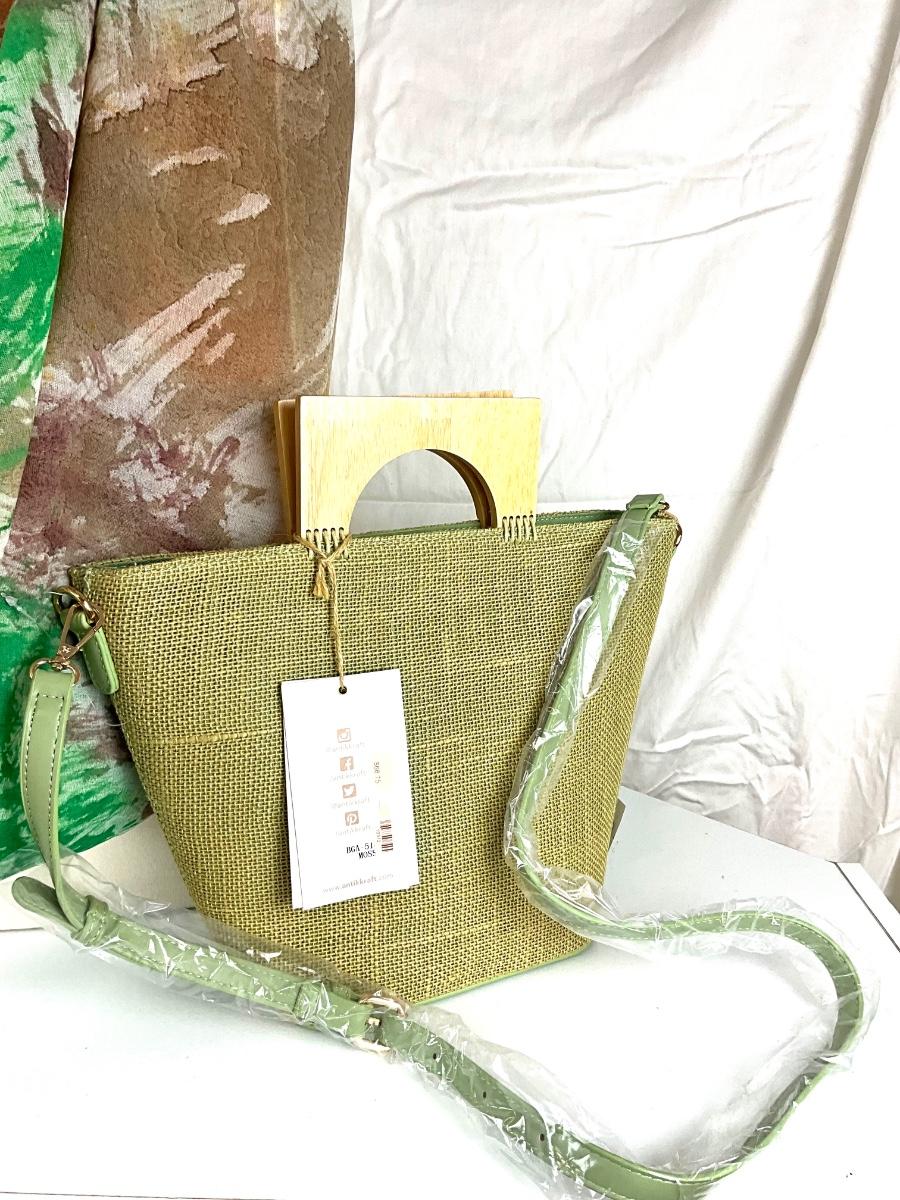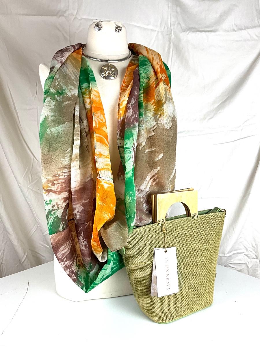 158 Green Grass Bag (AS-IS) with Infinity Scarf , Sand Dollar Necklace and Earring Set
