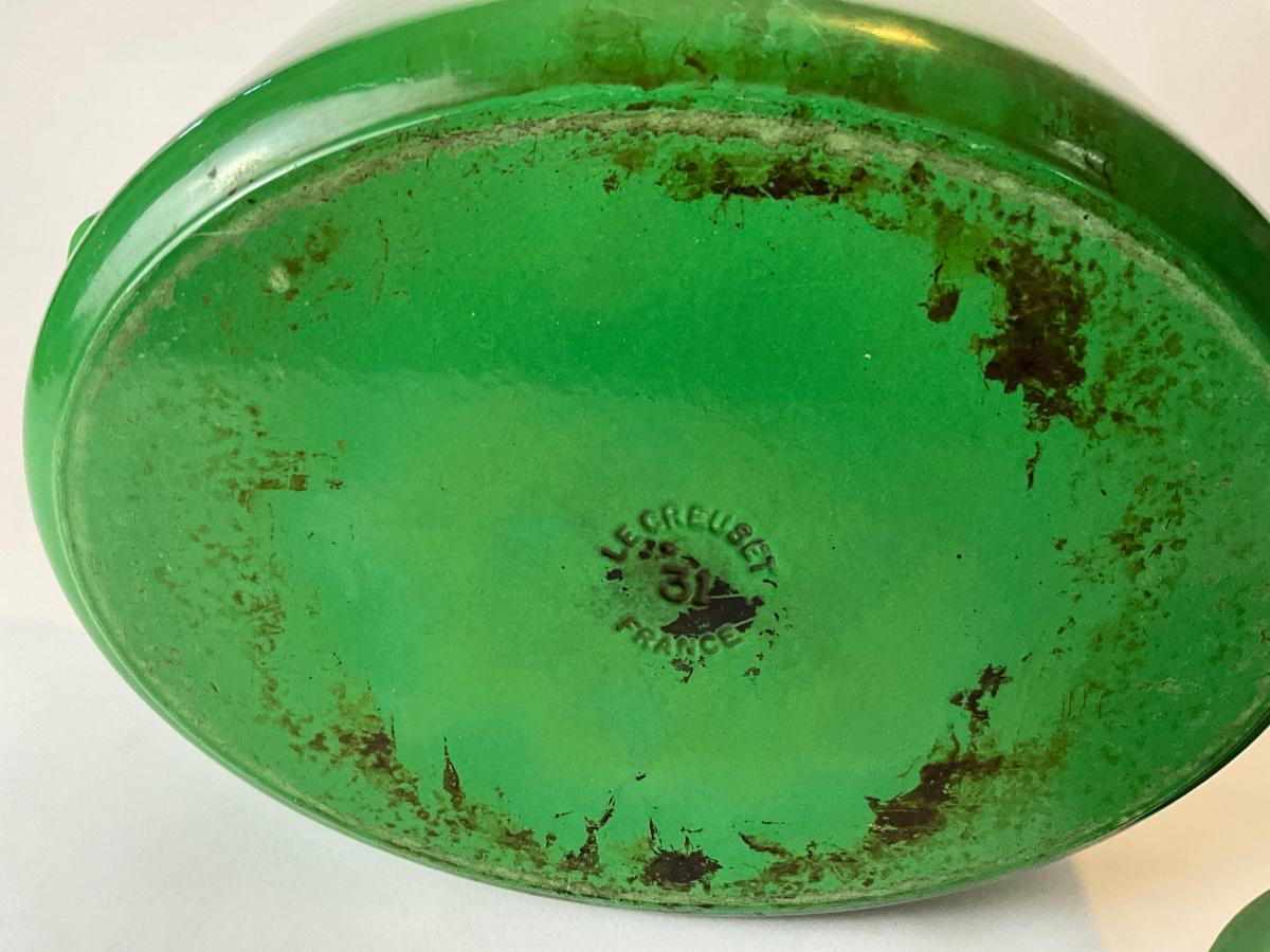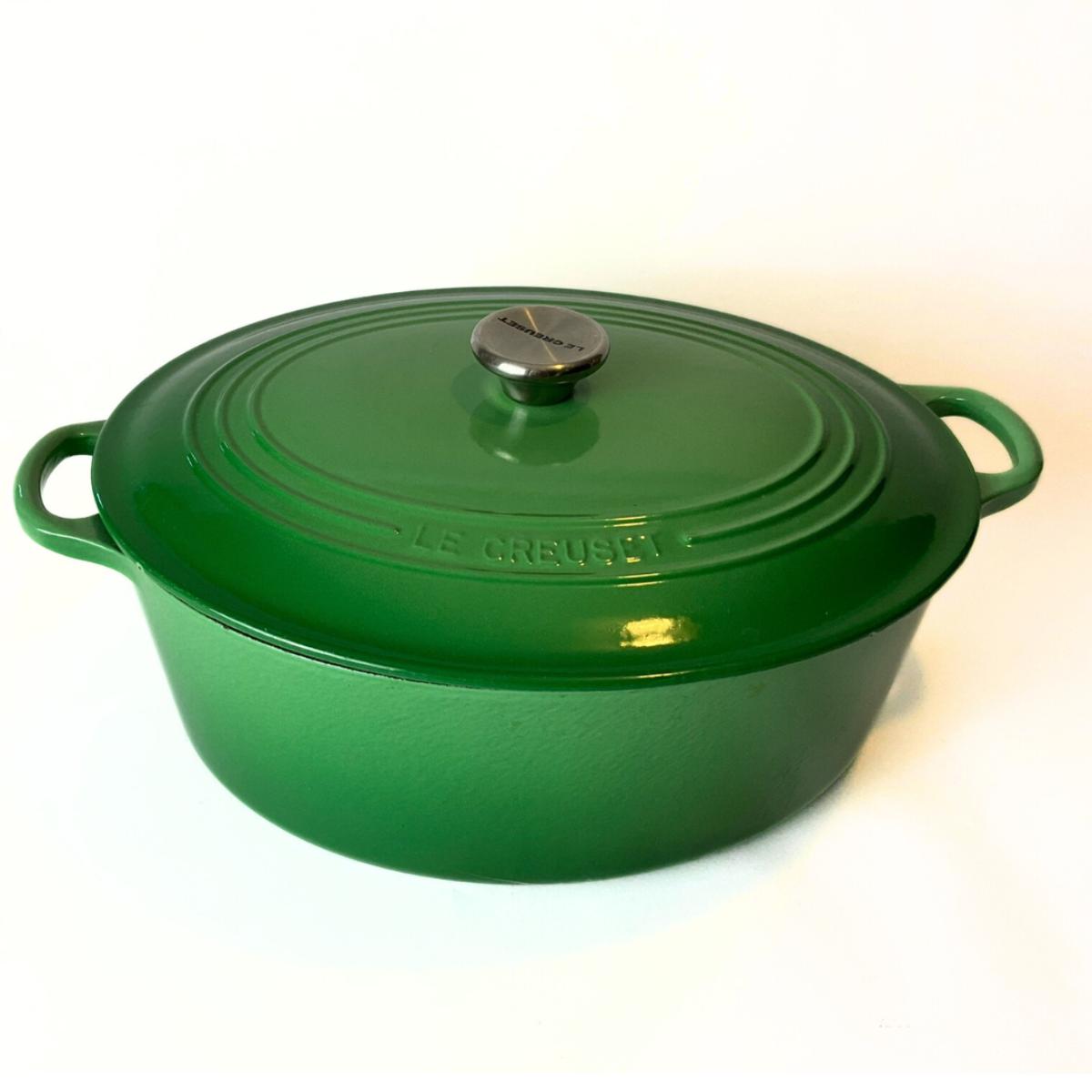158. Le Creuset Green Oval Signature Enamel Cast Iron Dutch Oven