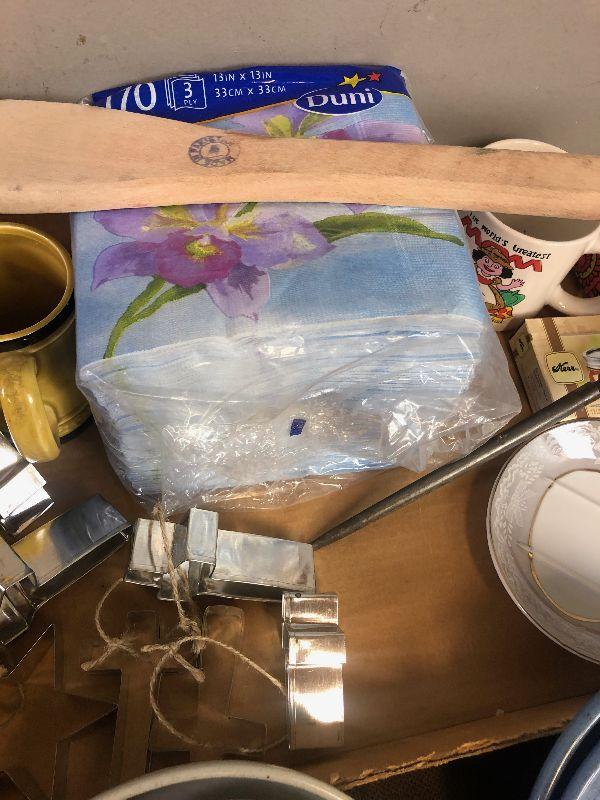 Napkins, plates, cookie cutters, cups etc.