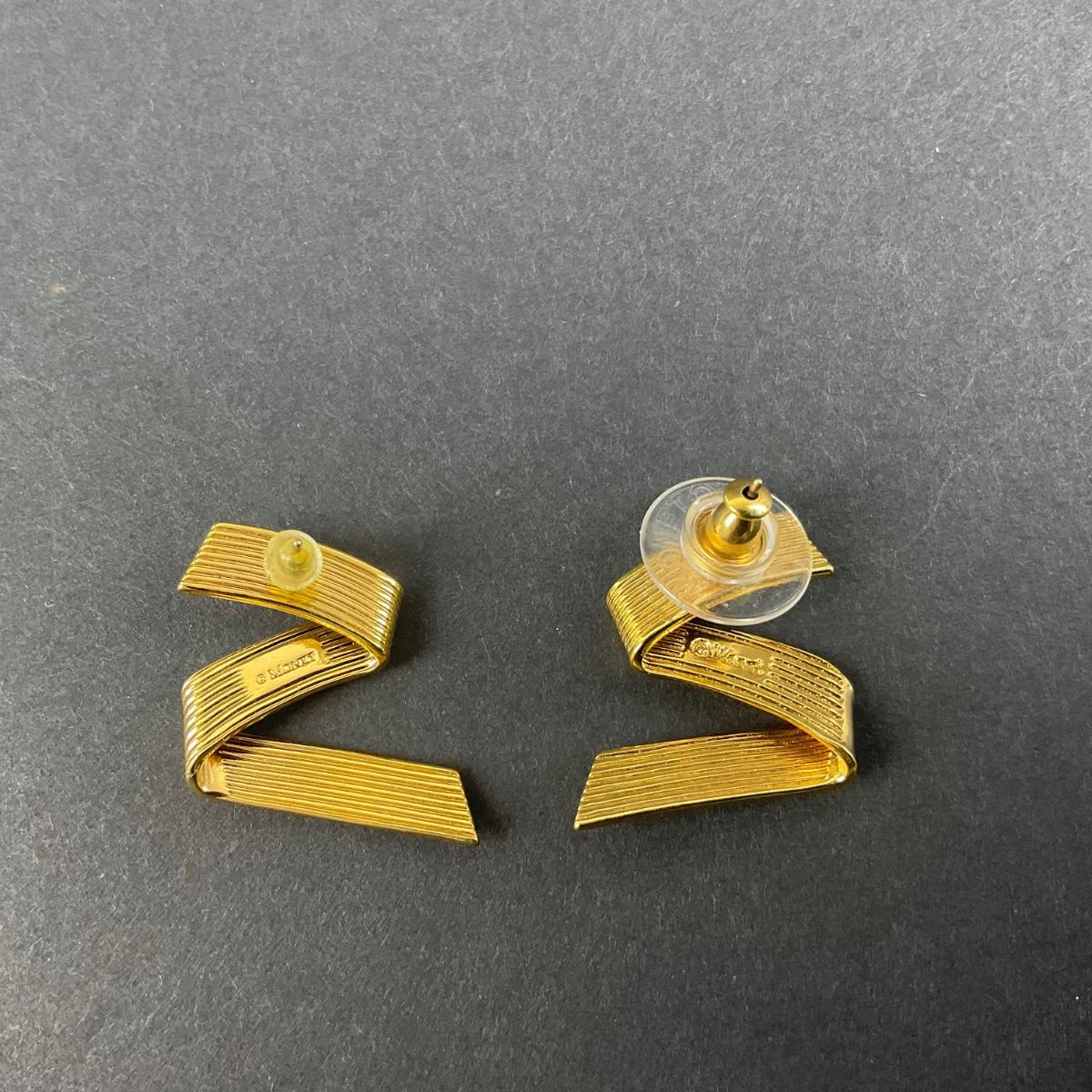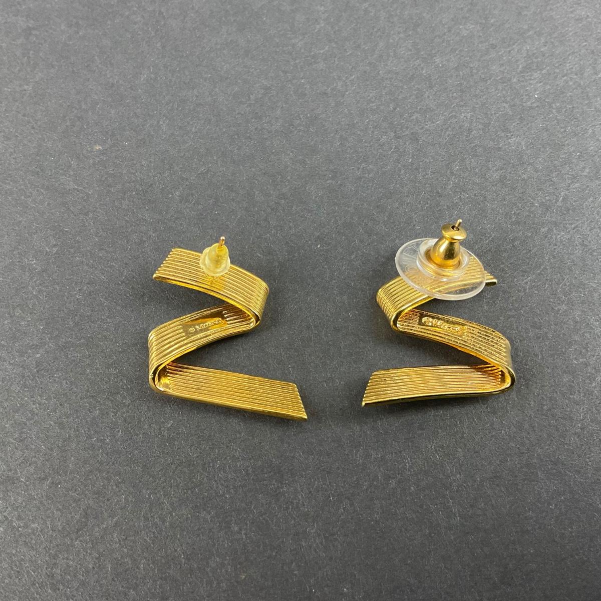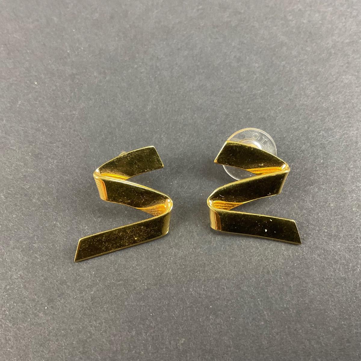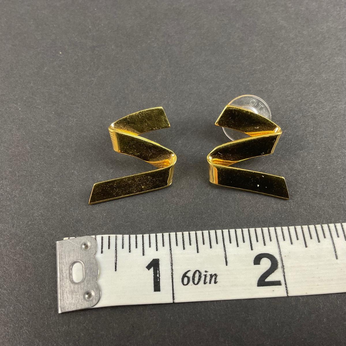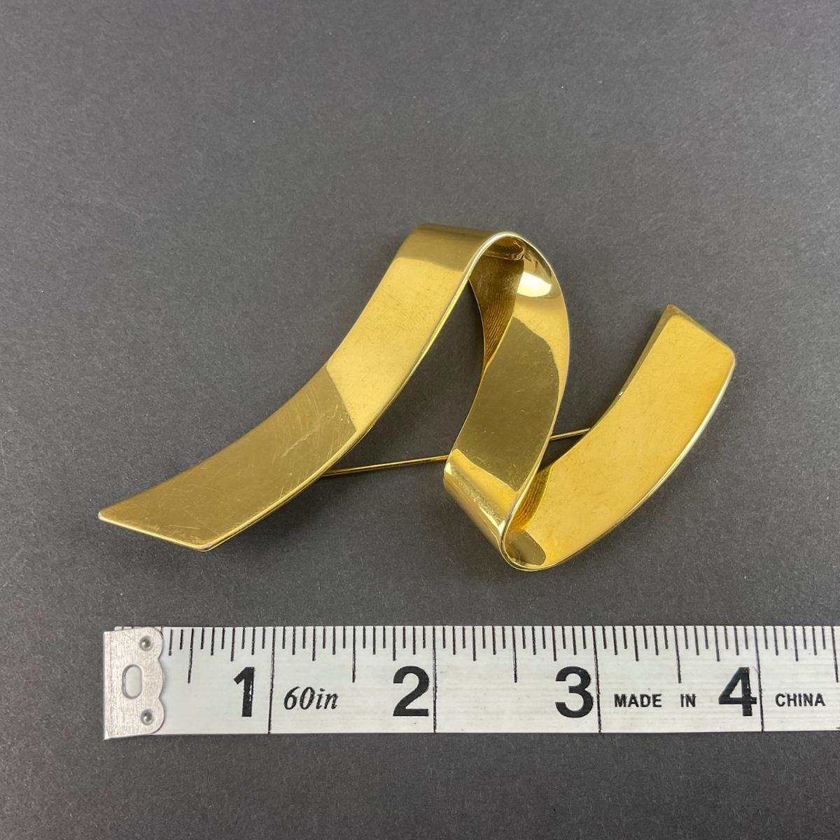 -158- MONET | Gold Tone 1970’s Modernist Ribbon Brooch & Earrings | Marked