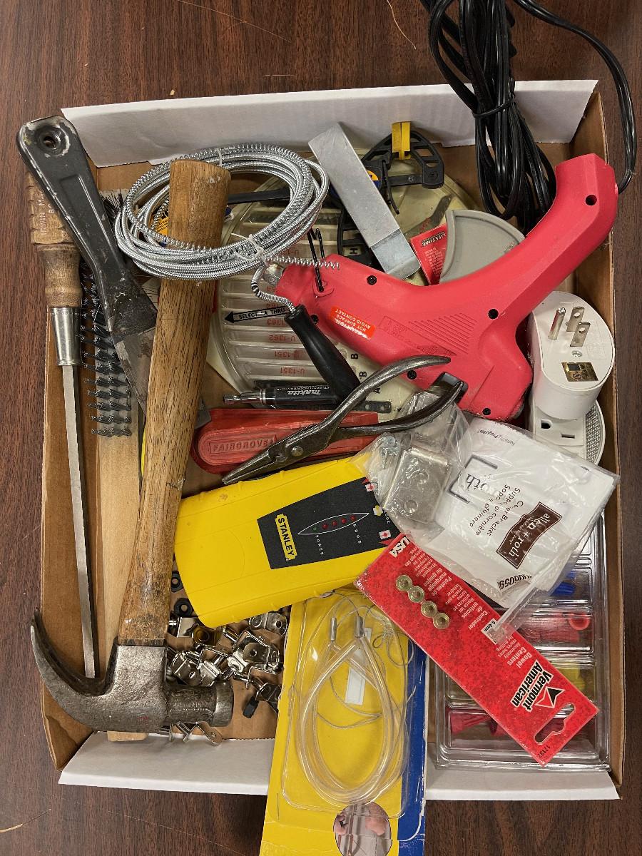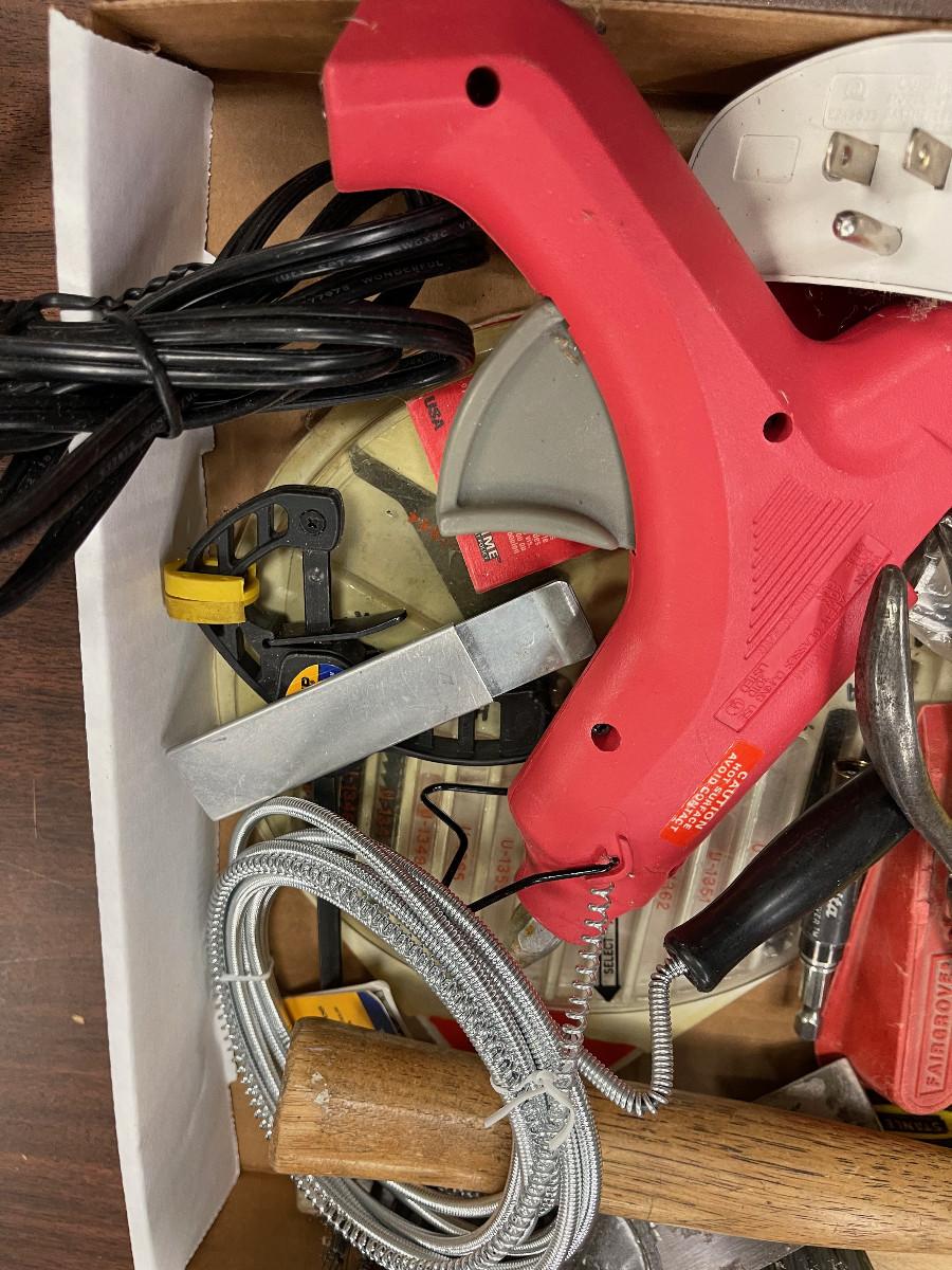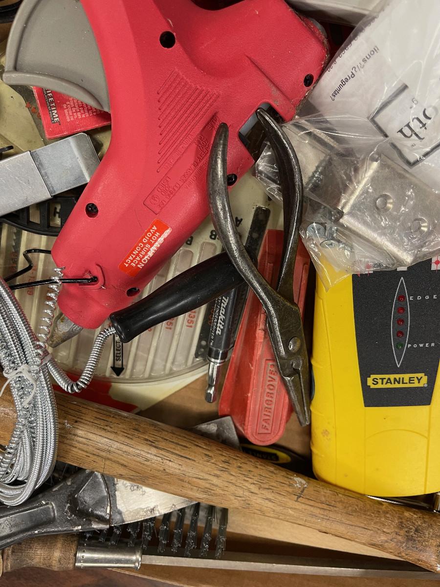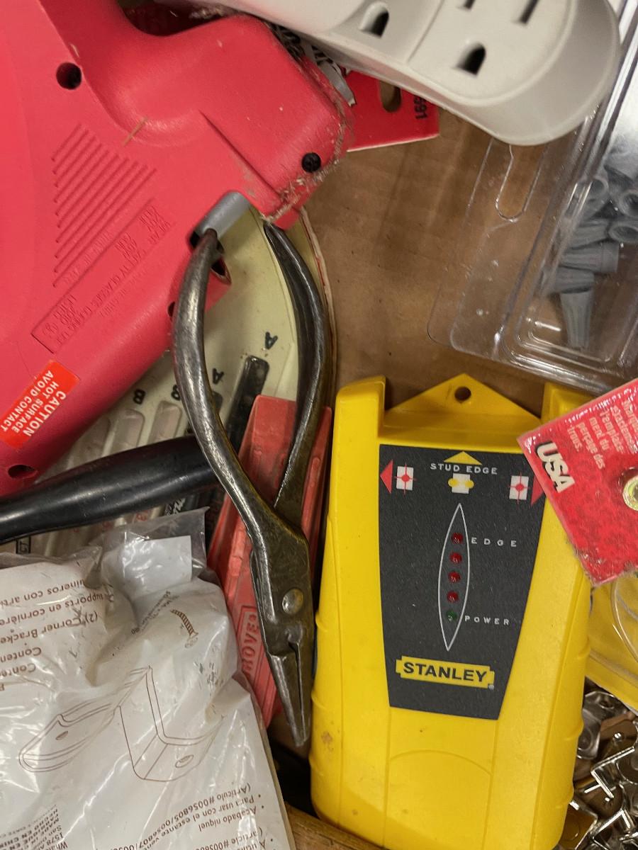 #158 Tray of Tools: Stud Finder, Putty Knife & Glue Gun
