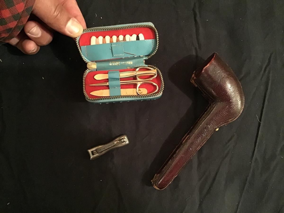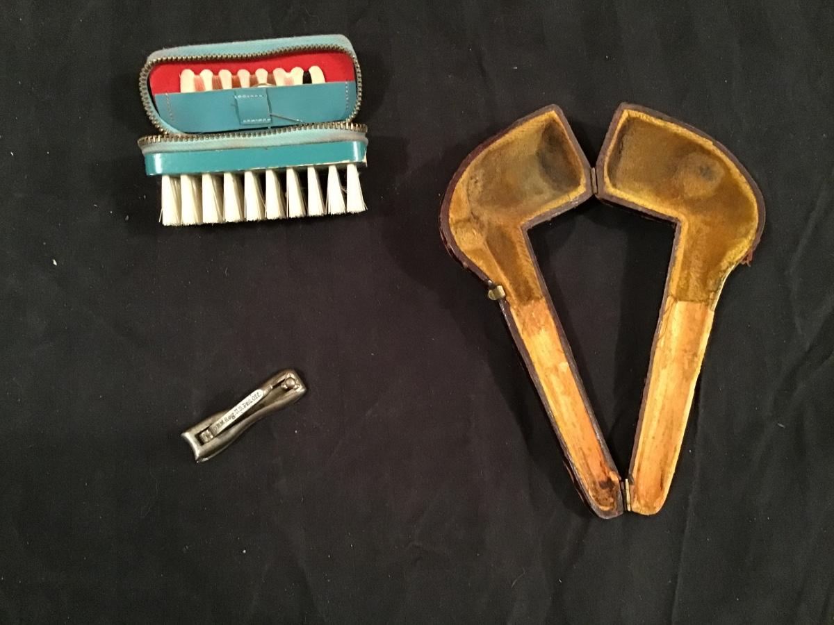 158 - Vintage Lot - Nail Clippers, Pipe Case, Mani set